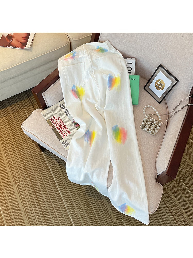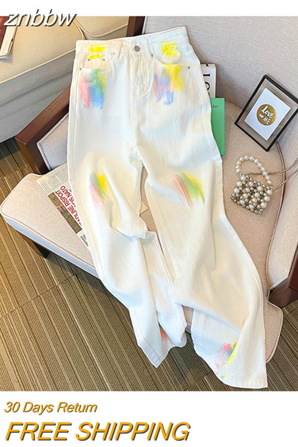 znbbw High Street Tie Dye High Waist Jeans Pants Korean Fashion Women's Harajuku Wide Leg Baggy Y2K Female Denim Trouser