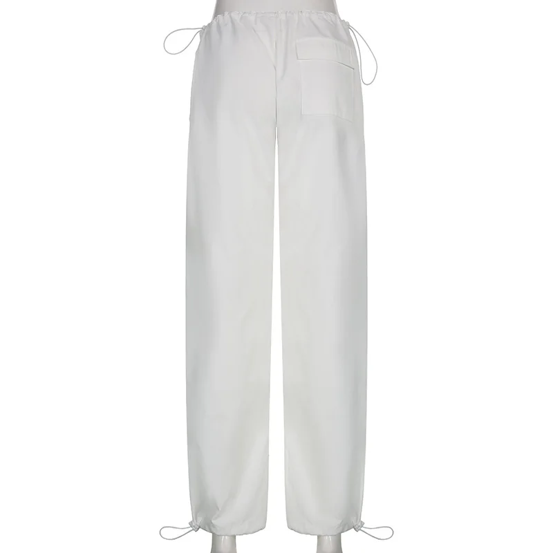 Znbbw Hippie Cargo Pants Streetwear Y2K Punk Low Waist Loose Sweatpants Solid White Wide Leg Joggers Fashion Baggy Trousers