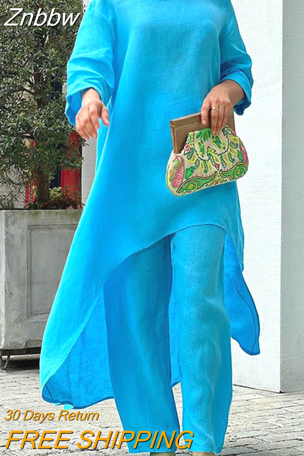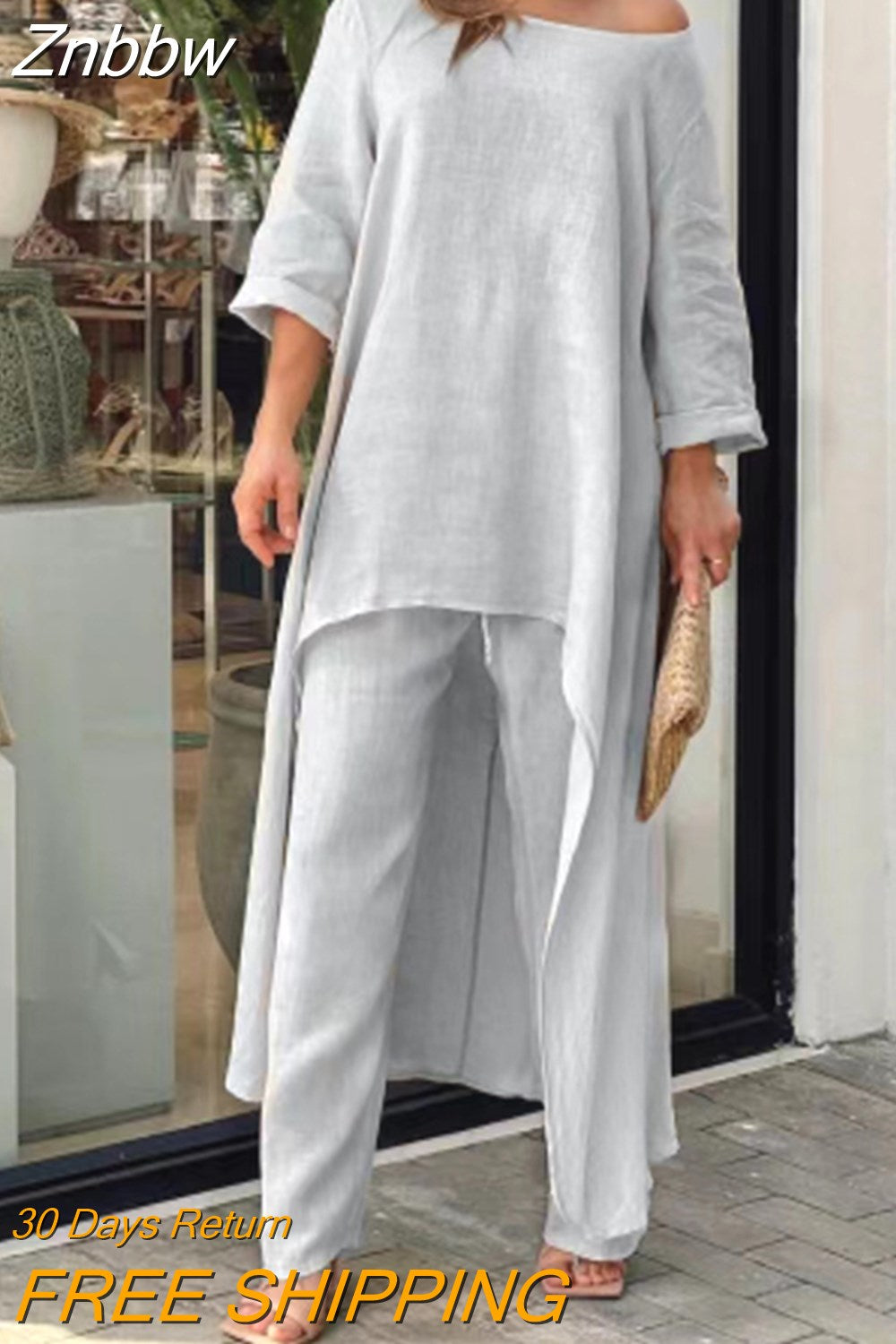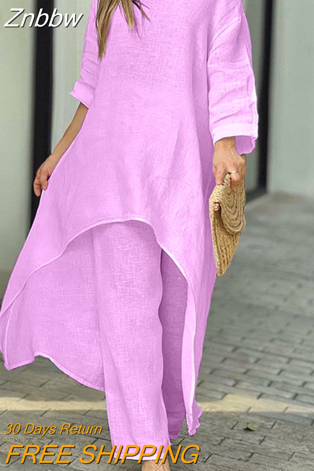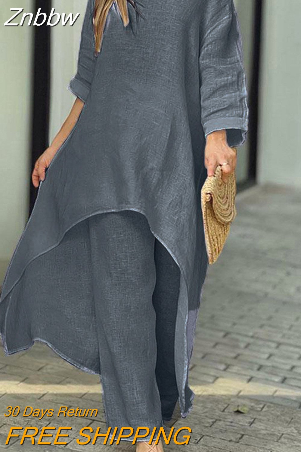 Znbbw Loose Suits Casual Women Autumn 2 Piece Sets Fashion Long Sleeve O Neck Irregular Long Tops + Straight Pants Ladies Suit