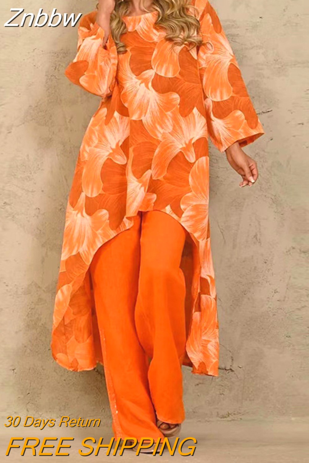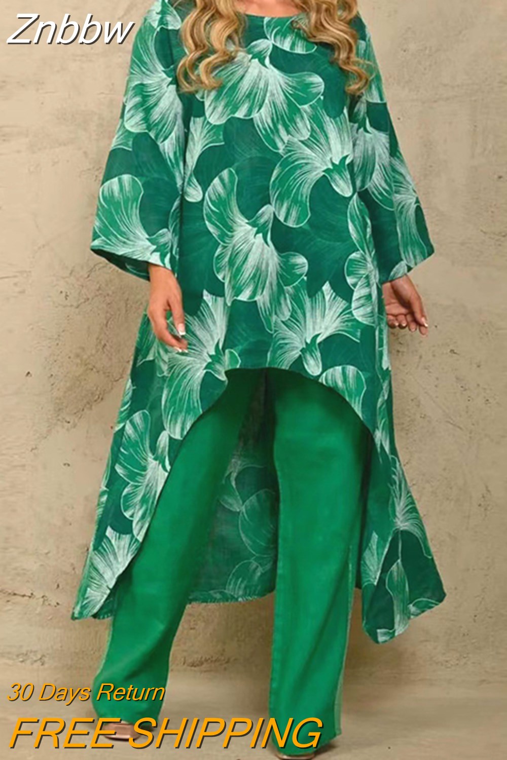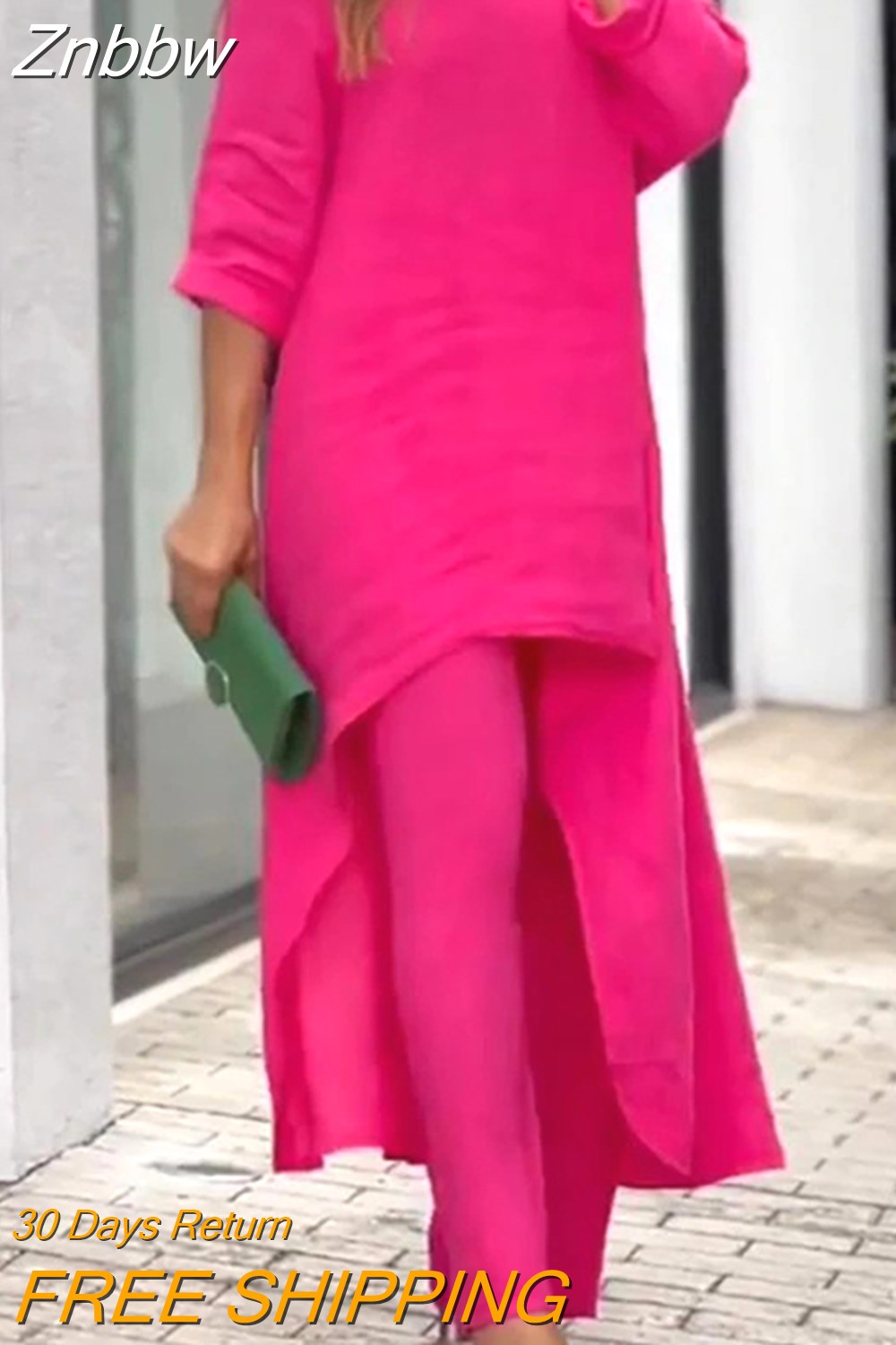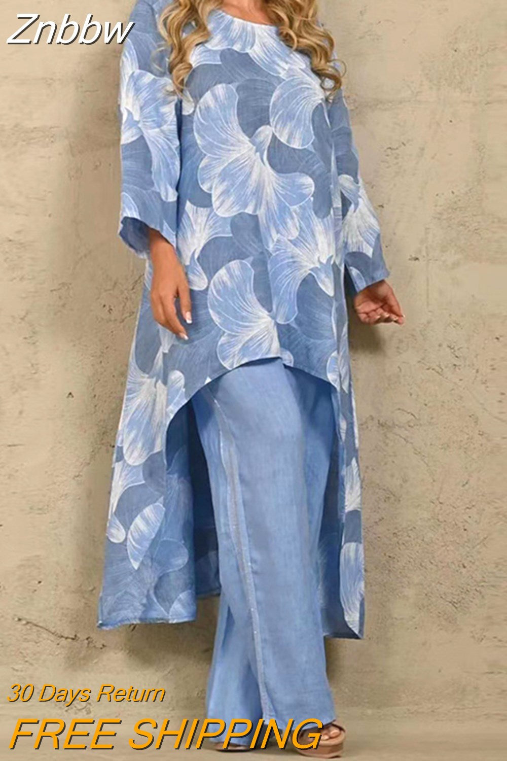 Znbbw Loose Suits Casual Women Autumn 2 Piece Sets Fashion Long Sleeve O Neck Irregular Long Tops + Straight Pants Ladies Suit