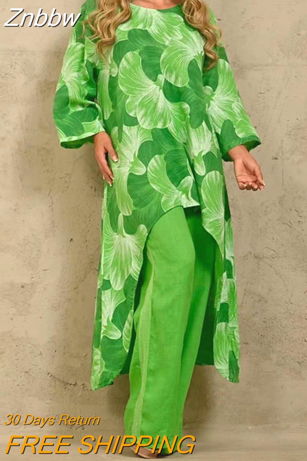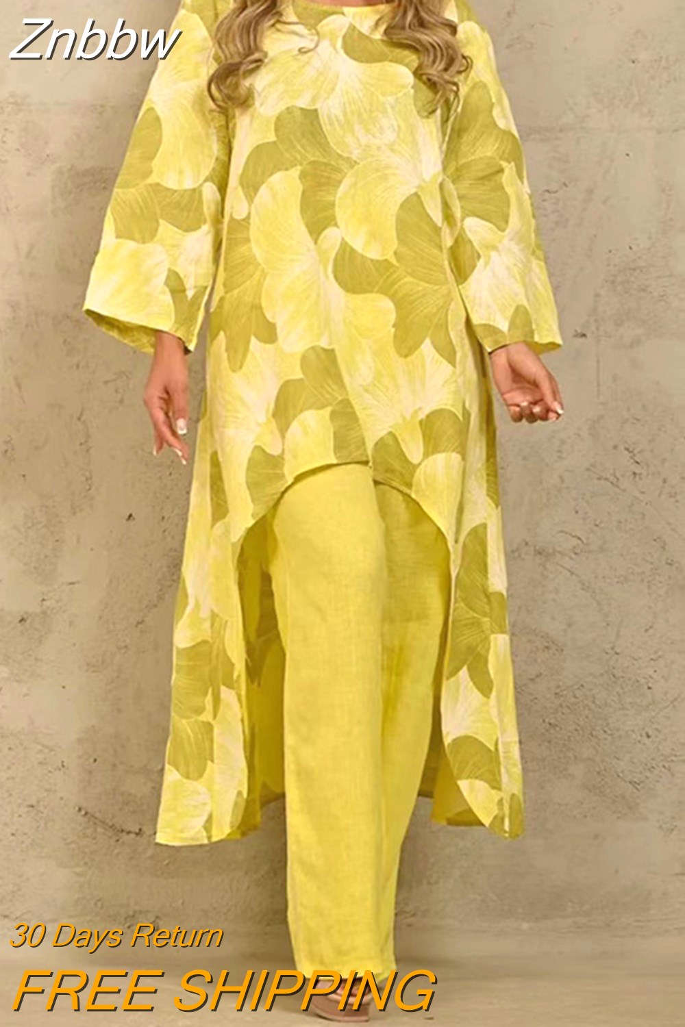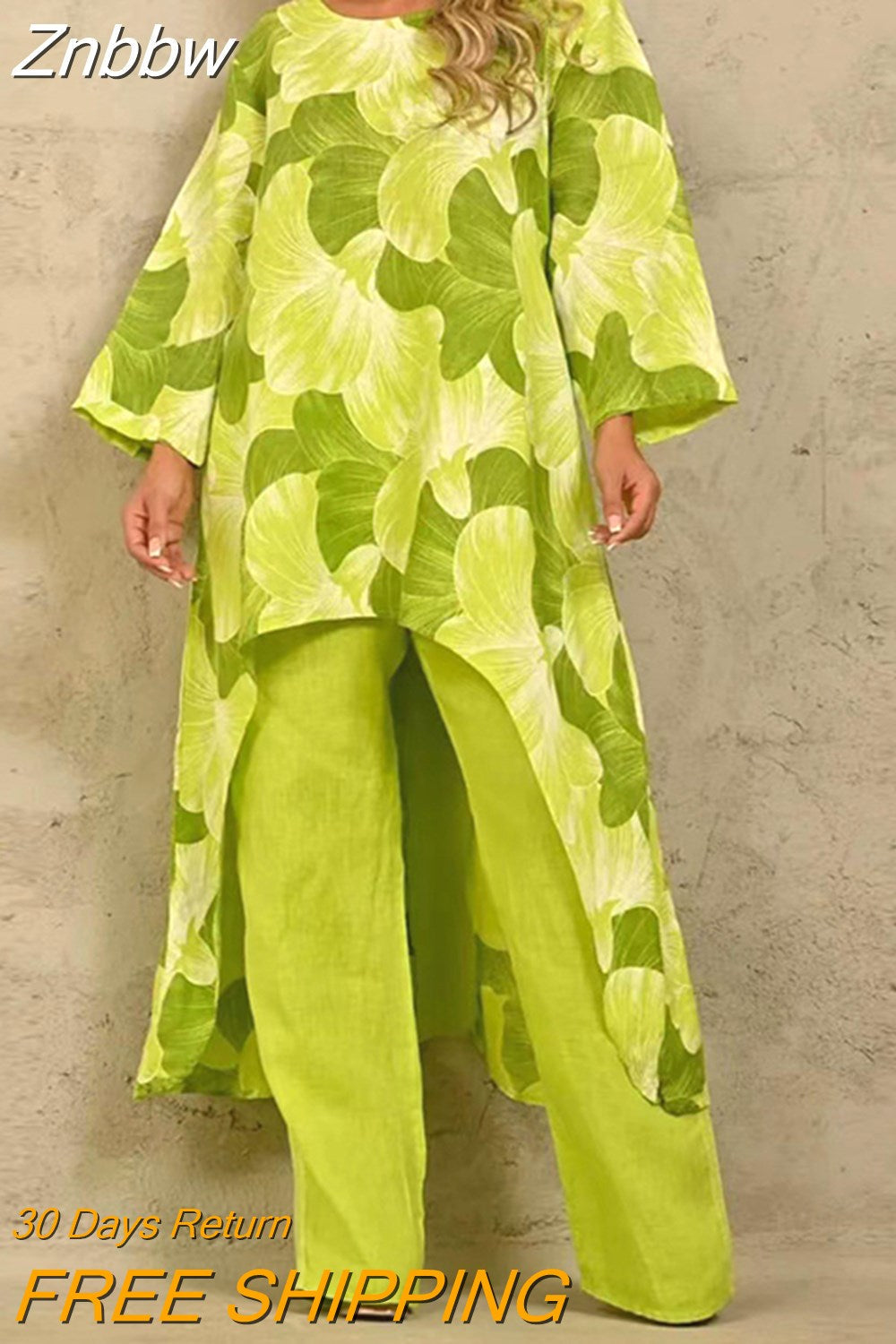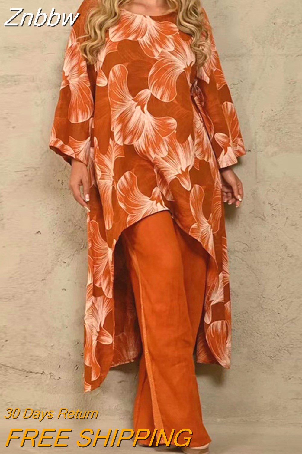 Znbbw Loose Suits Casual Women Autumn 2 Piece Sets Fashion Long Sleeve O Neck Irregular Long Tops + Straight Pants Ladies Suit