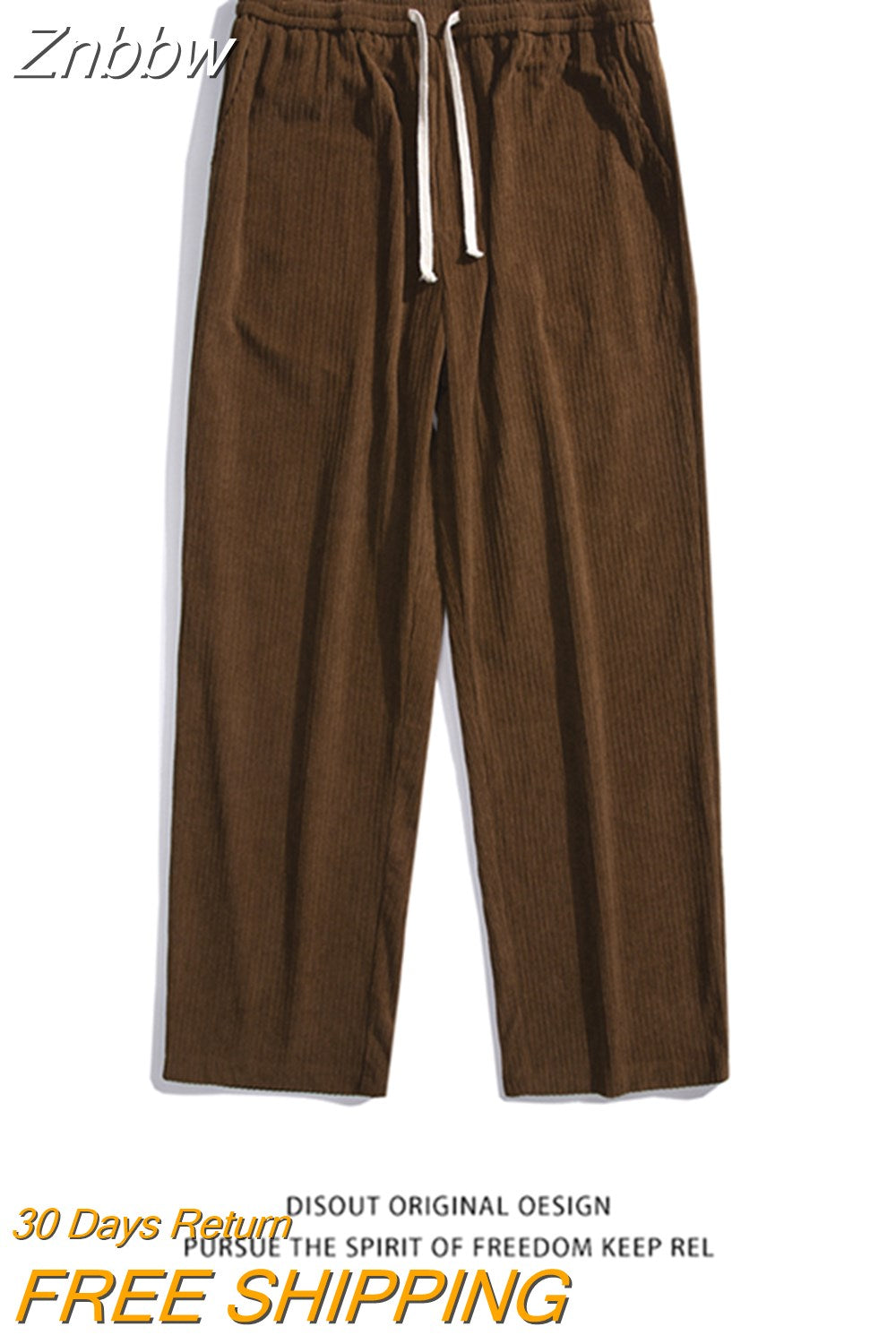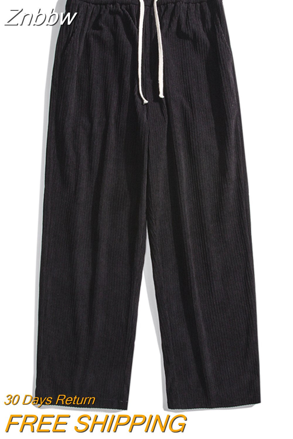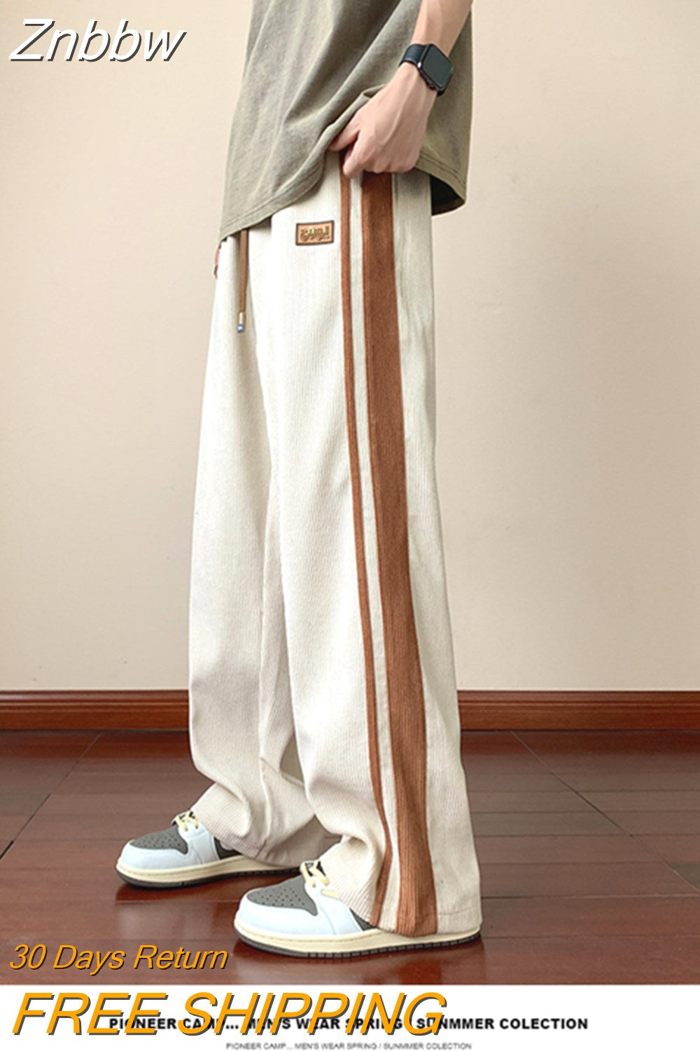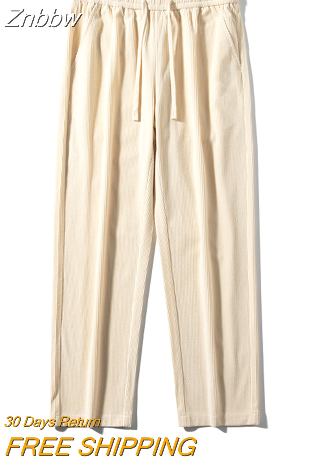 Znbbw Men's Casual Pants Loose Straight Corduroy Pants Elastic Waist Sweatpants Fashion Streetwear Spring Men Sports Jogger Trousers