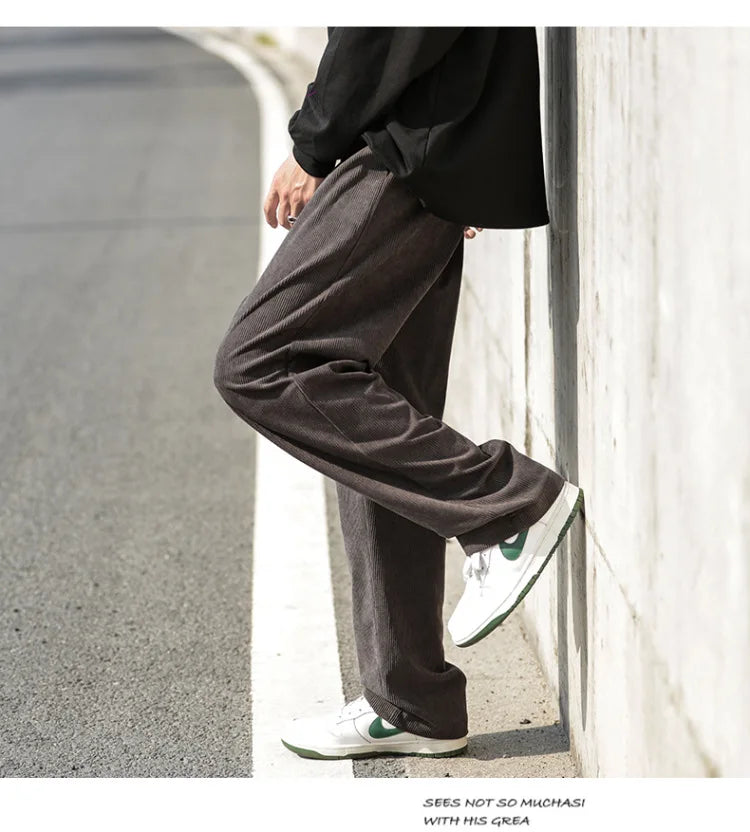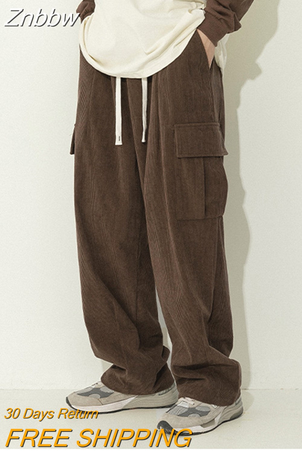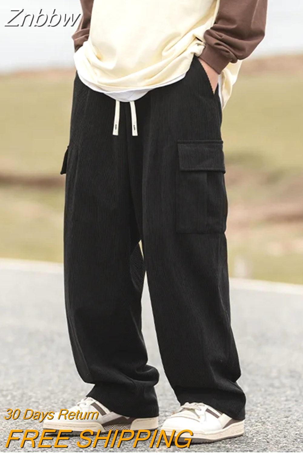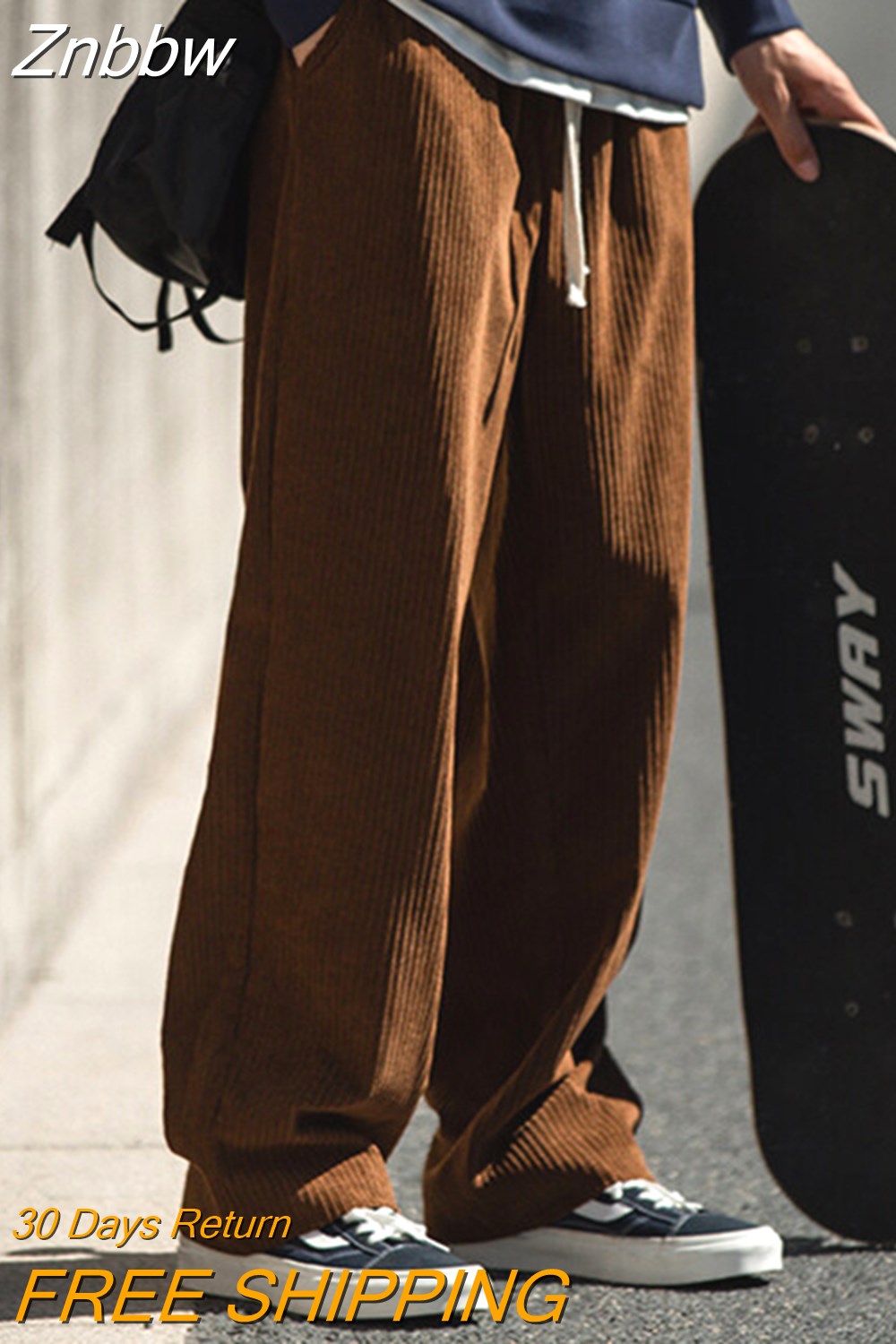 Znbbw Men's Casual Pants Loose Straight Corduroy Pants Elastic Waist Sweatpants Fashion Streetwear Spring Men Sports Jogger Trousers