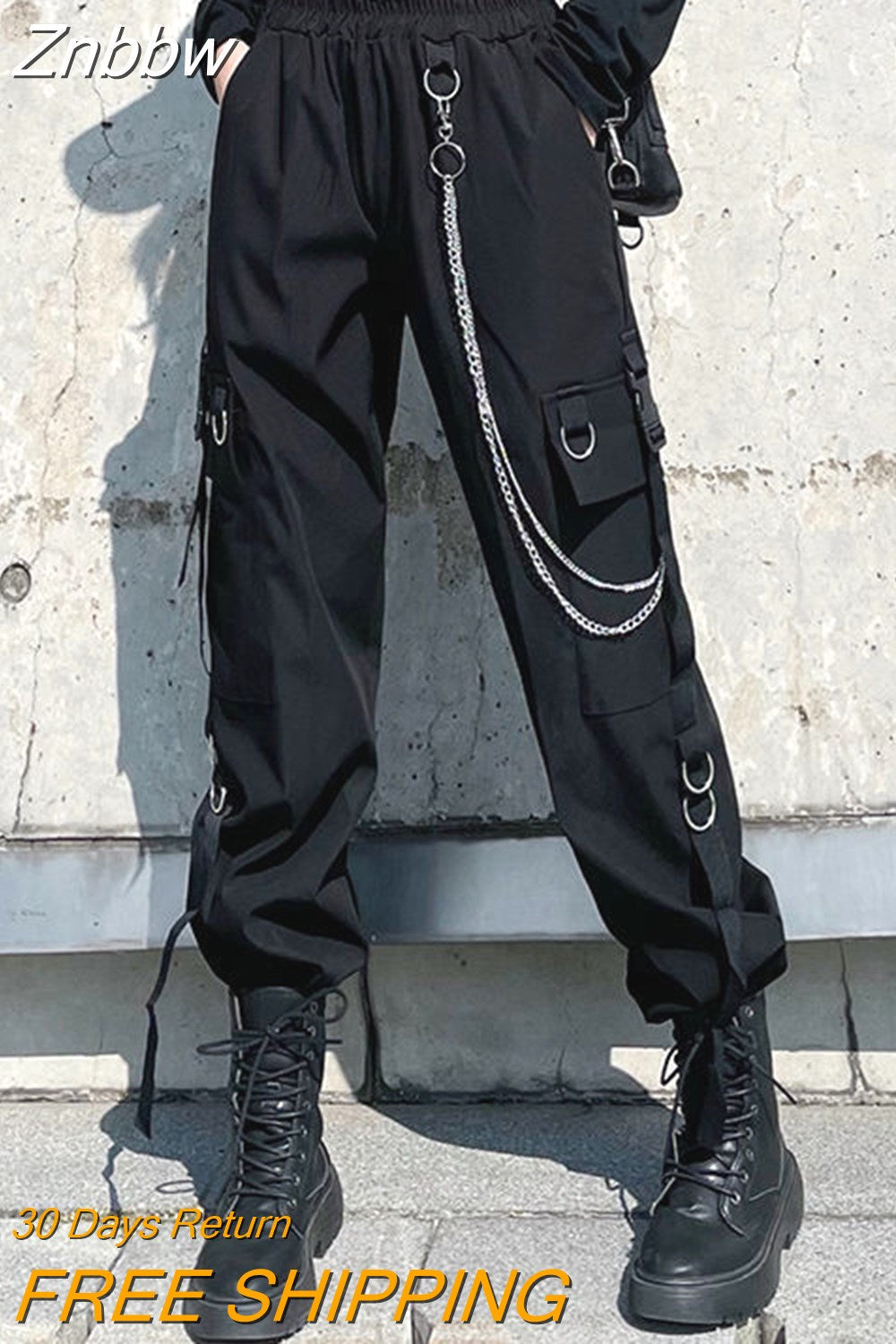 Znbbw Punk Cargo Pants Women Joggers Hippie Chain Pockets Plus Size Loose Black Capris Baggy Harajuku Oversize Trousers Hip Hop