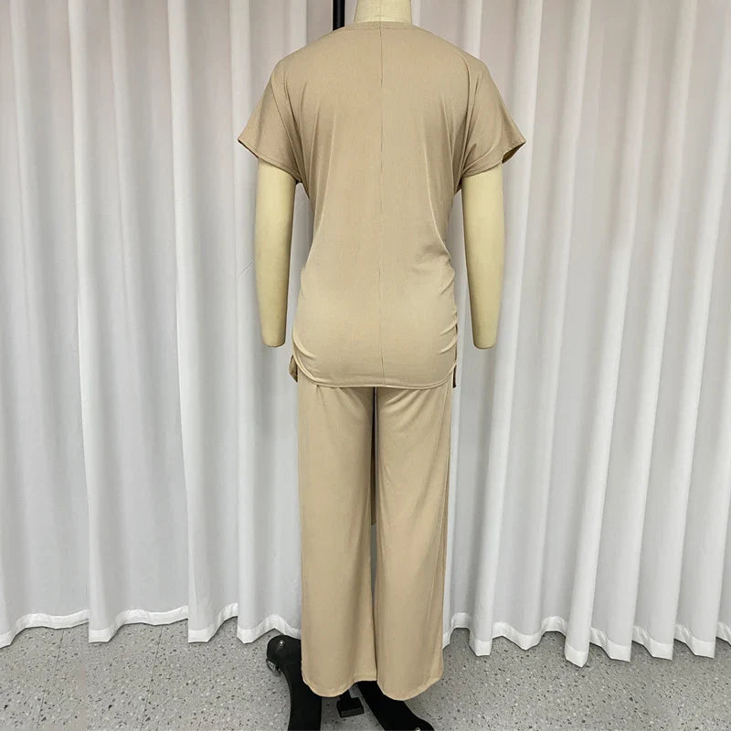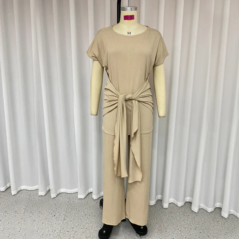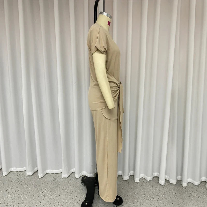 Znbbw Sets For Women 2 Pieces Autumn Fashion Round Neck Short Sleeves Top Casual Loose With Pockets Pants Sets High Streetwear