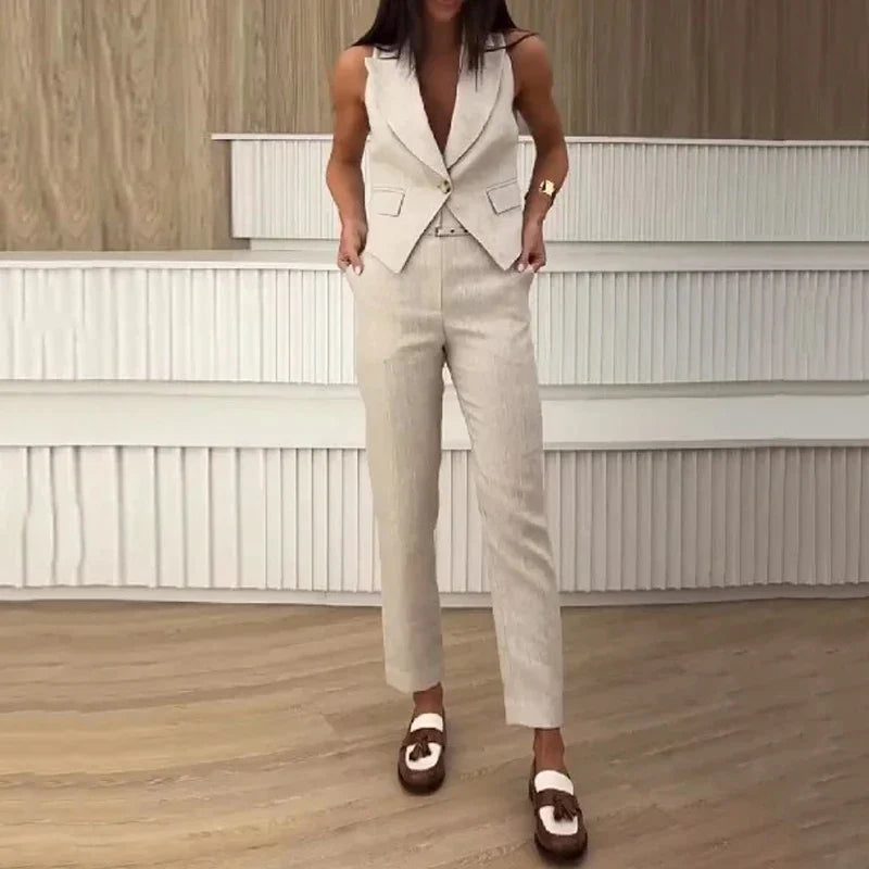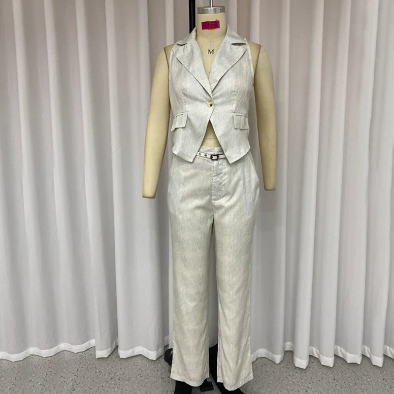 Znbbw Sets For Women 2 Pieces Summer Fashion Office Lapel Sleeveless One Button Vest Top Straight Pants Sets High Streetwear