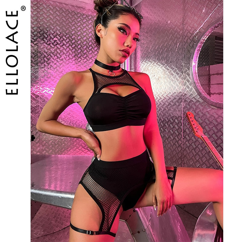 Znbbw Sexy Female Lingerie Fishing Net Patchwork Women's Underwear 4-Pieces Fancy Intimate Bra And Panty Garters Exotic Sets 914