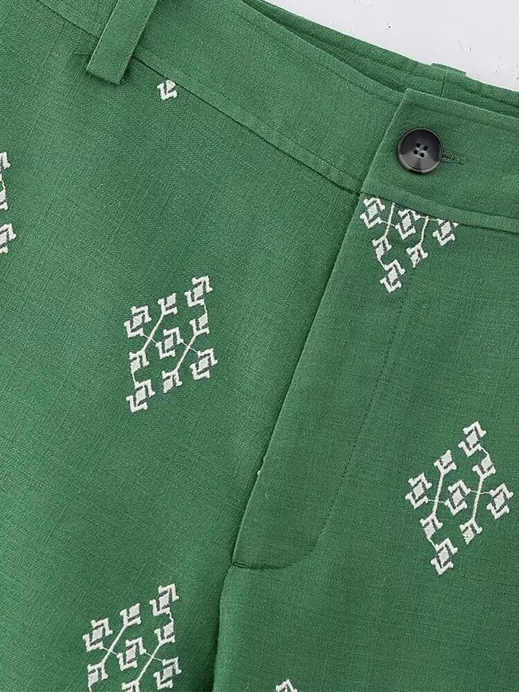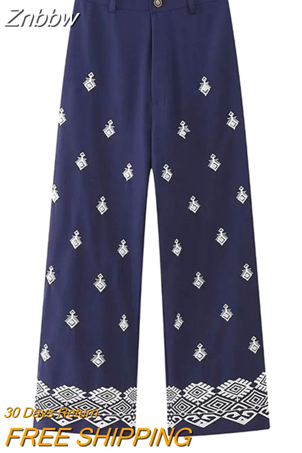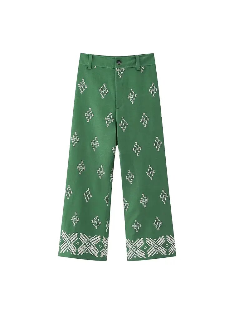 Znbbw TRAF Green Chic Women Pants 2023 Embroidery Loose Full Length Ladies Trousers Casual High Waist Wide Pants For Female