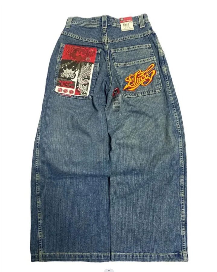 Znbbw Wide-Legged Jeans Jnco Street Hip-Hop Personality Y2K Straight Casual Pants