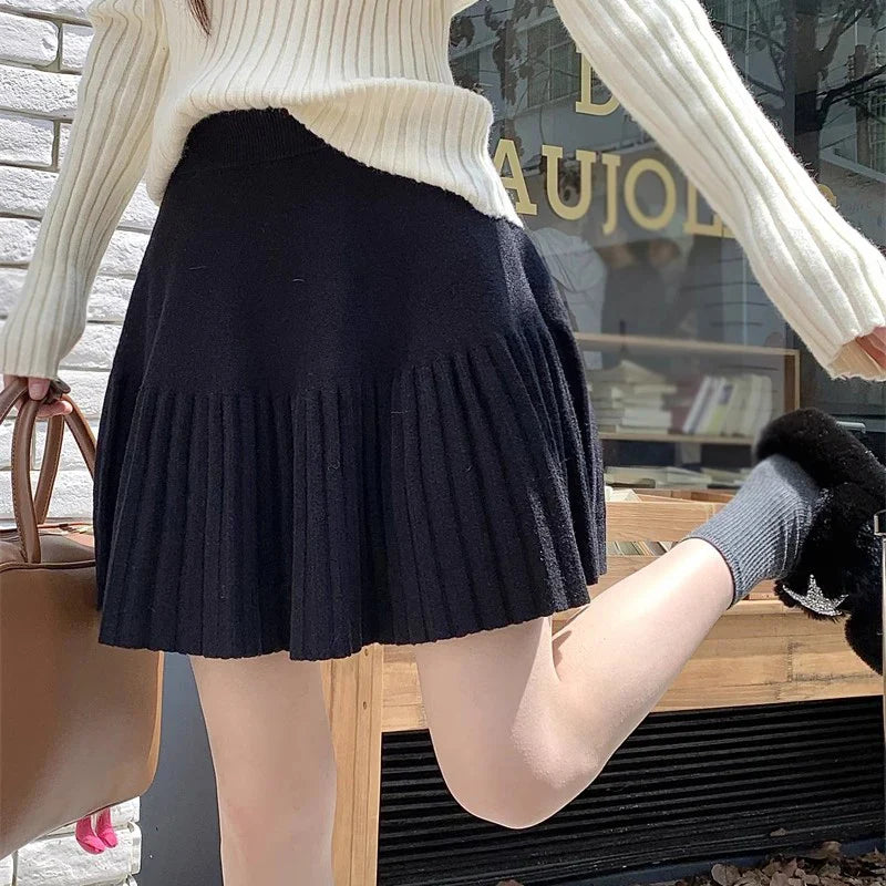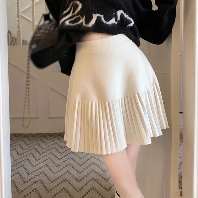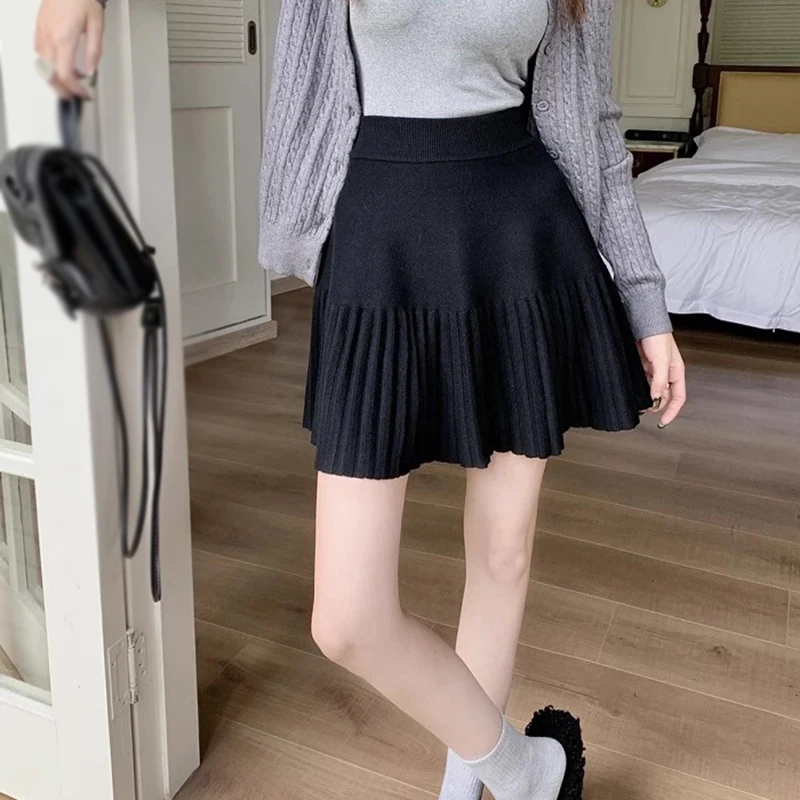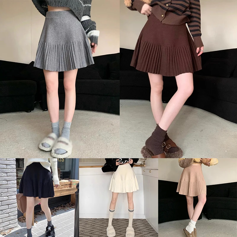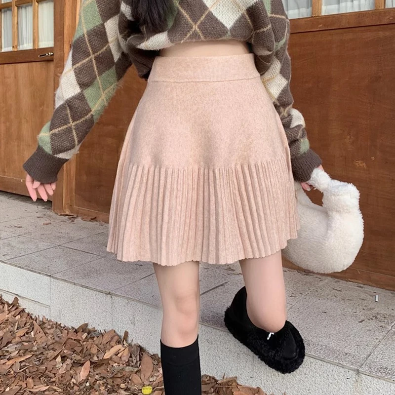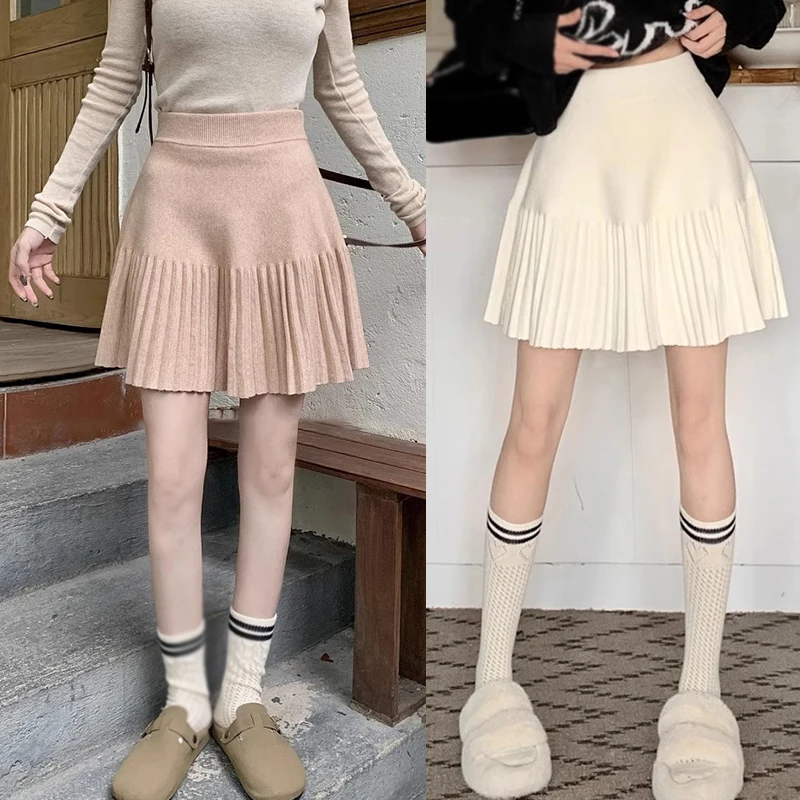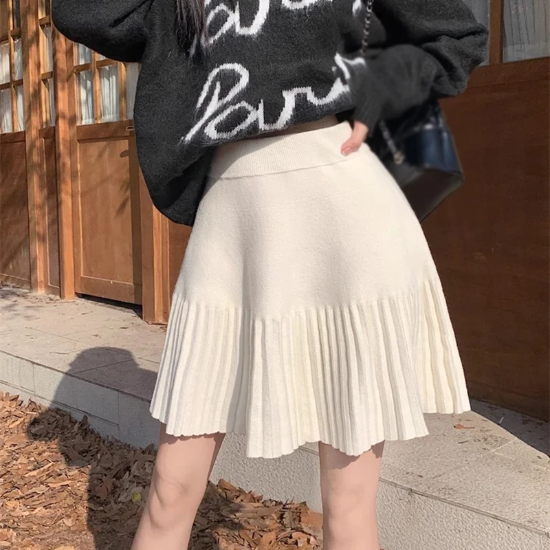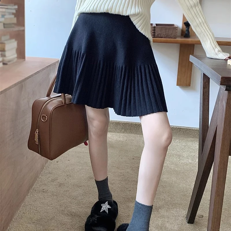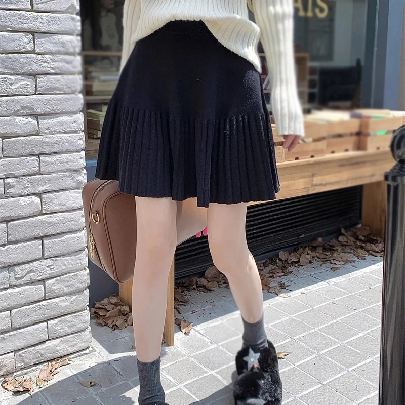 Znbbw A Line Pleated Skirt Autumn Winter Solid Colour Women's Skirt Korean Version Sweet Casual High Waist