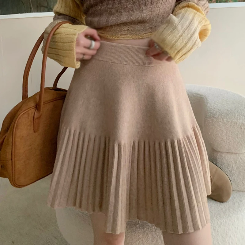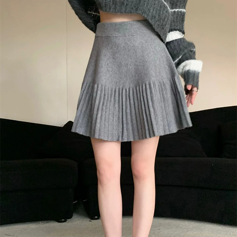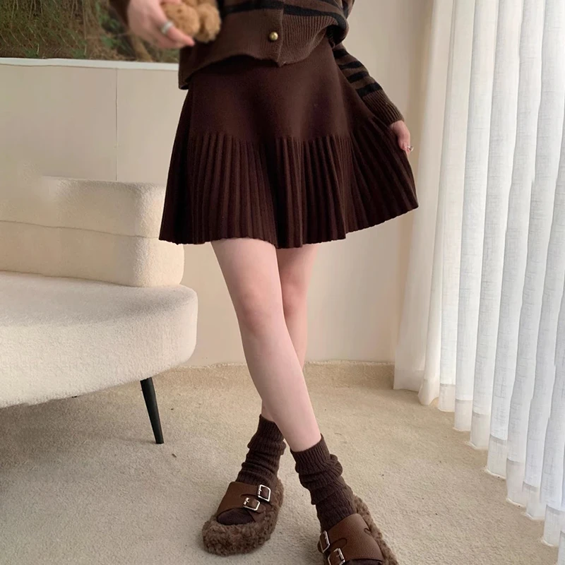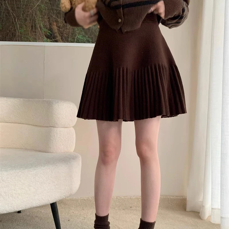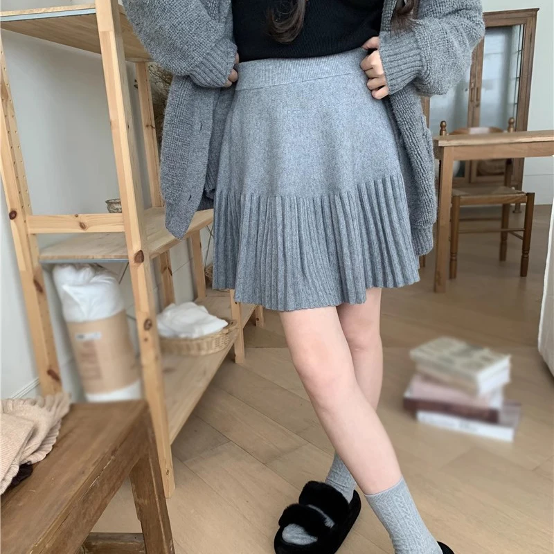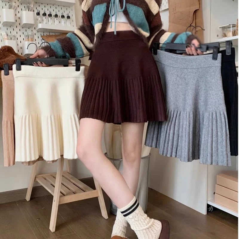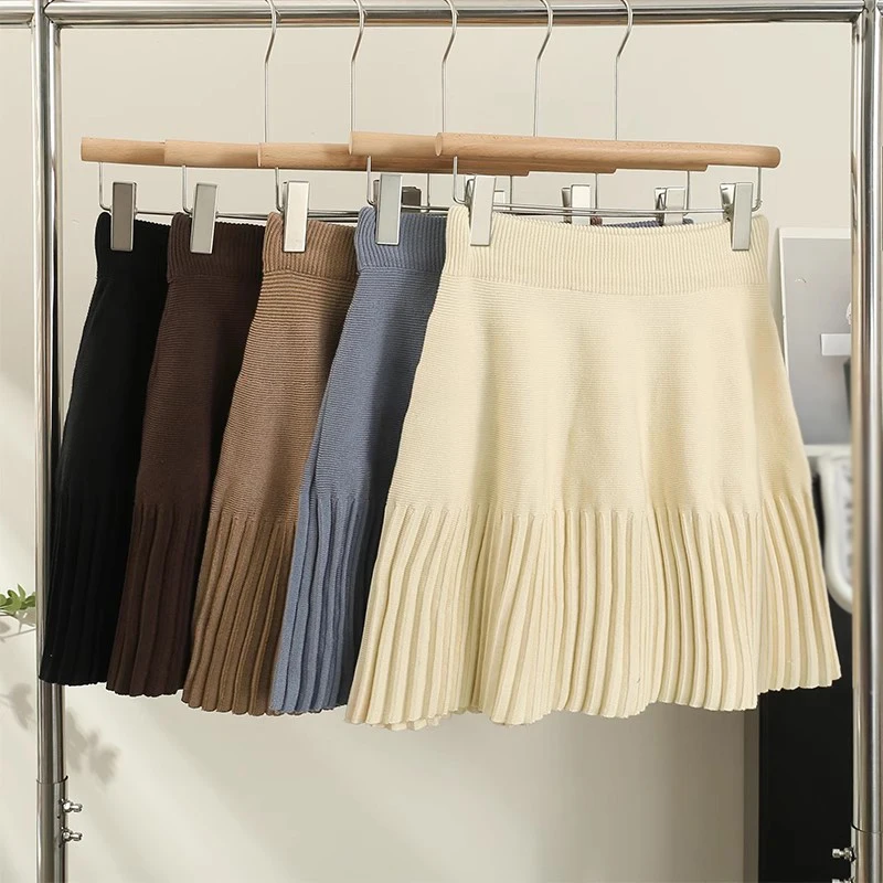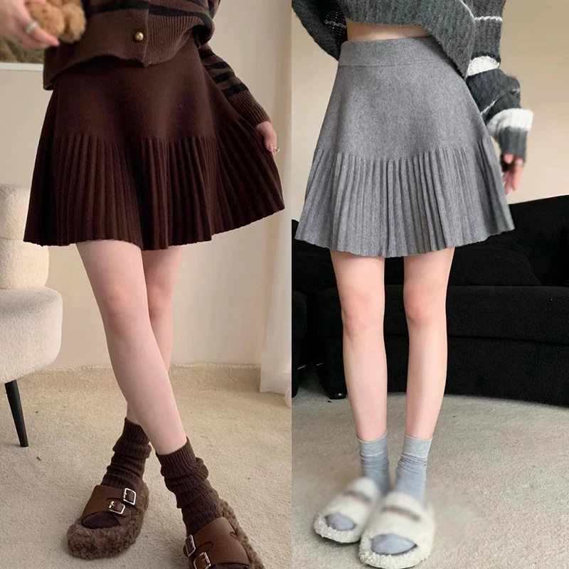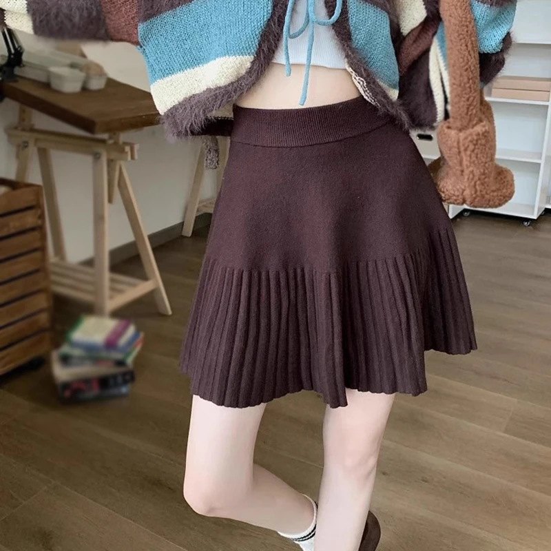 Znbbw A Line Pleated Skirt Autumn Winter Solid Colour Women's Skirt Korean Version Sweet Casual High Waist