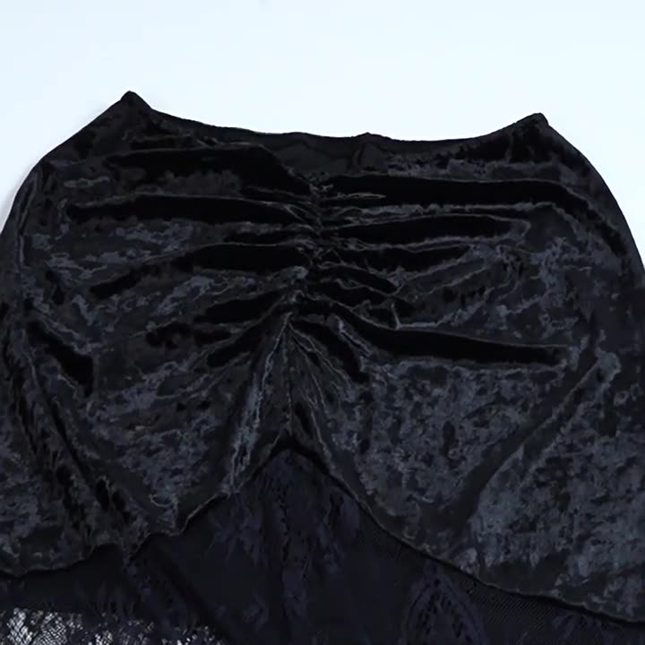 Znbbw Autumn New Sexy Perspective Embossed Skirt Dark Style Velvet Lace Spliced Half Skirt Girl