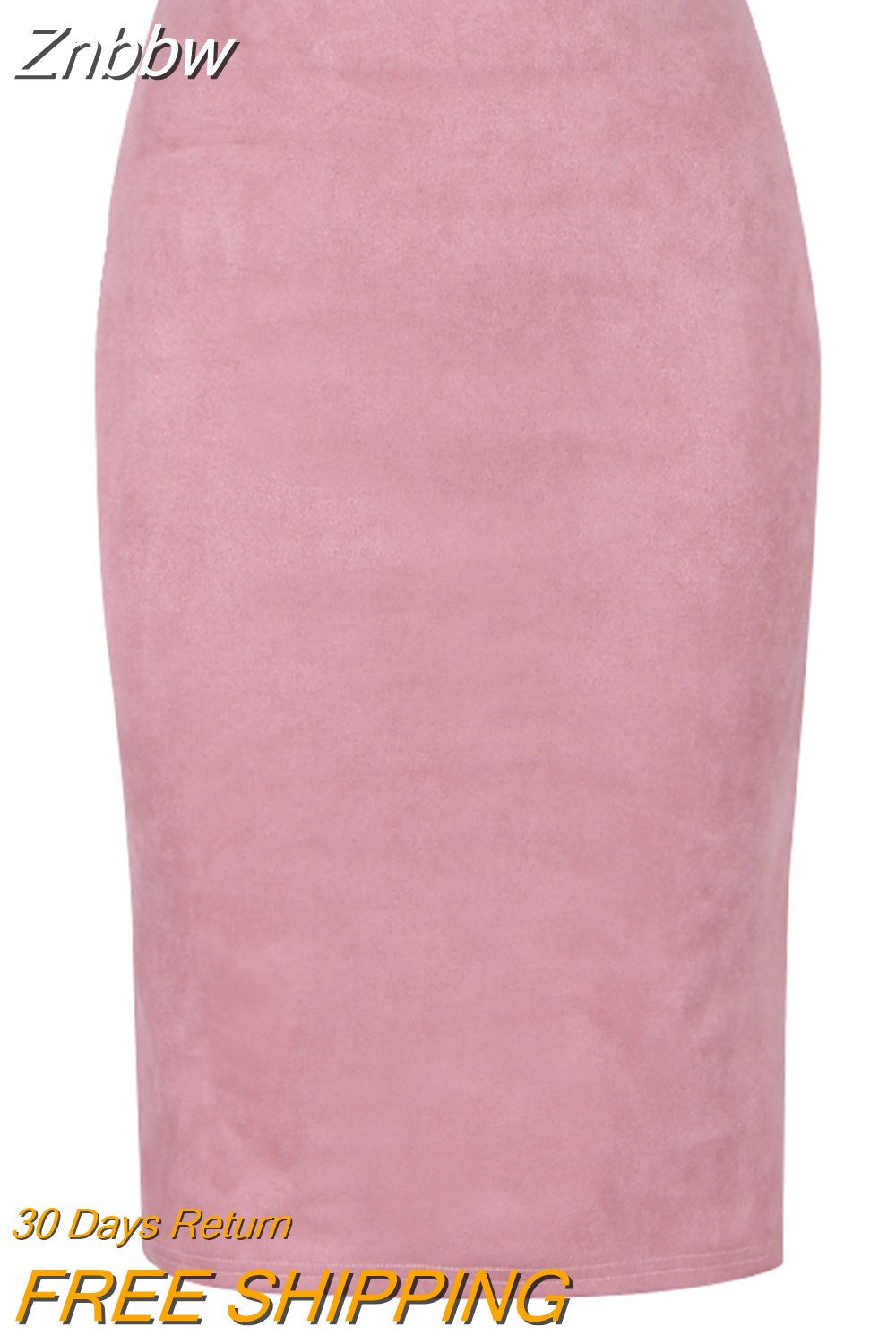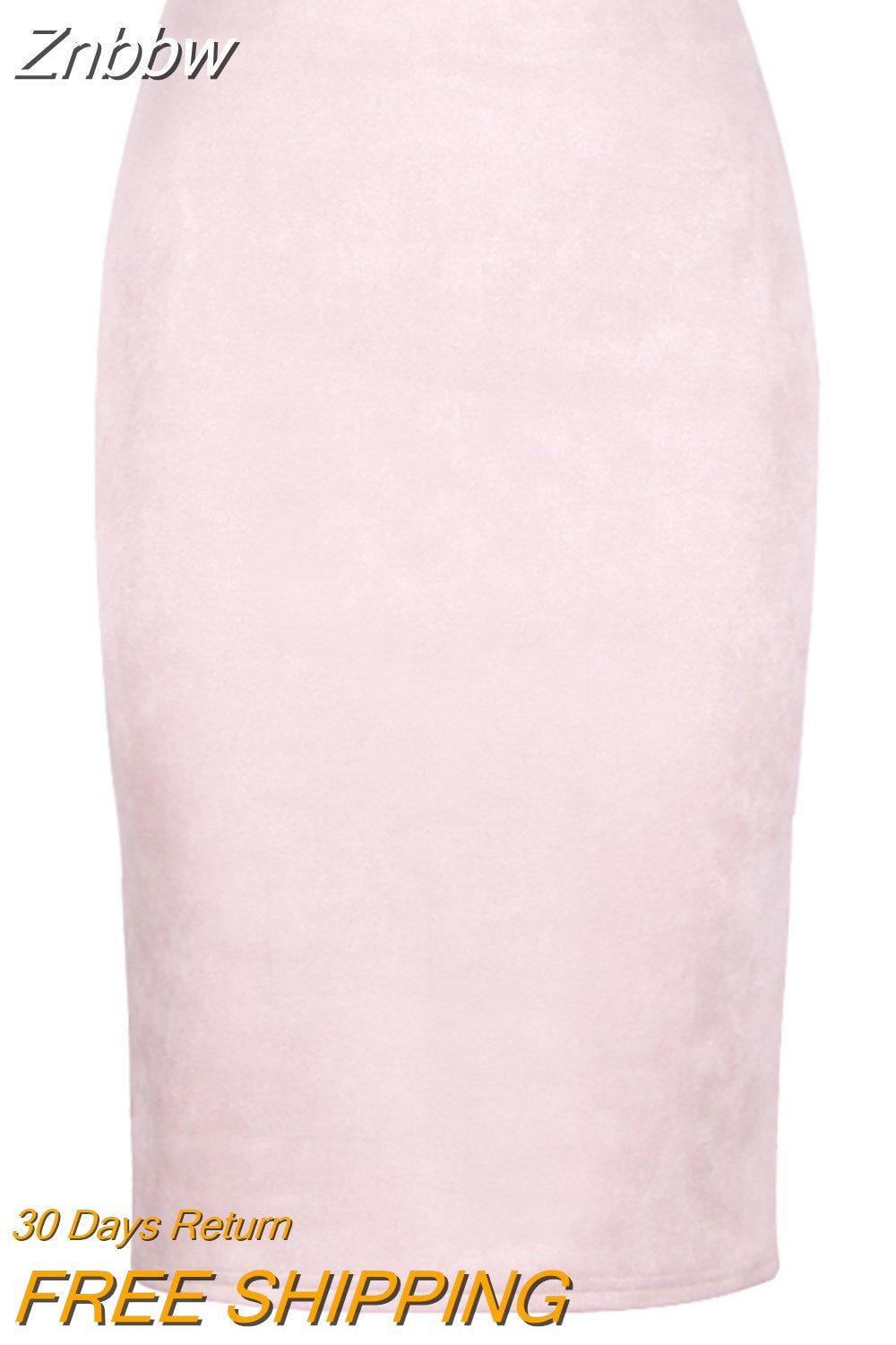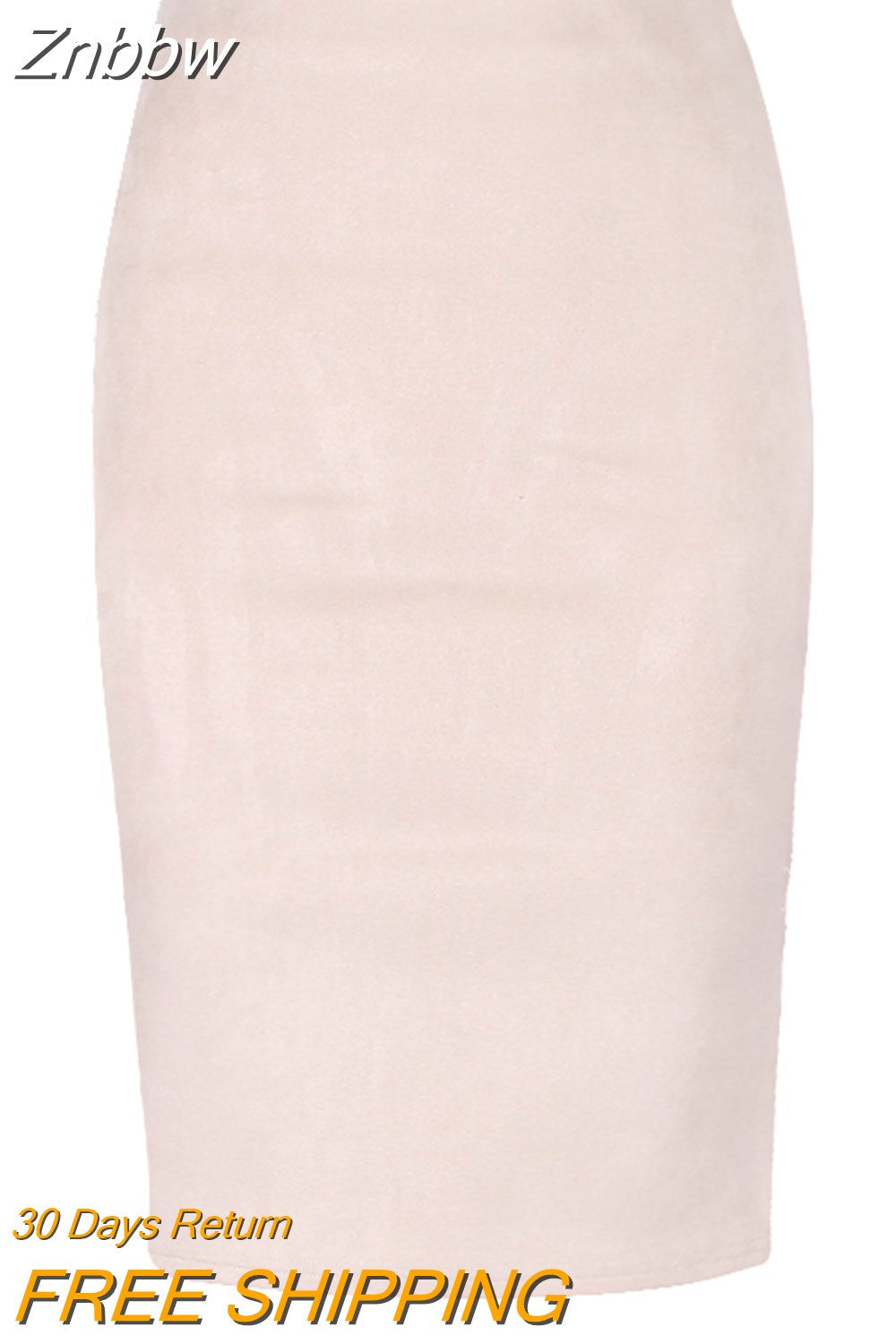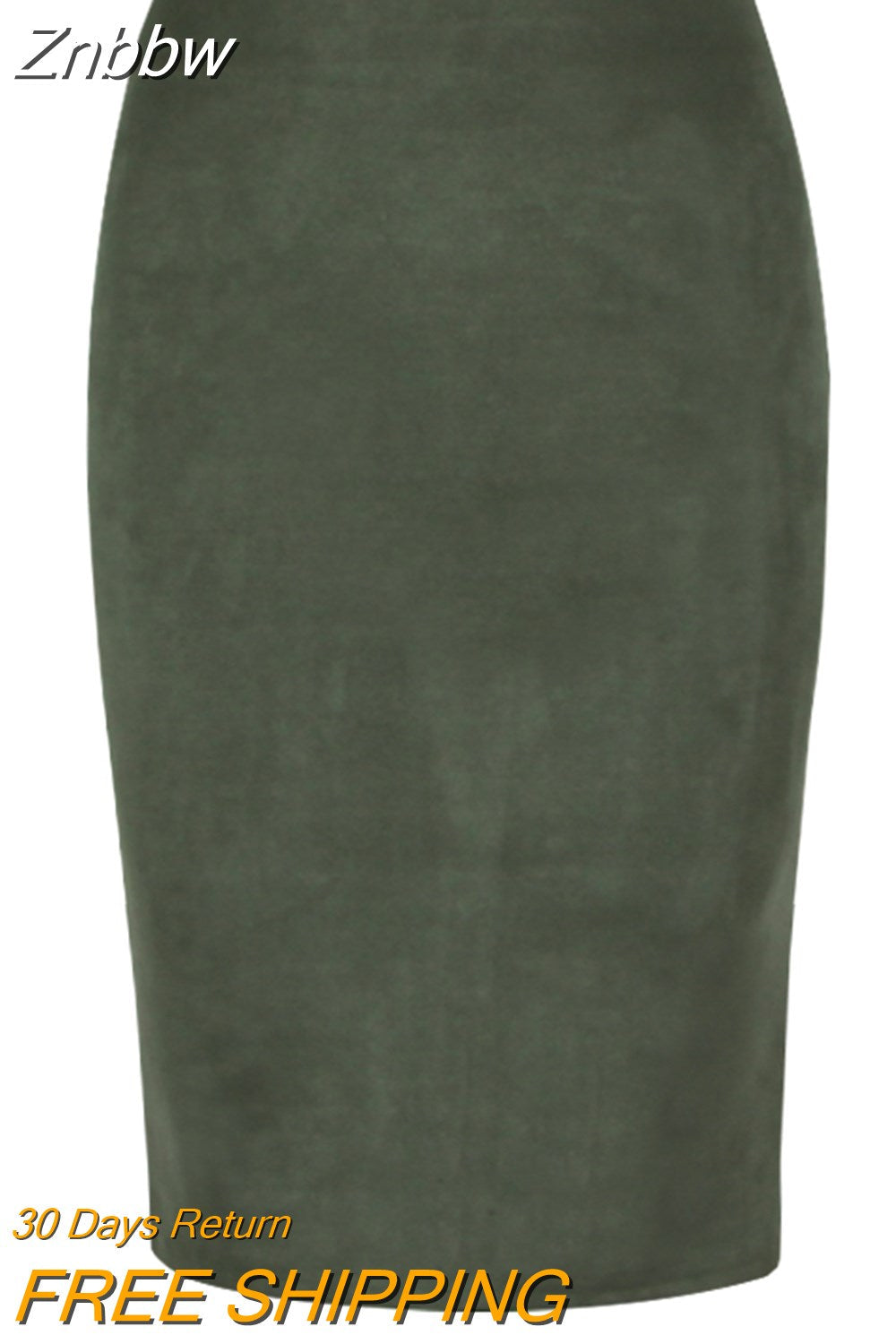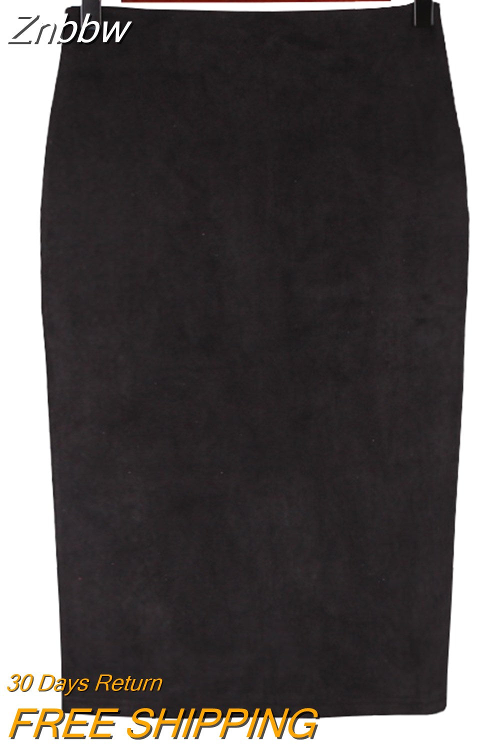 Znbbw colors 2023 Women Skirt Winter Solid Suede Work Wear Package Hip Pencil Midi Skirt Autumn Winter Bodycon Femininas