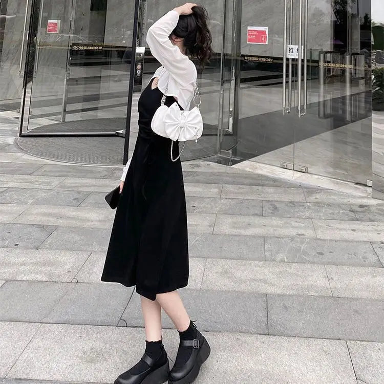 Znbbw Drawstring High Waist Slimming Split Elegant Slip Skirt Women's V-neck Dress Sunscreen Blouse Two-piece Suit