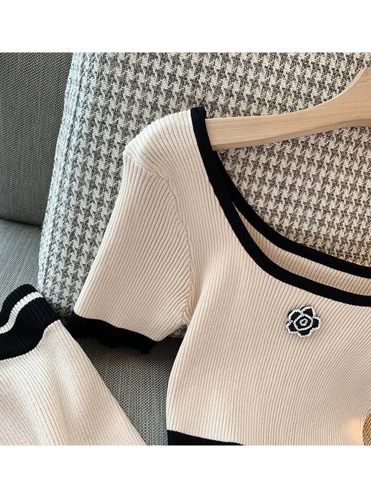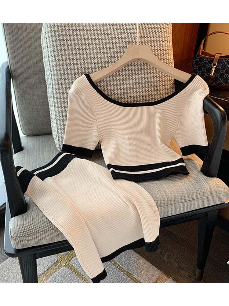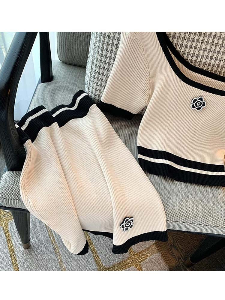 znbbw Elegant White knitted Outfits Ladies Summer Slim Sexy Femme Sleeveless Short Vest and High Waist Elastic Mini Skirt Suit
