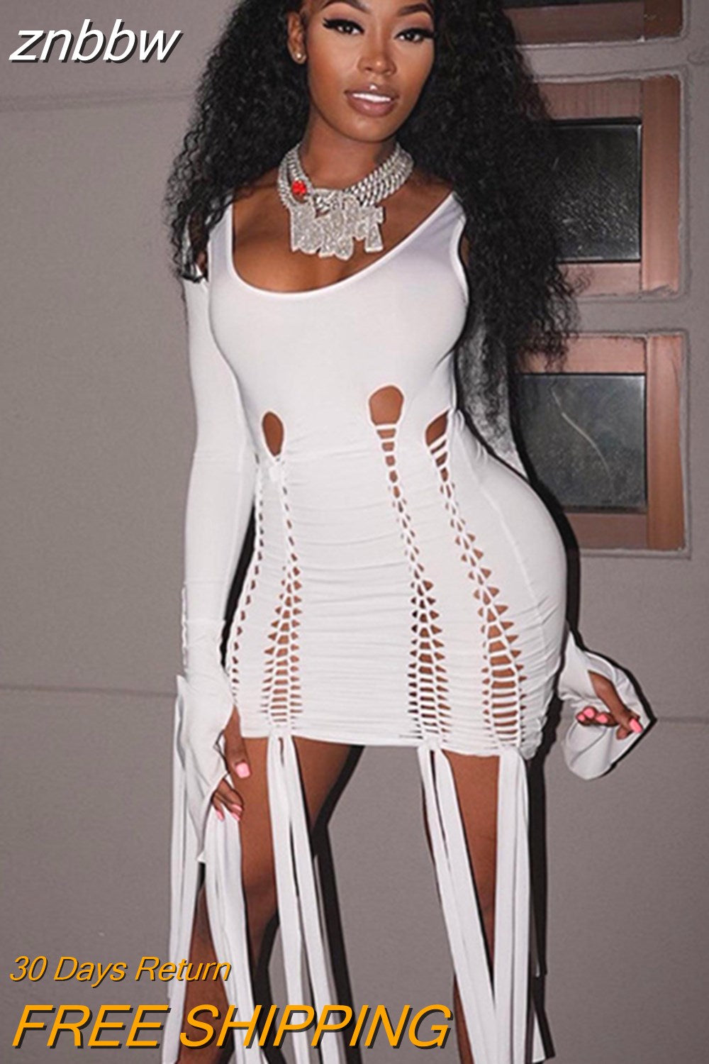 znbbw Fall Sexy Solid Hollow Out Tassel 2 Two Piece Sets Club Outfit For Women 2023 Long Sleeve Crop Top And Short Skirt Sets