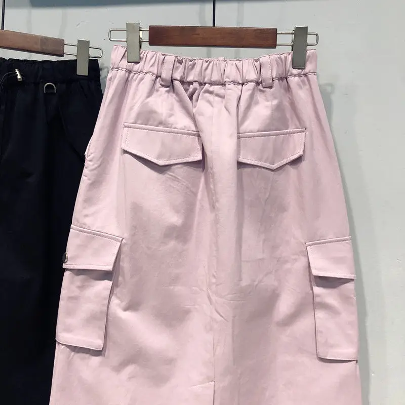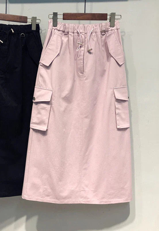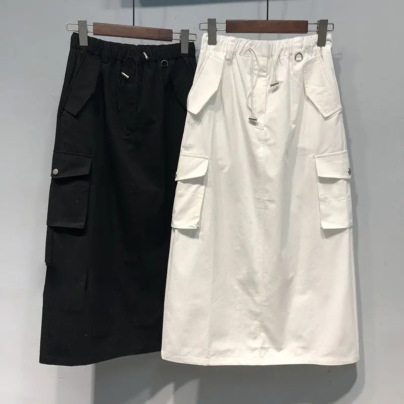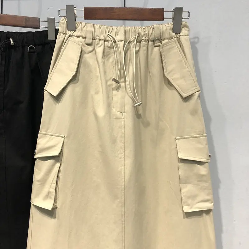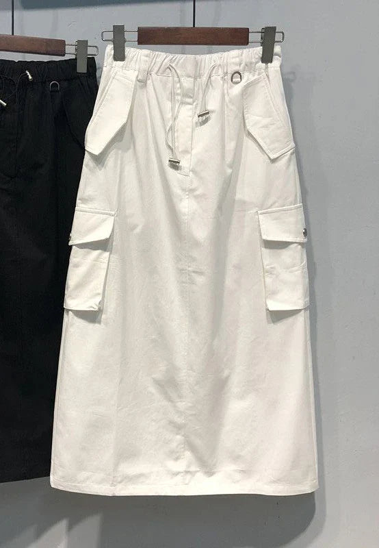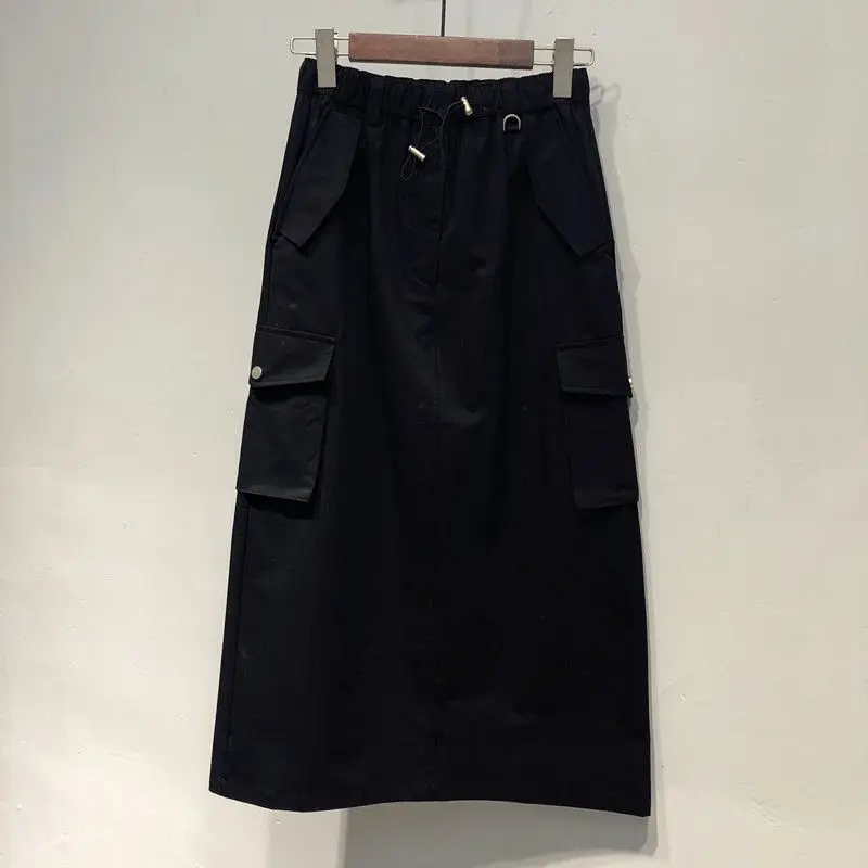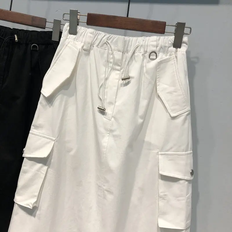Znbbw Full Length Skirt Black Elastic Waist Y2k Skirts Cargo Skirts for Women Spring Summer Drawstring Girls Long Skirt