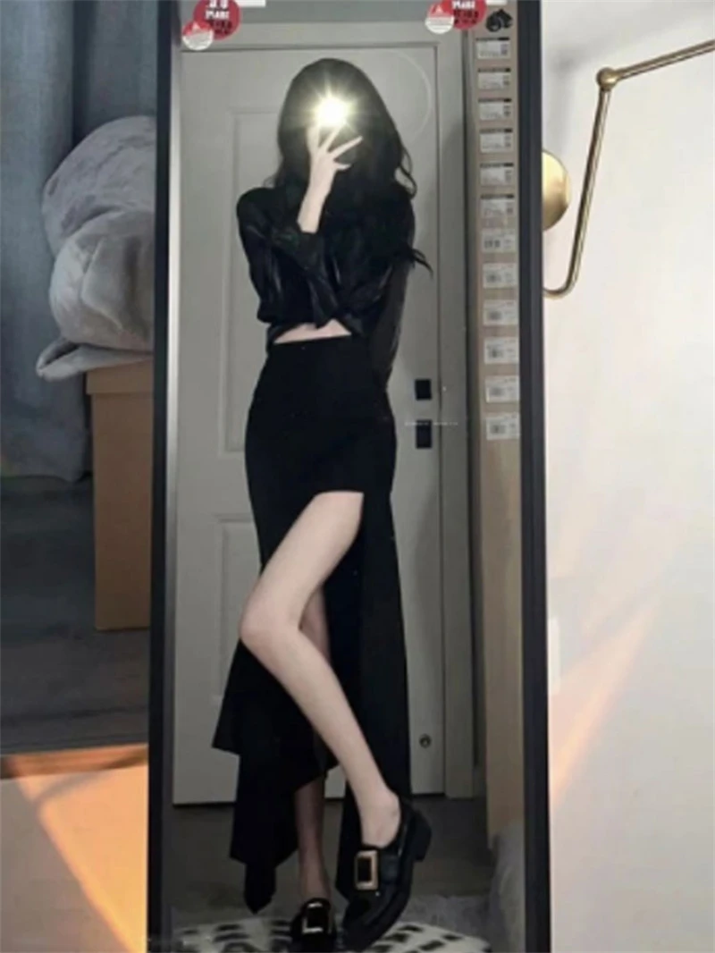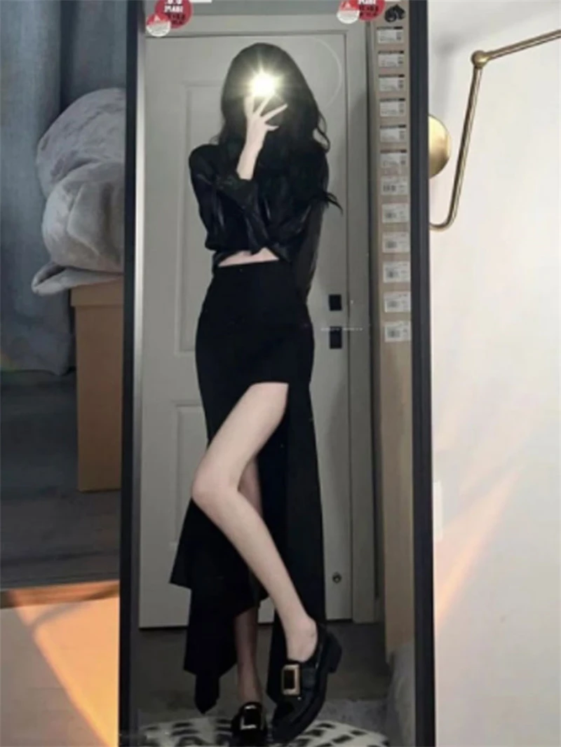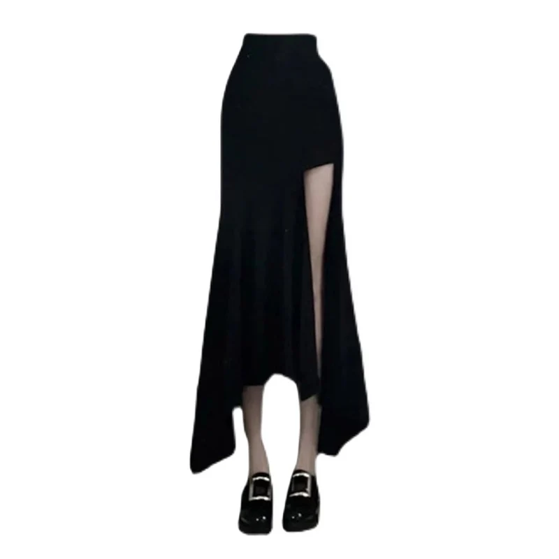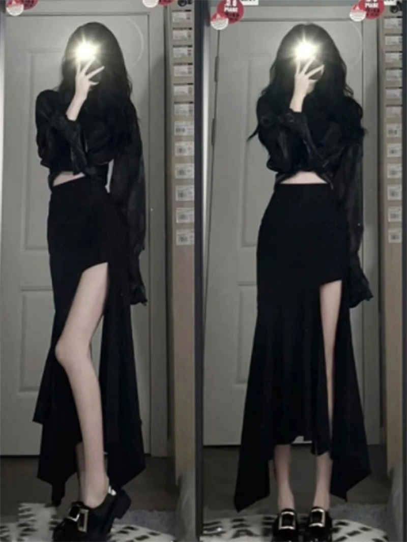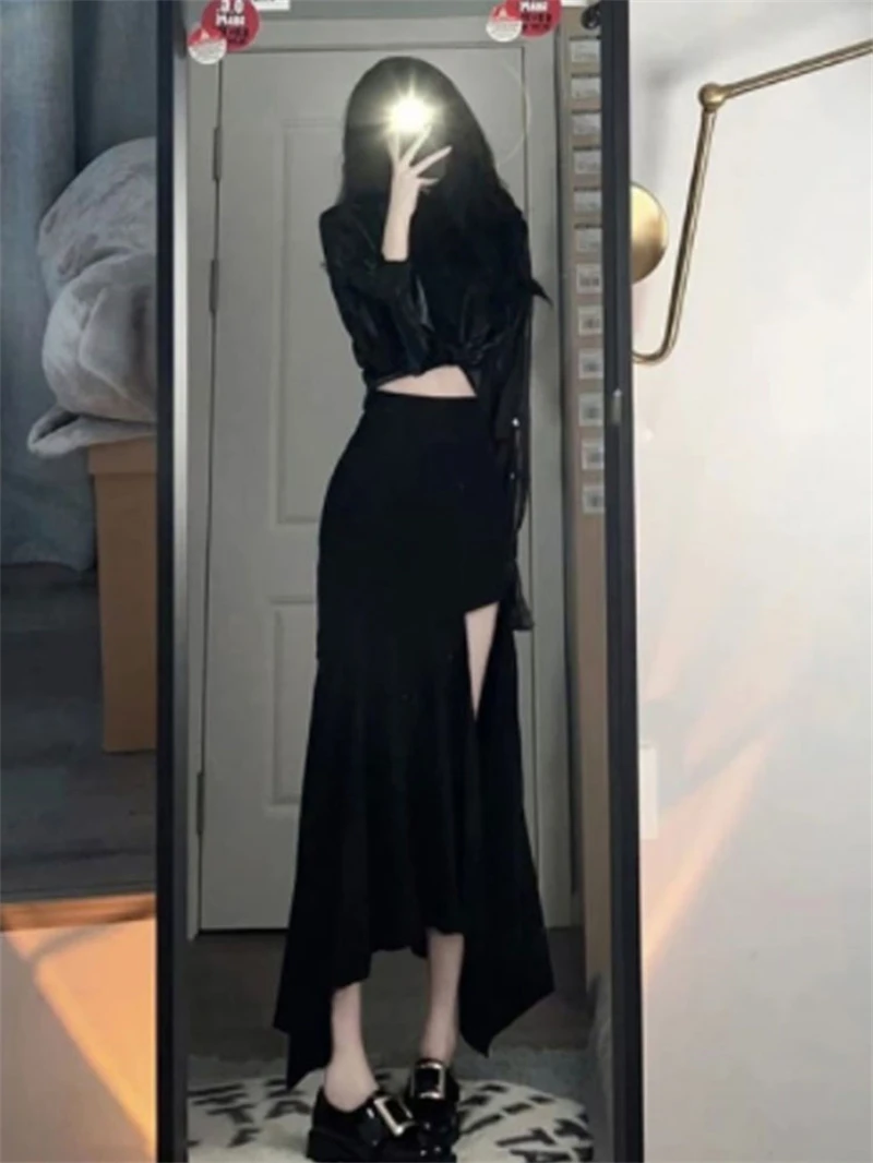 Znbbw High Waist Slim Wrap Hip Black Big Split Fishtail Skirt Women Elegant Fashion Irregular Mid-length Dress Korean Style 2024