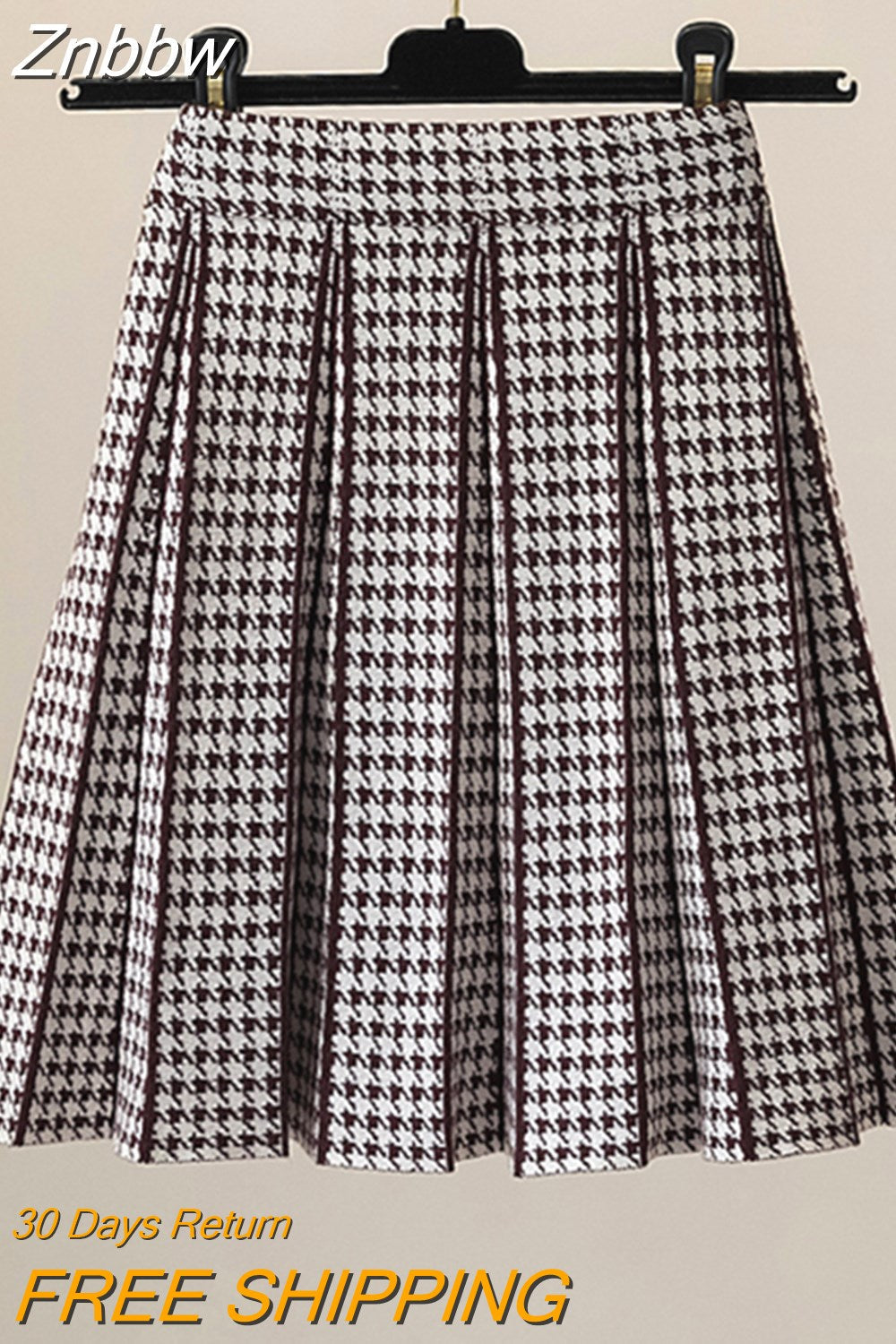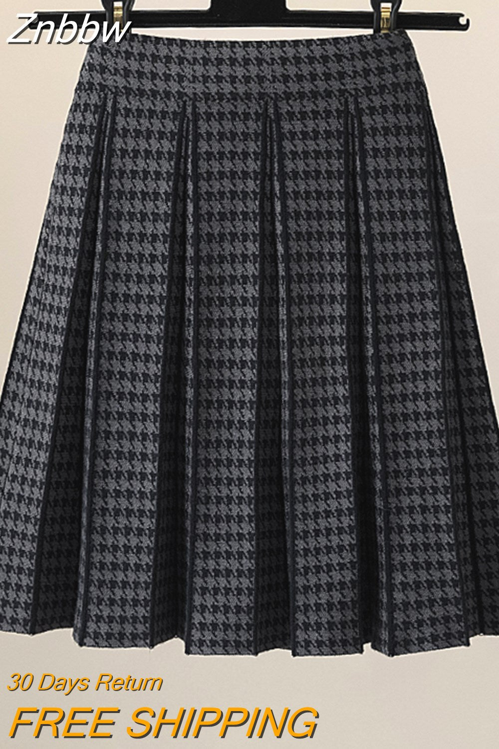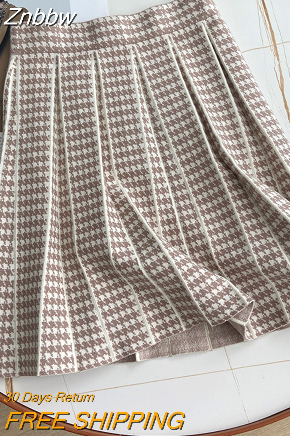 Znbbw New Houndstooth Pleated Short Skirt Women's Autumn Winter High Waist All-match A-line Mini Knitted Skirts GD745