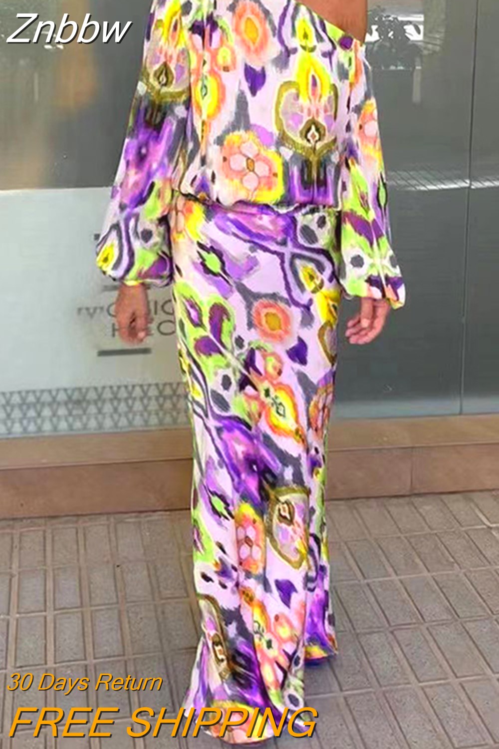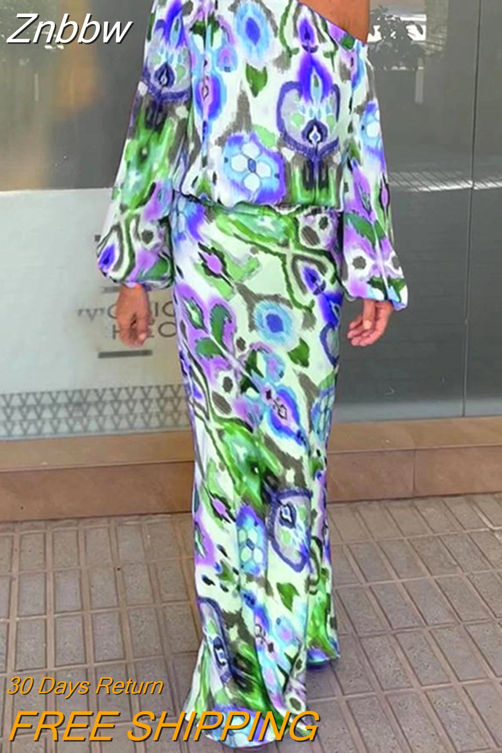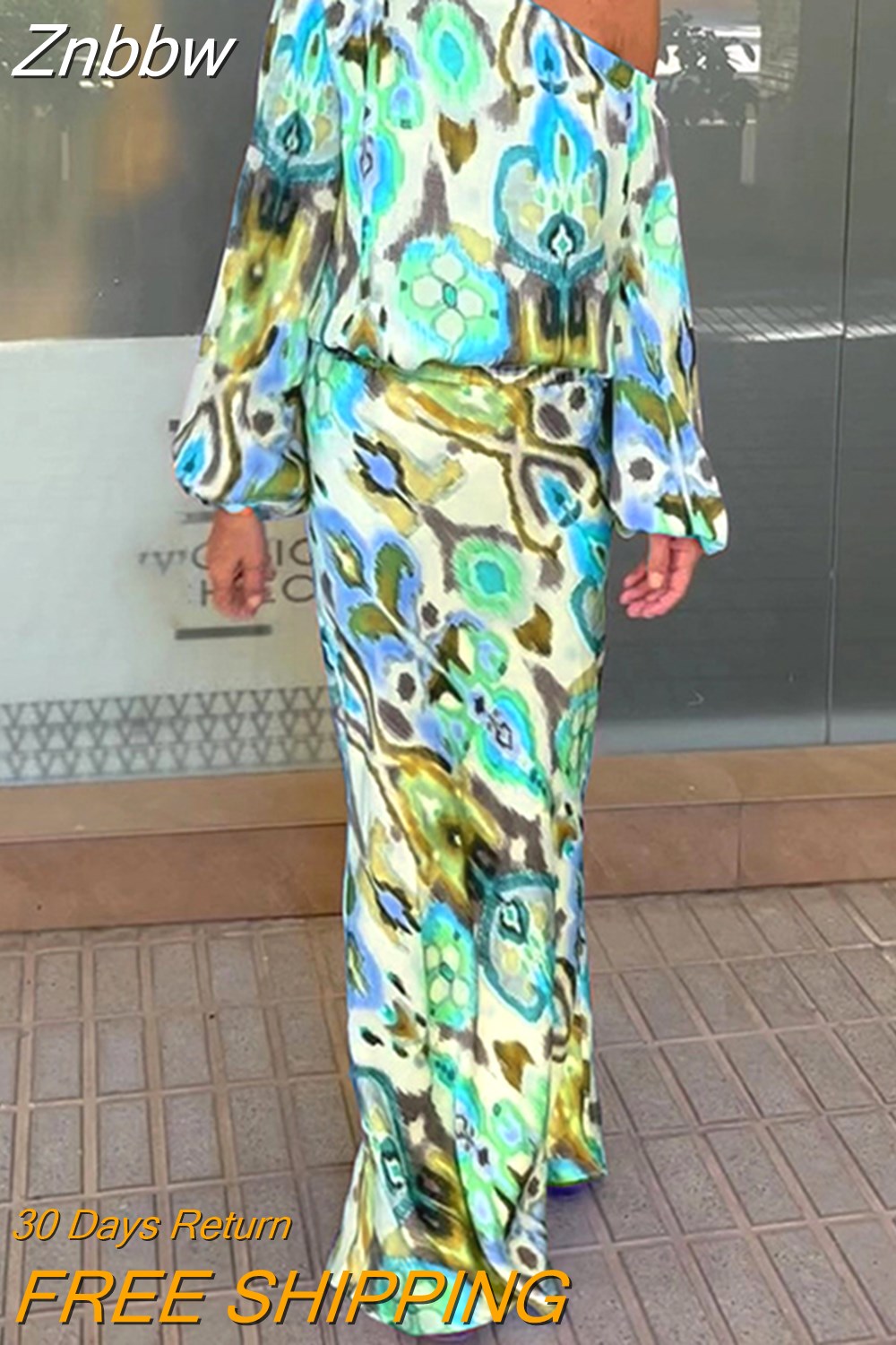 Znbbw Pattern Print Women Suit Casual Diagonal Neck Long Sleeve Top And High Waist Skirt Suit Ladies Fashion Slim 2 Piece Sets