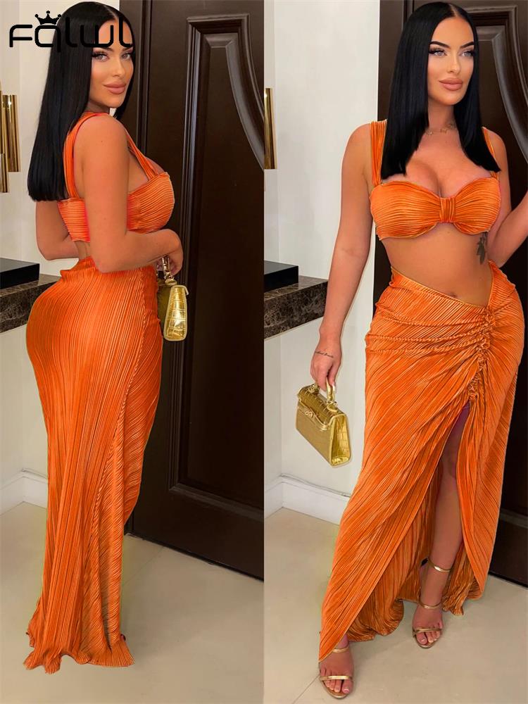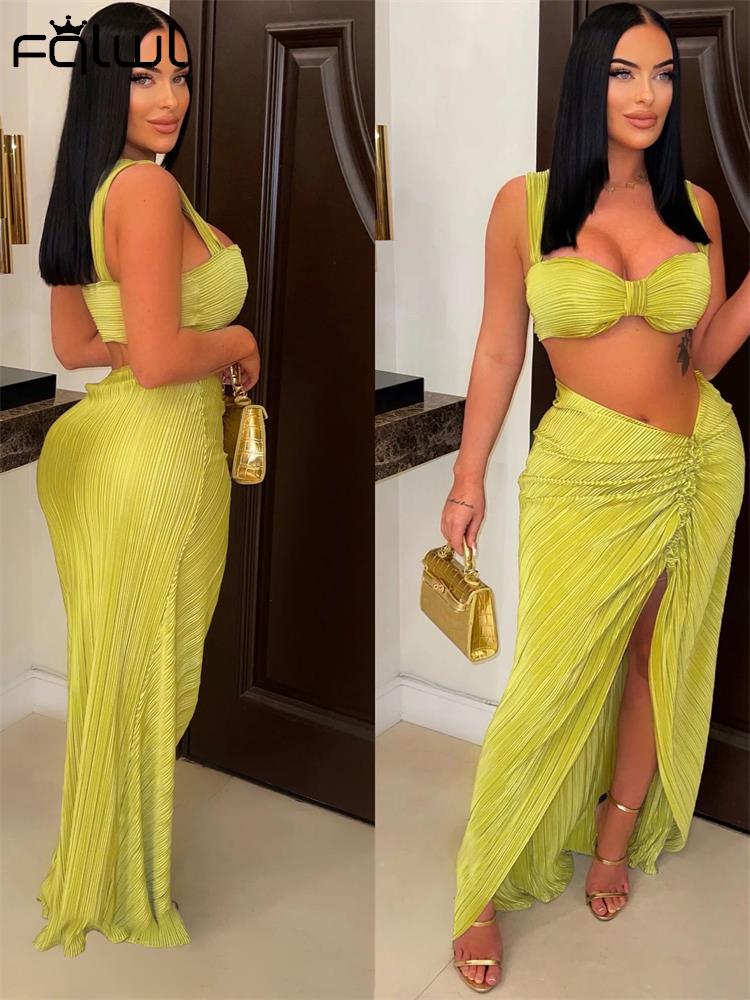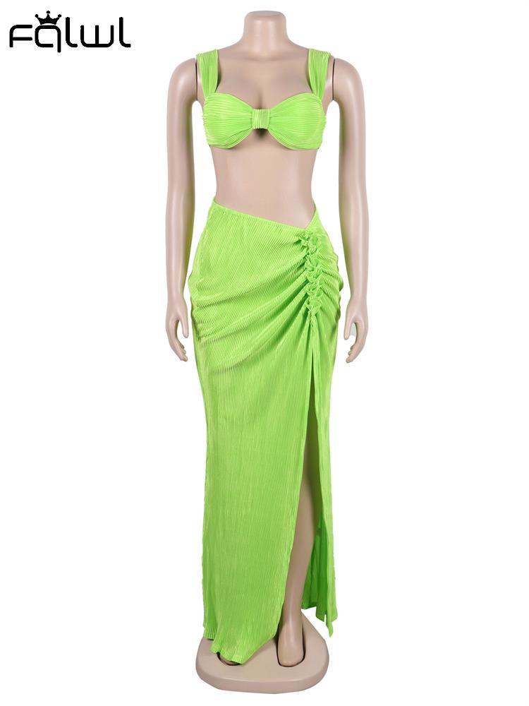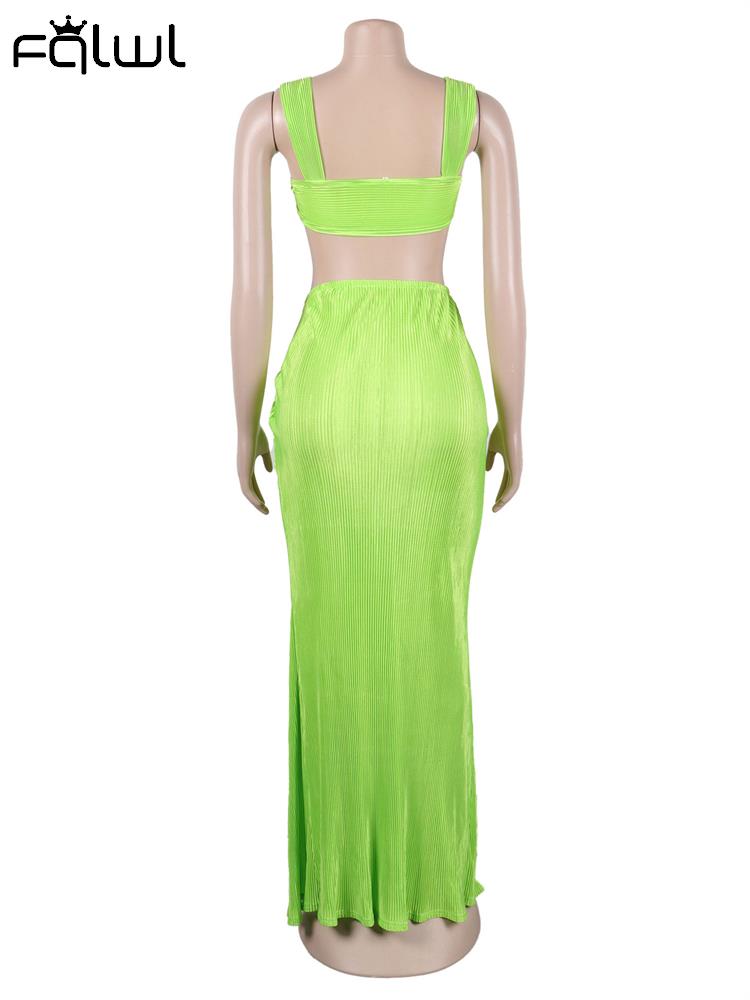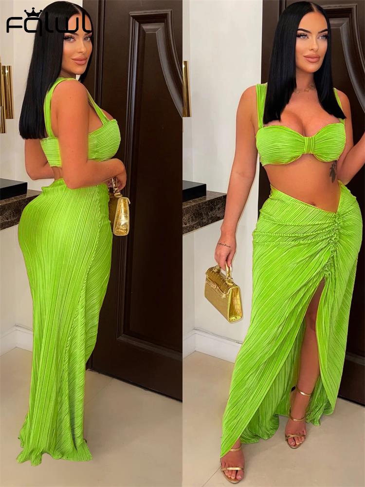 znbbw Sexy Green Sleeveless Caimsole Two Piece Skirt Set Party Evening For Women 2023 Summer Strapless Crop Top Long Skirt Set