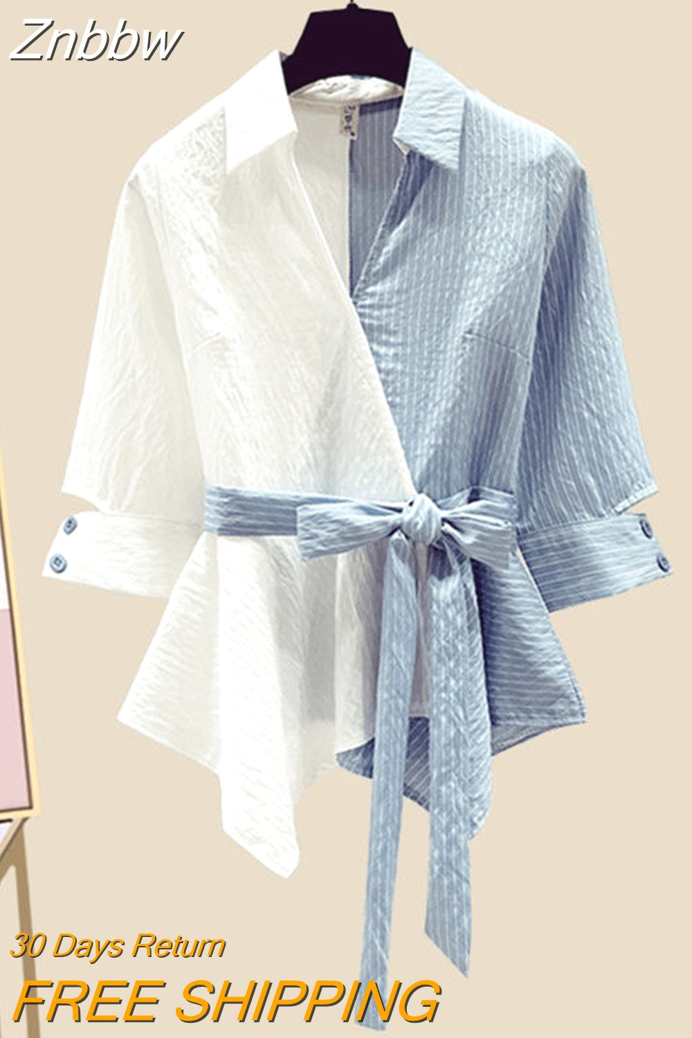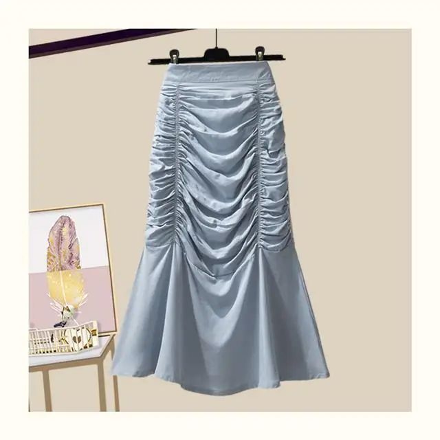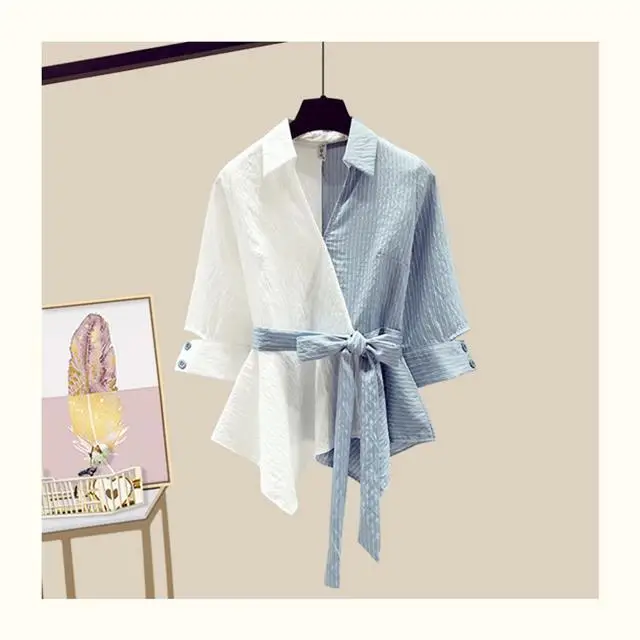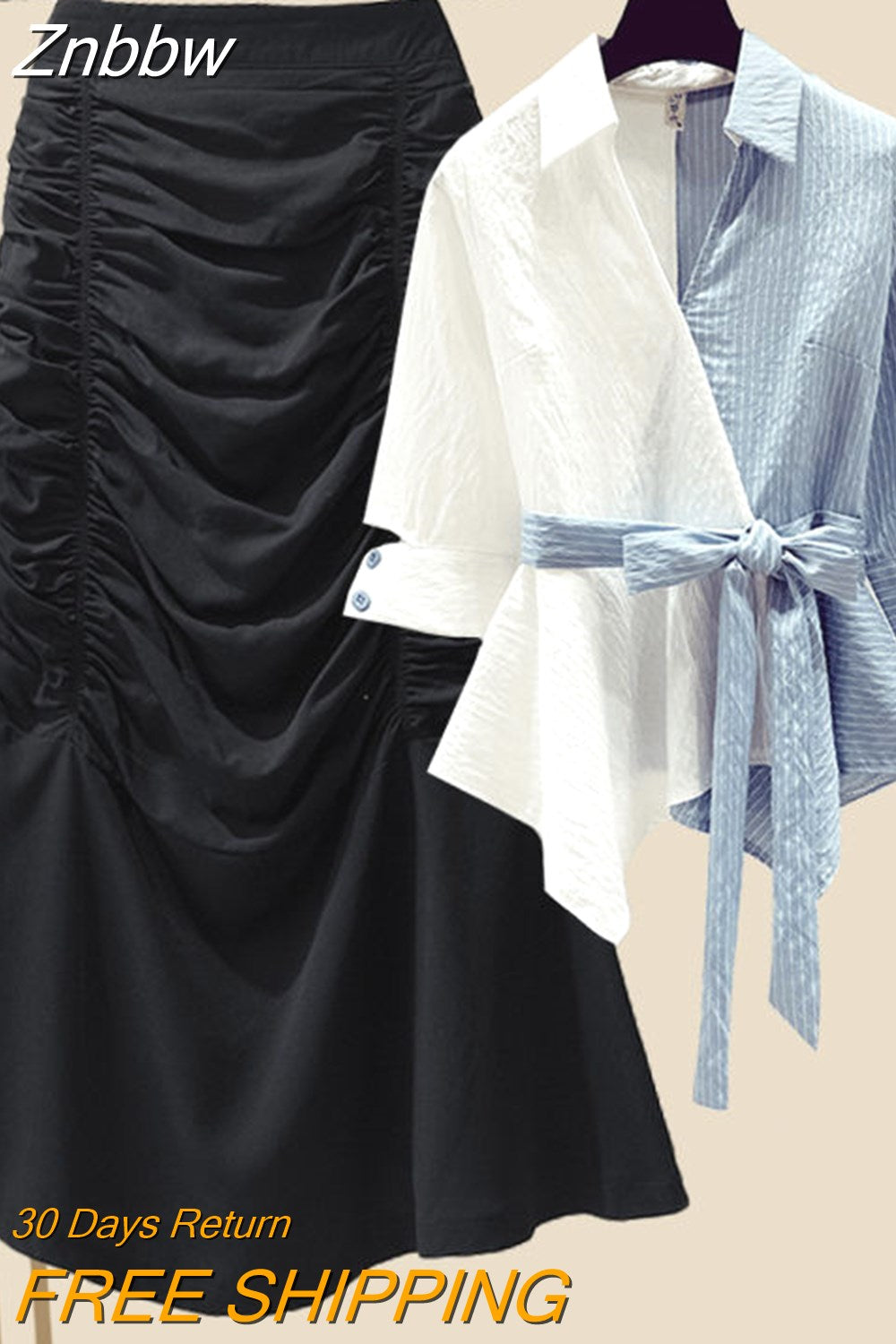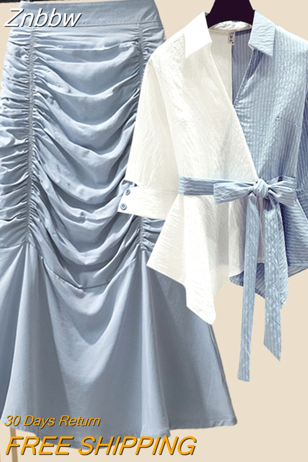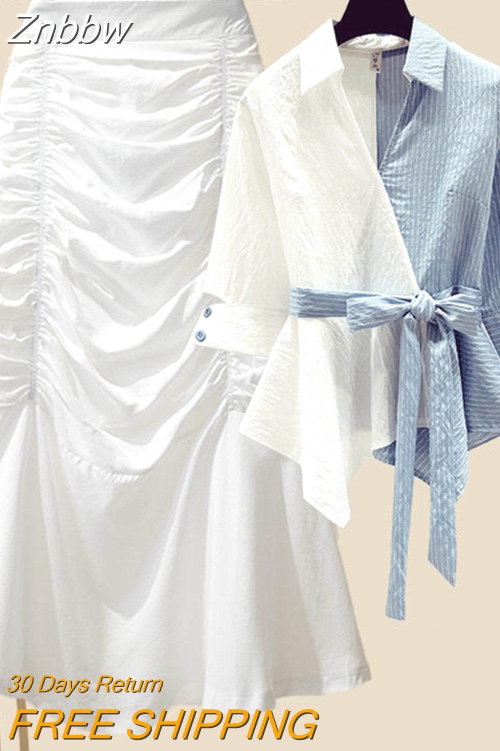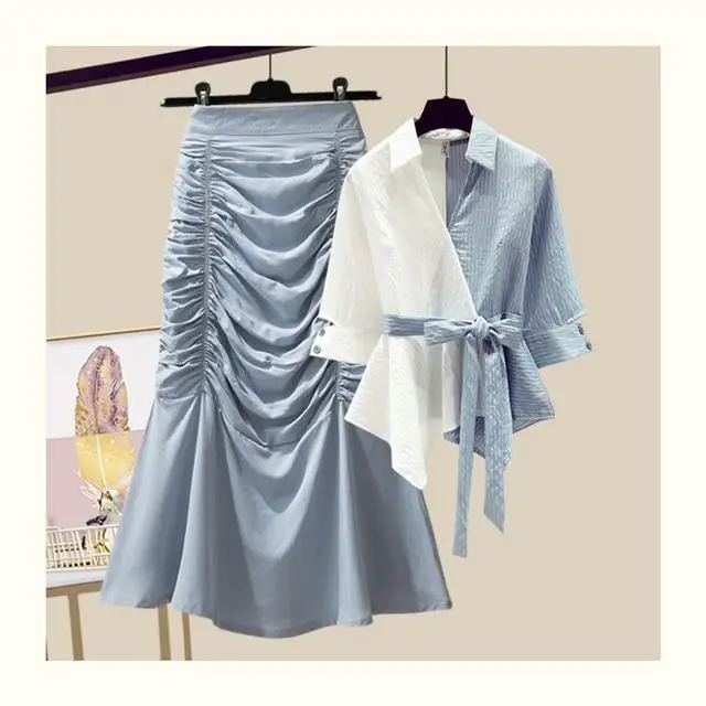 Znbbw Size Women's Summer Suit Elegant Women's 2023 New Women's Patchwork Shirt Top + High Waist Fishtail Skirt Two-piece Set