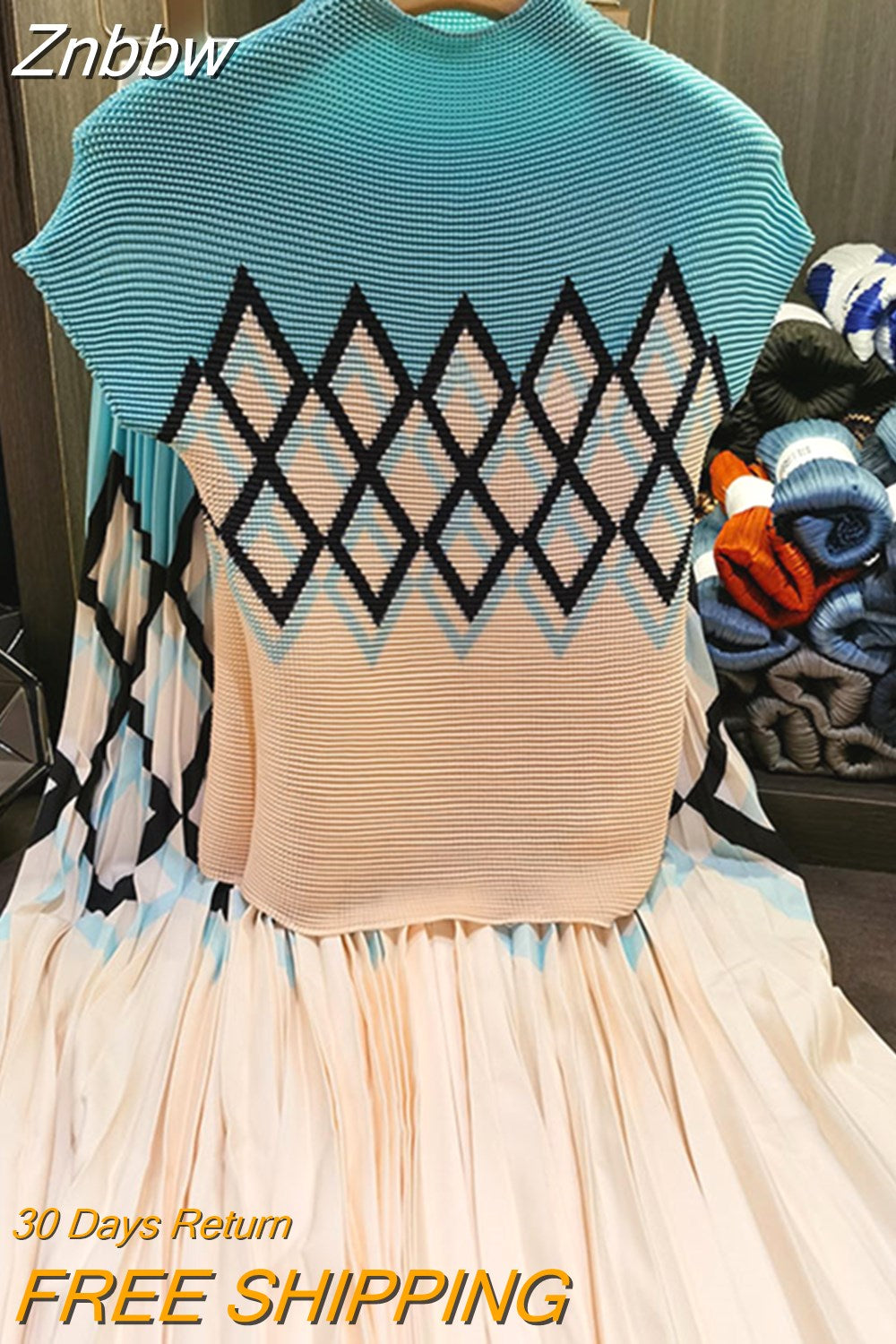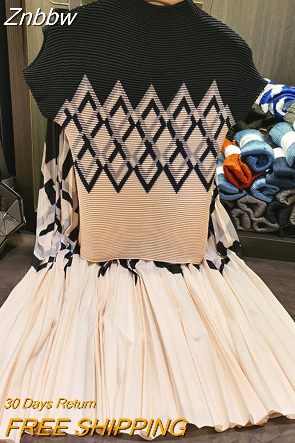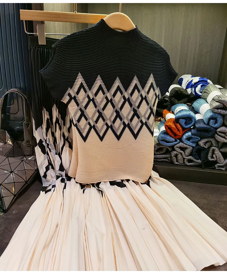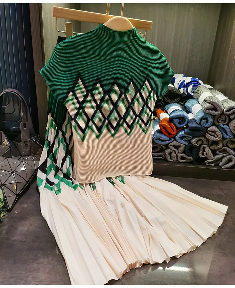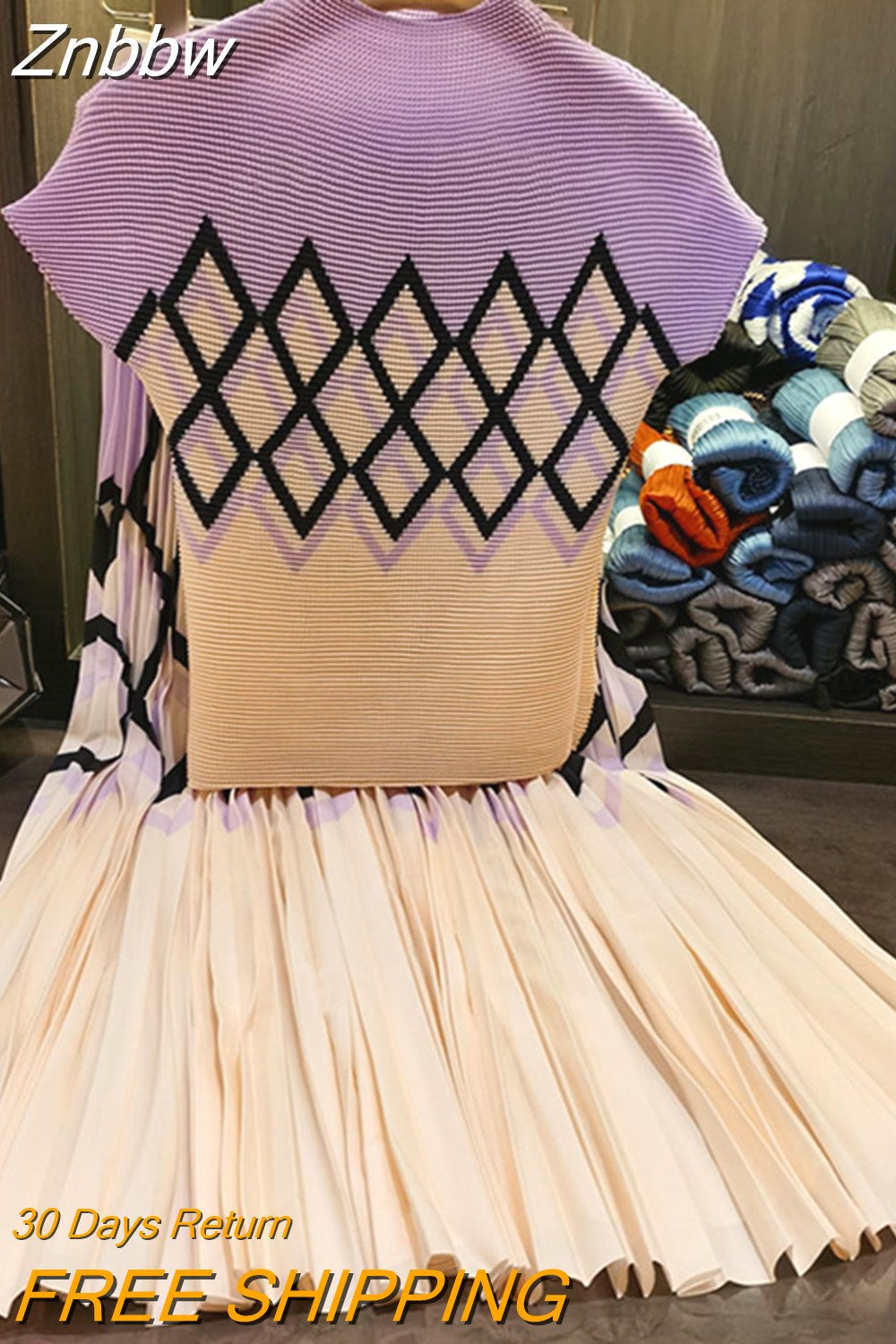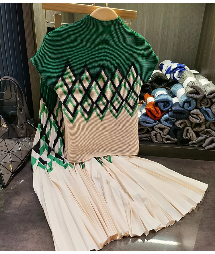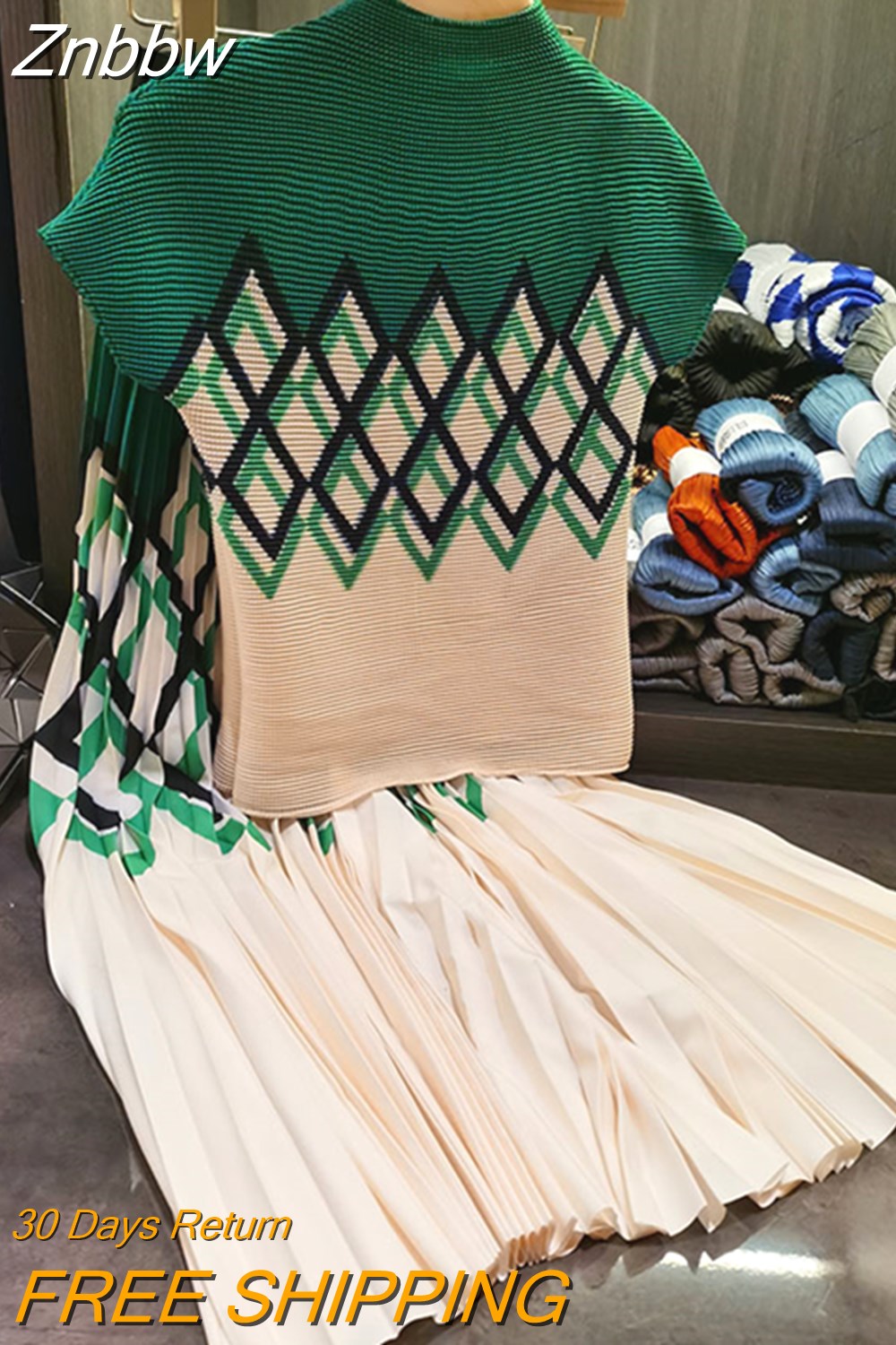 Znbbw Skirts Two Piece Suit Women Stretchy Pullover Tops + Chic Pleated A-Line Skirts Set Lady Summer Casual Matching Outfits
