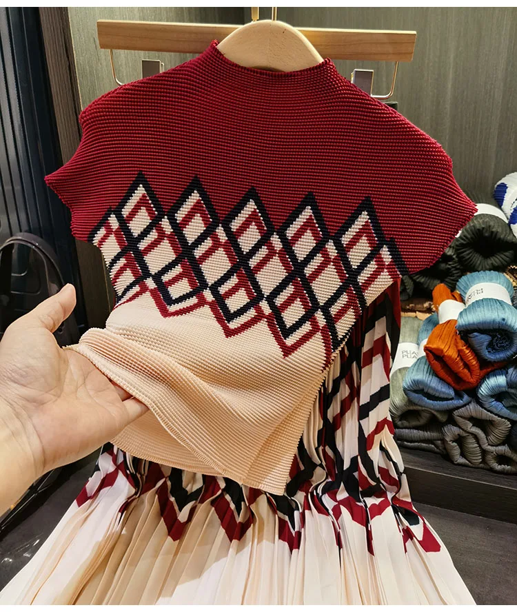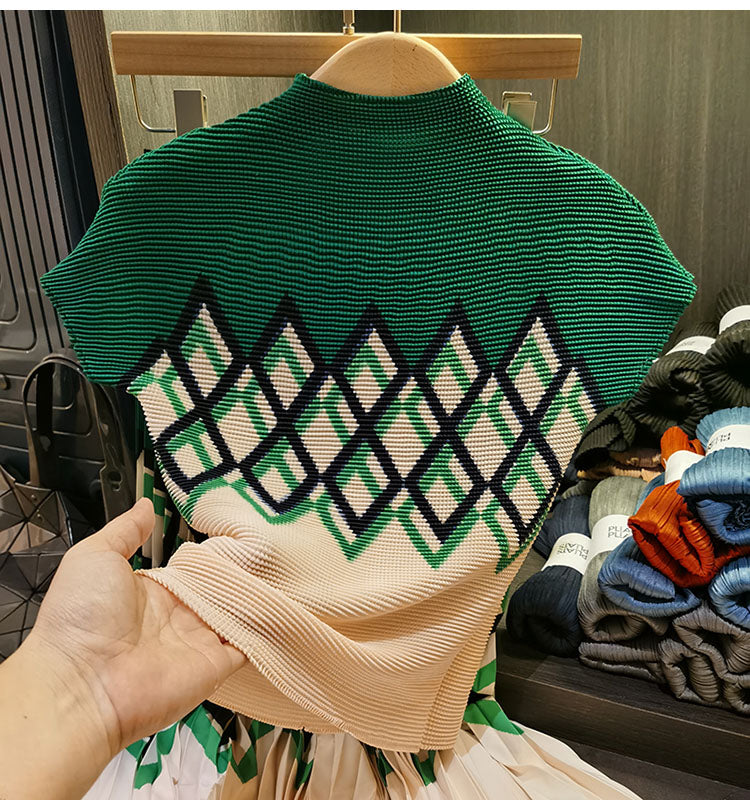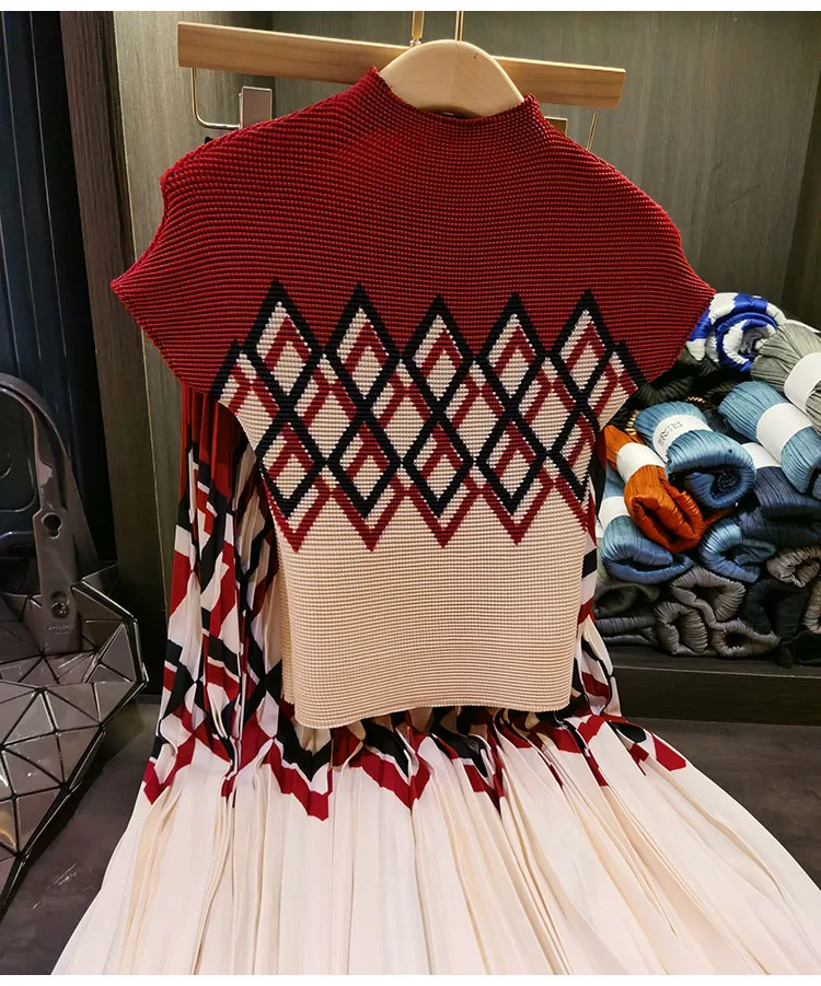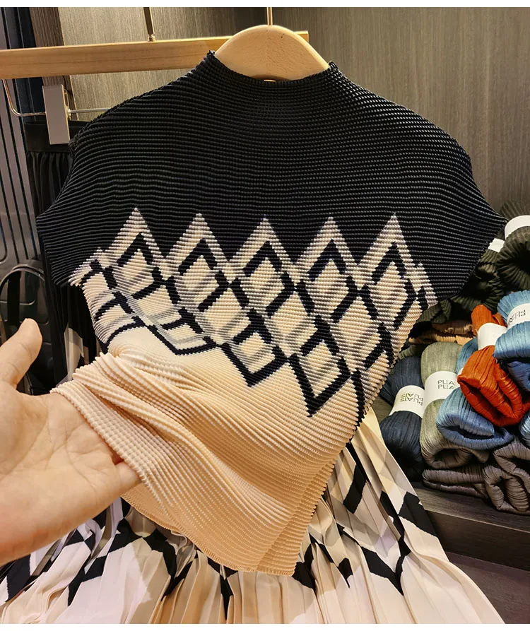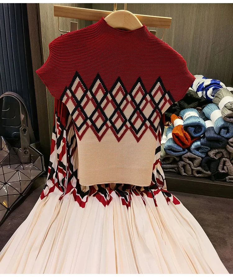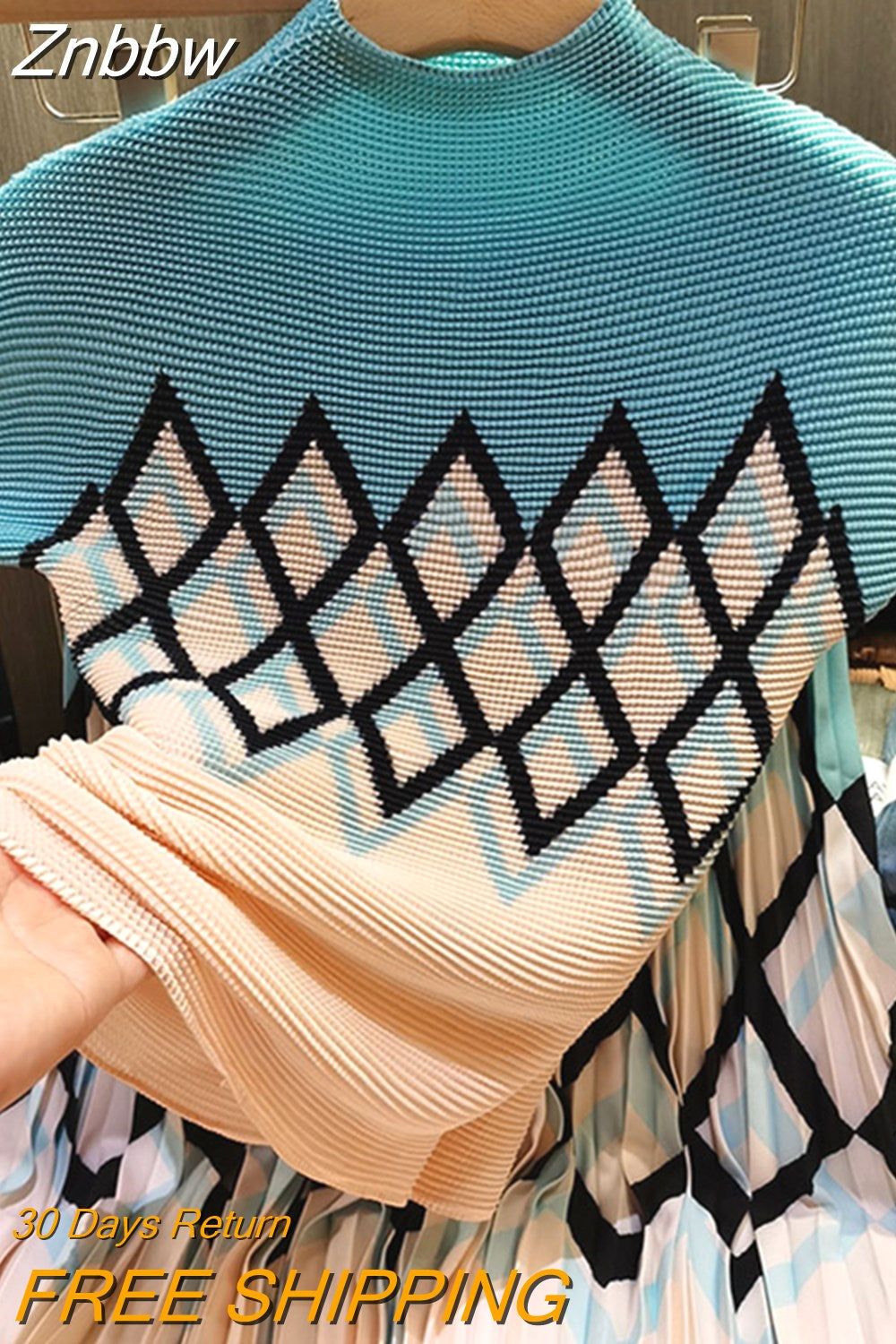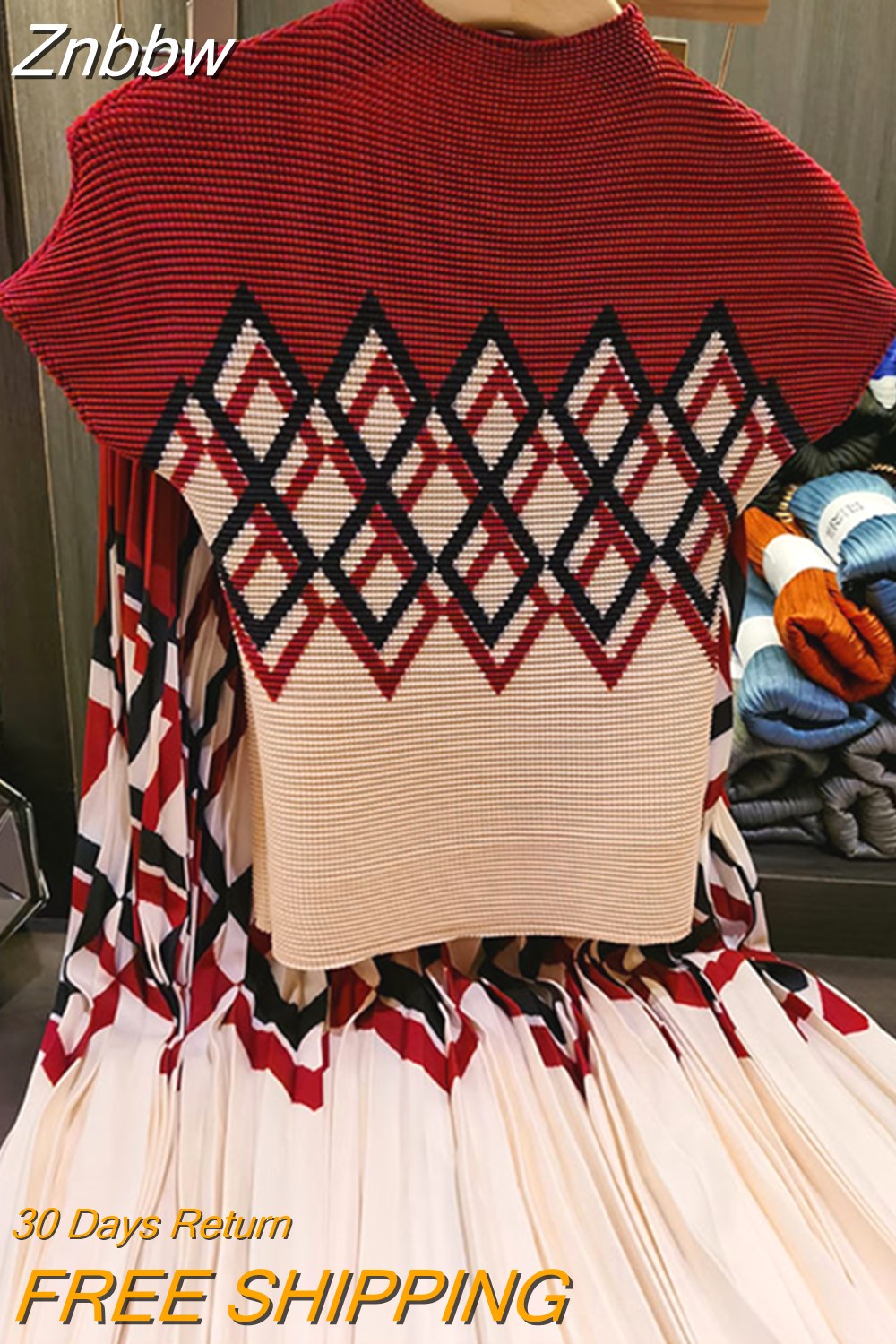 Znbbw Skirts Two Piece Suit Women Stretchy Pullover Tops + Chic Pleated A-Line Skirts Set Lady Summer Casual Matching Outfits