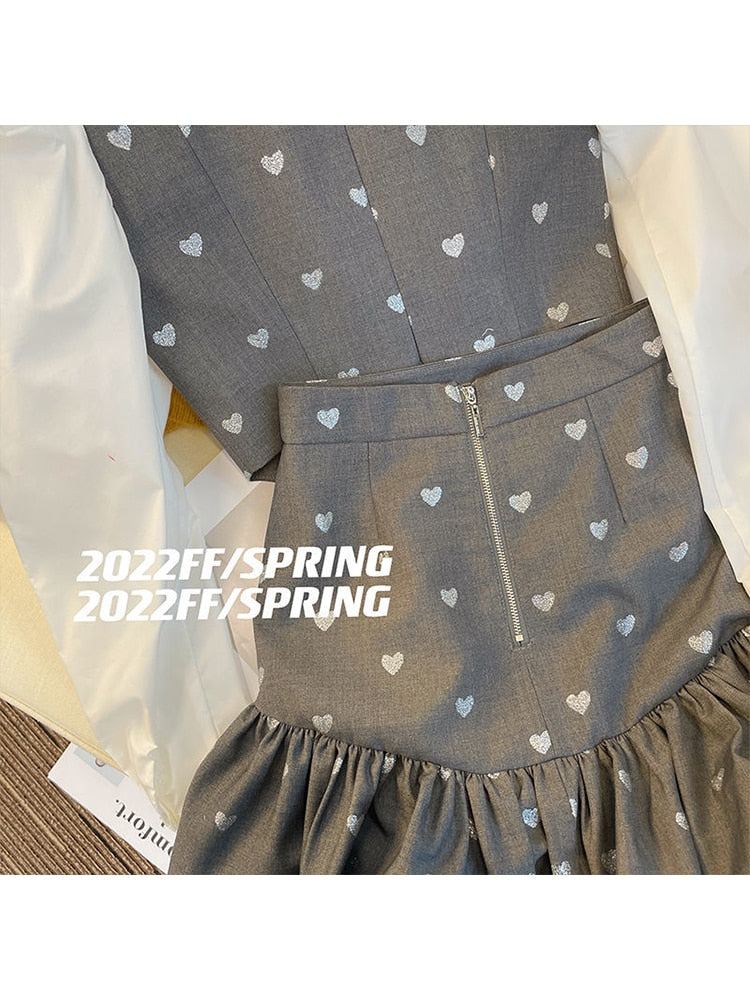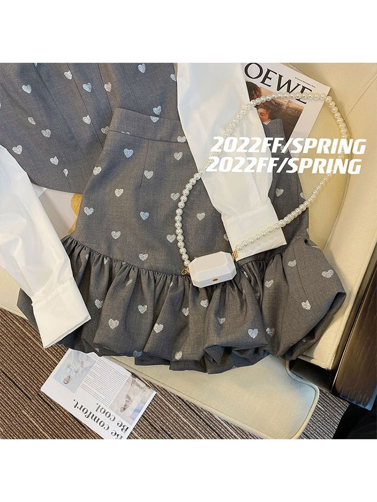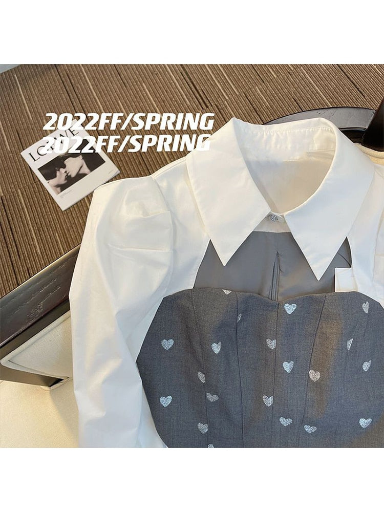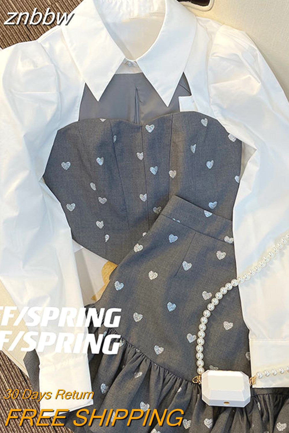 znbbw Summer Preppy Style 2 Piece Set Women Long Sleeve Patchwork Shirt + A-line Pleated Skirt Basics Two Piece Skirt Set