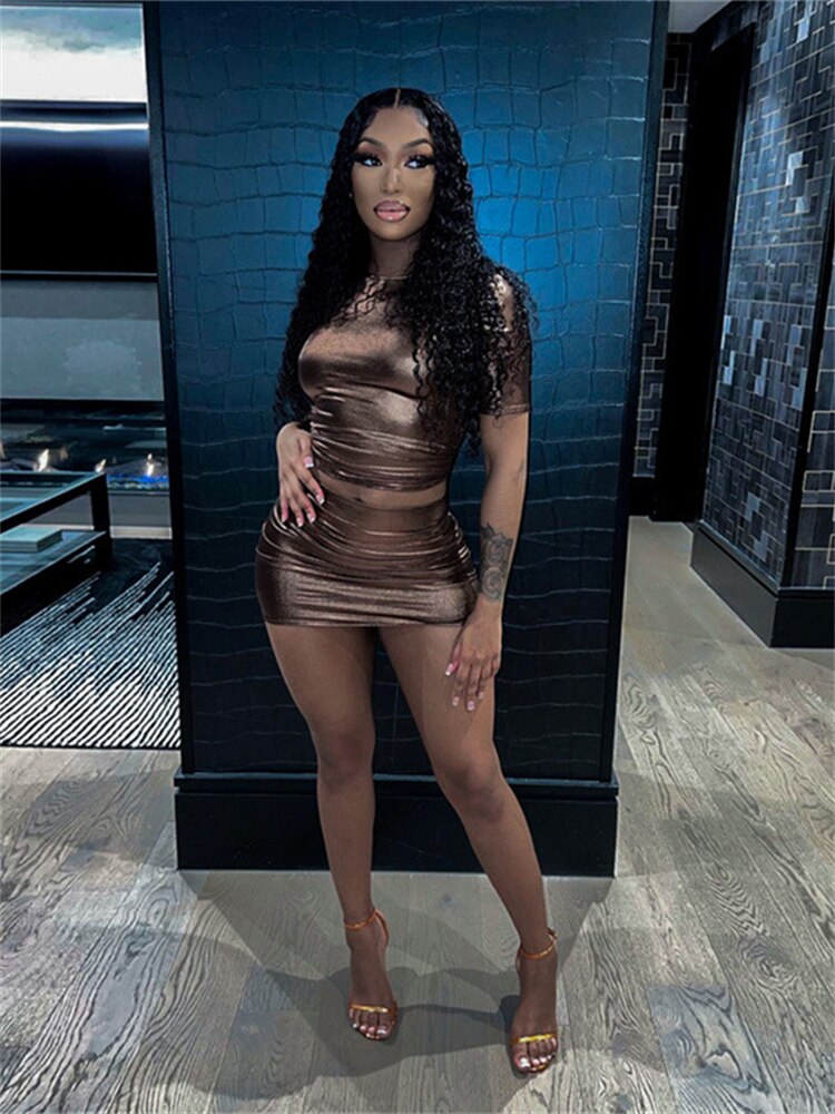 znbbw Summer Sexy Bright 2 Two Piece Sets Club Outfit For Women 2023 T Shirt And Skirt Sets Female Silver New In Matching Sets