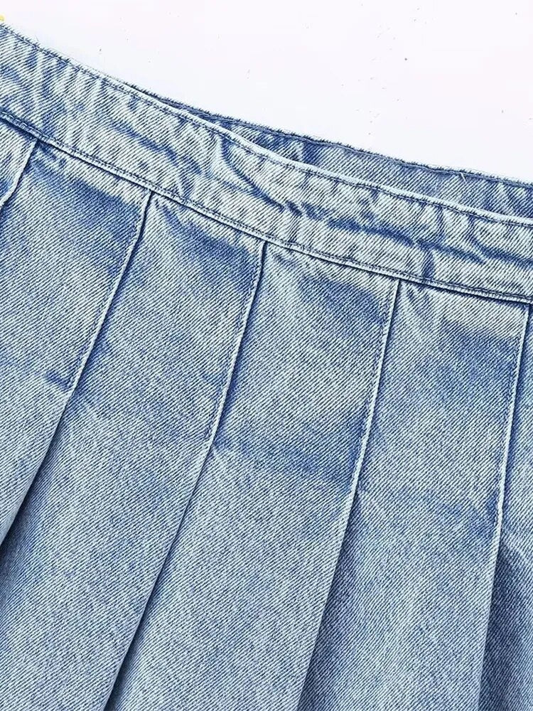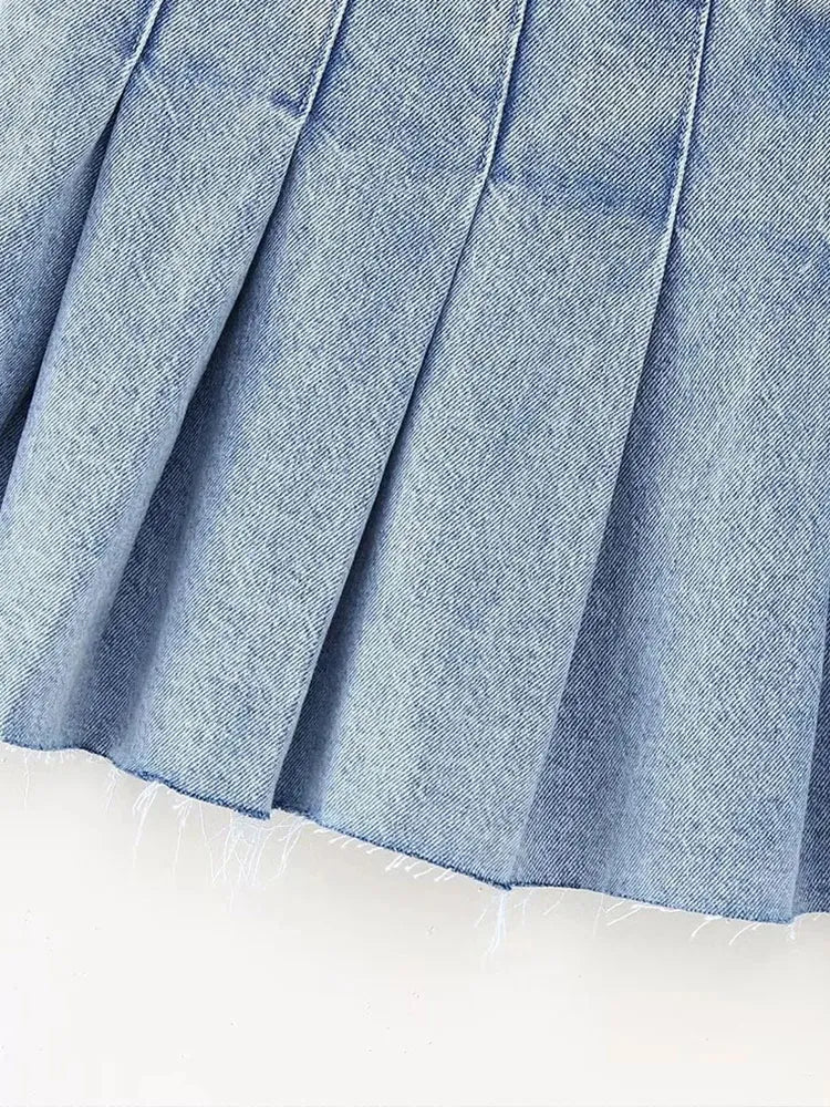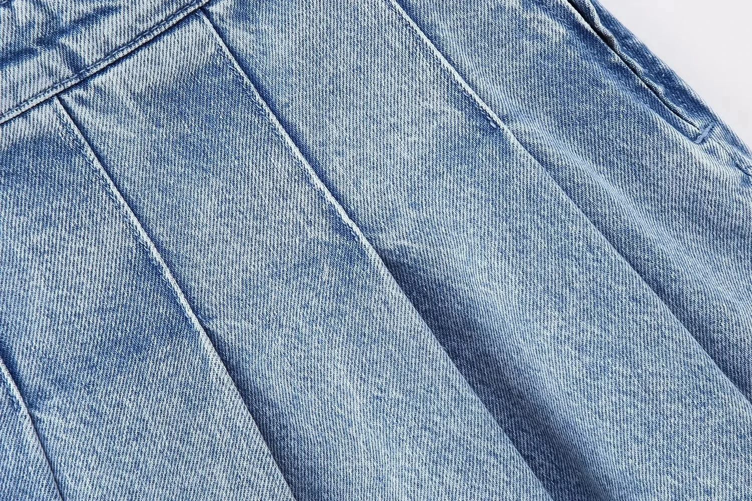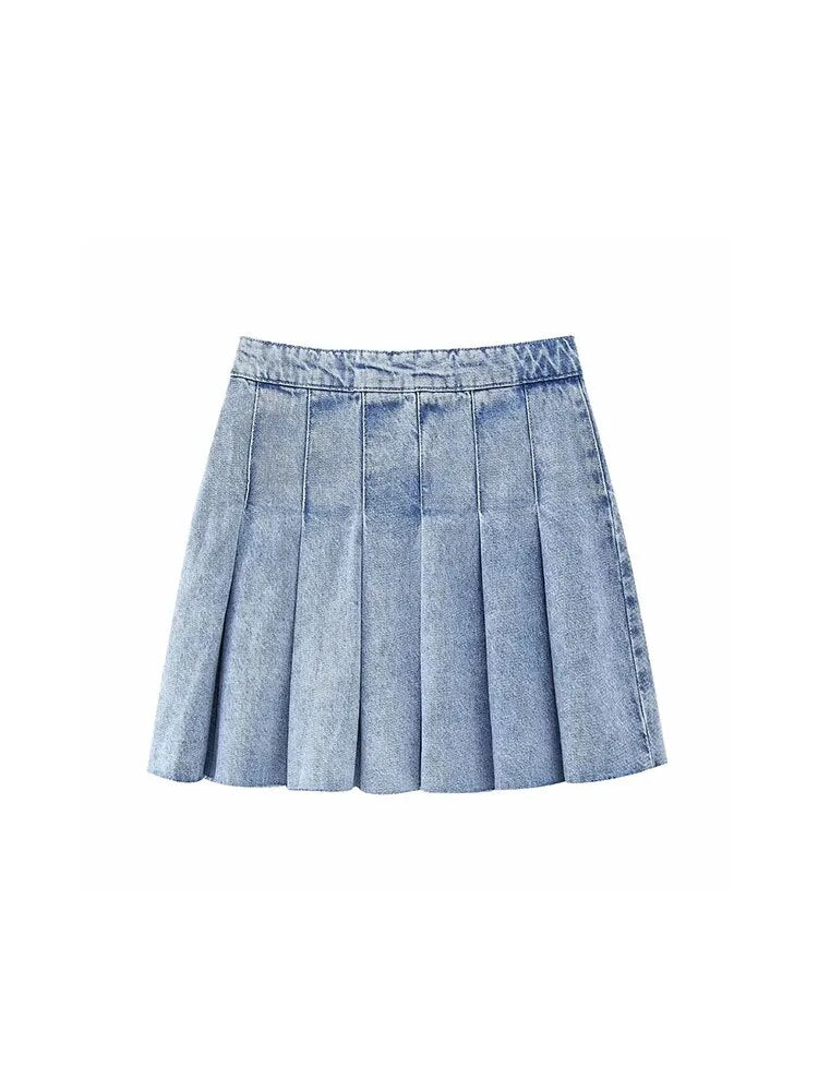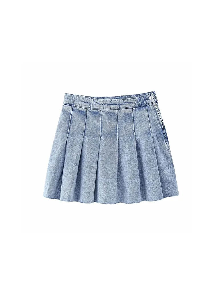 Znbbw TRAF Pleated Denim Mini Skirt Woman Solid Blue Jeans Summer Skirt For Women High Waist Sexy Short Skirts Y2k Streetwear