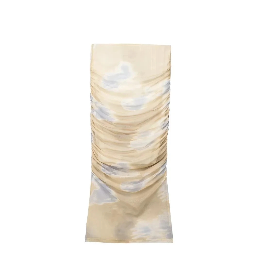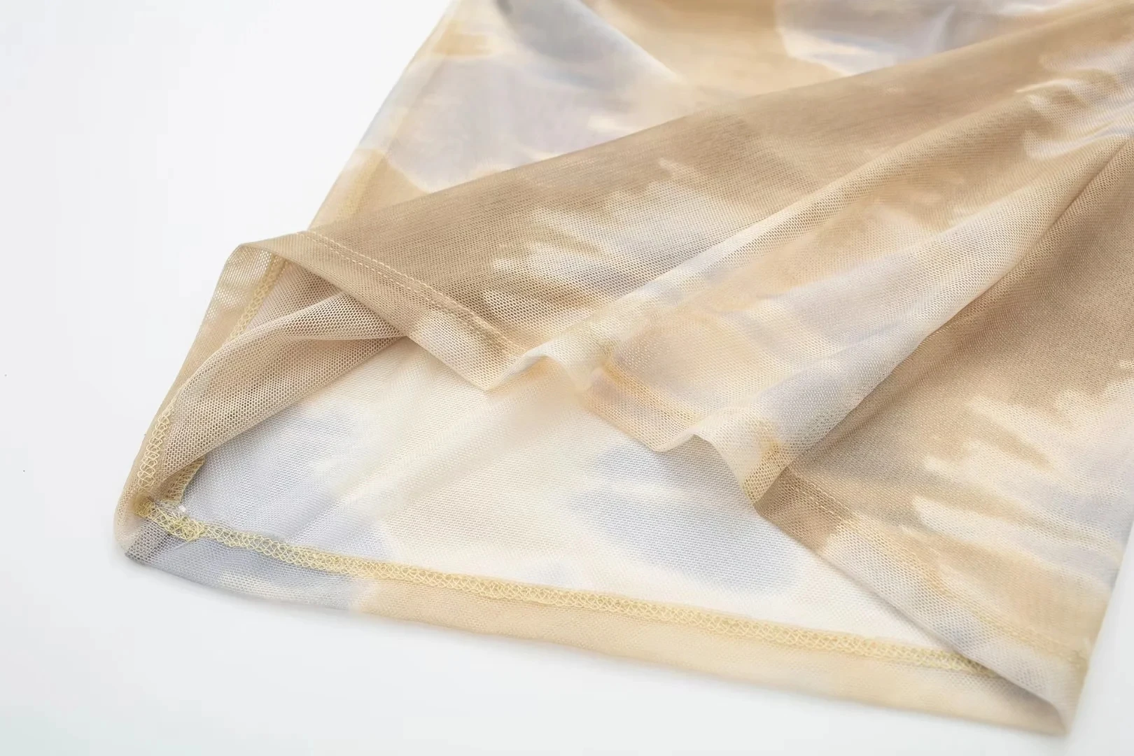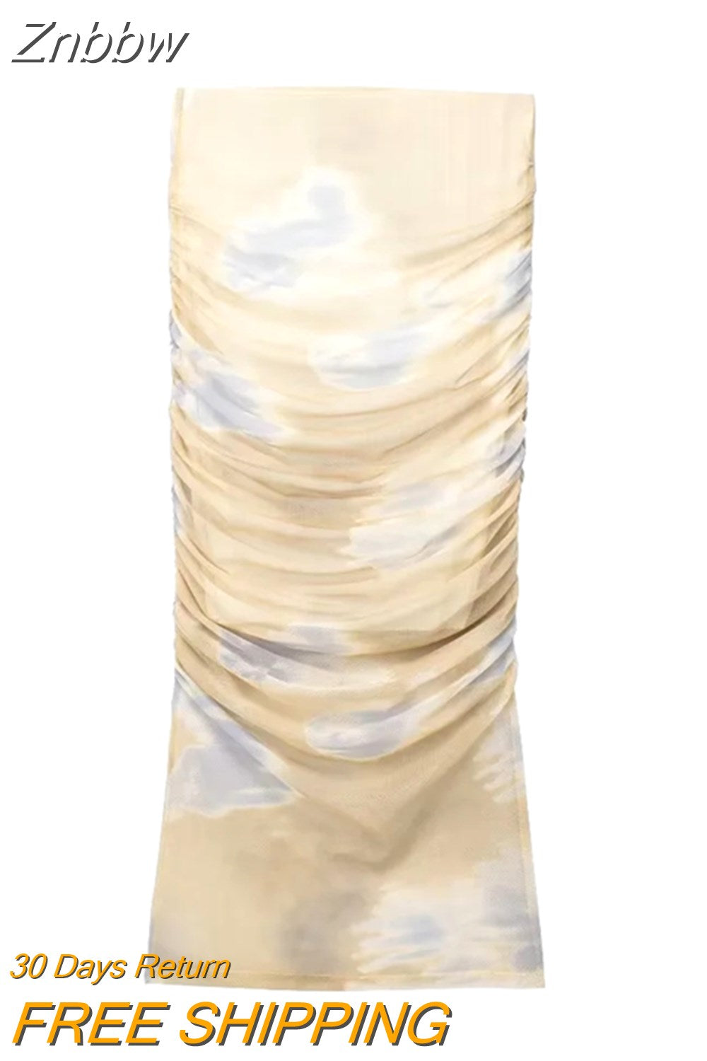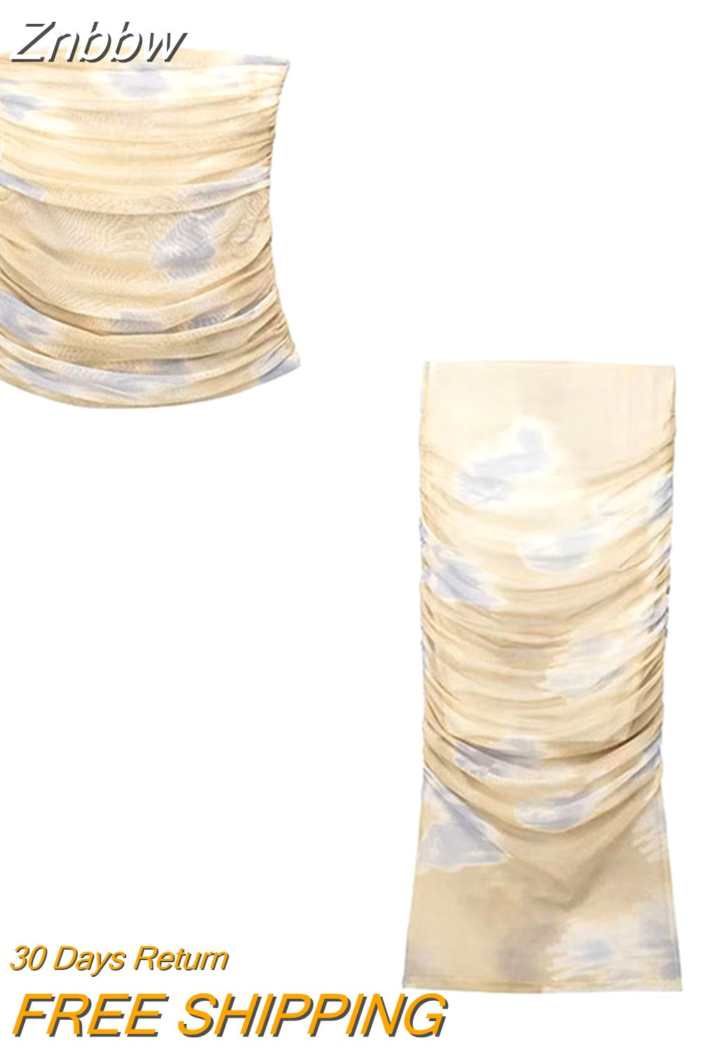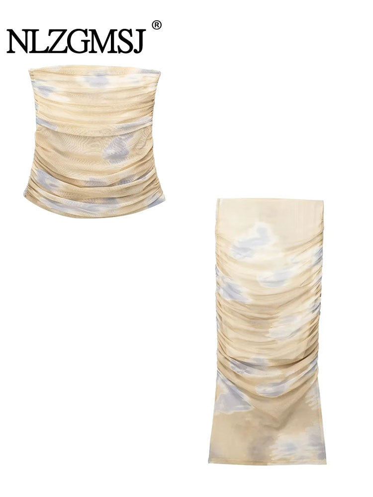 Znbbw TRAF Woman 2 Pieces Tops And Skirts Sets 2023 Tulle Printed Midi Skirts Set Two Pieces Set Womens Suits