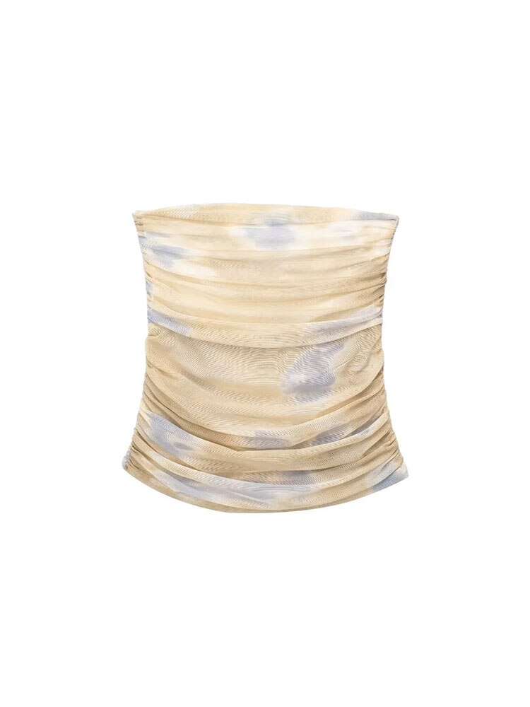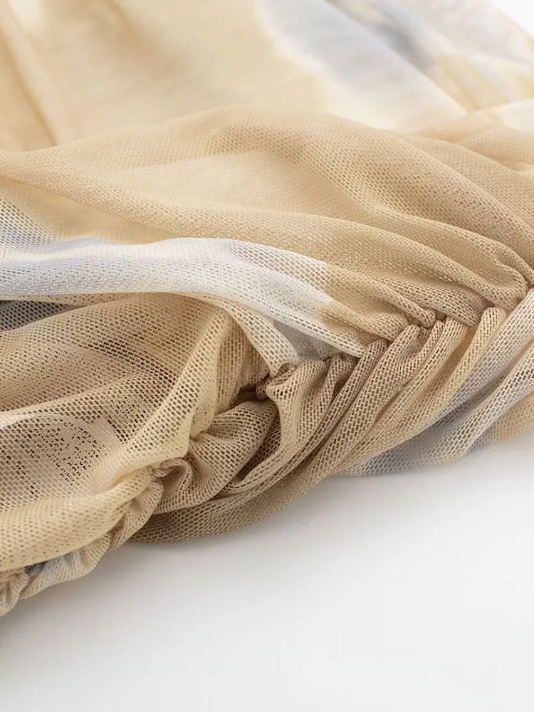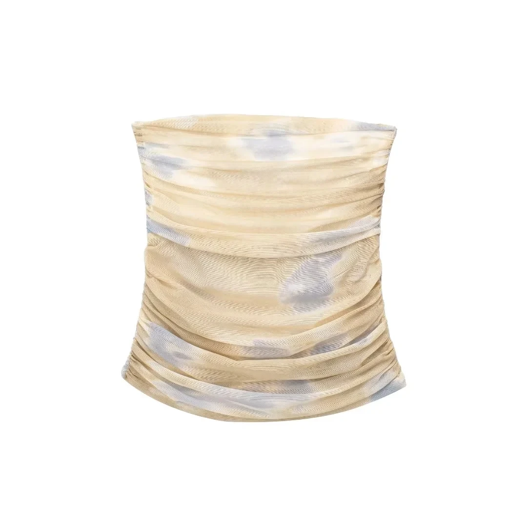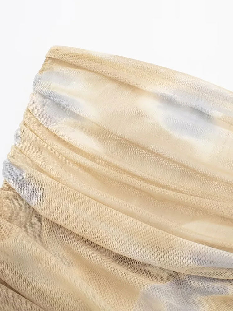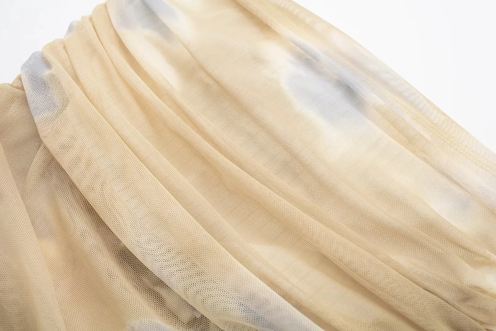 Znbbw TRAF Woman 2 Pieces Tops And Skirts Sets 2023 Tulle Printed Midi Skirts Set Two Pieces Set Womens Suits