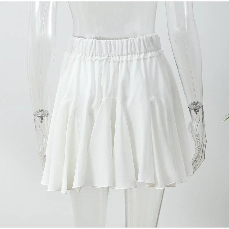 Znbbw White Ruffles High Waist Mini Skirt Women 2024 Casual Pleated Fluffy A-line Skirts Summer Fashion Lady Party Streetwear