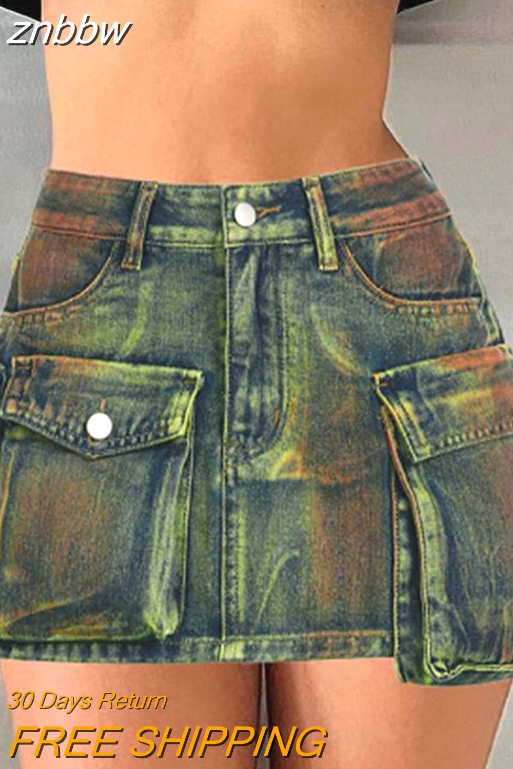 znbbw Women Asymmetrical Pockets Denim Mini Skirts Sexy Fashion High Waist Female Clubwear Y2K Outfits Gothic Streetwear Harajuku