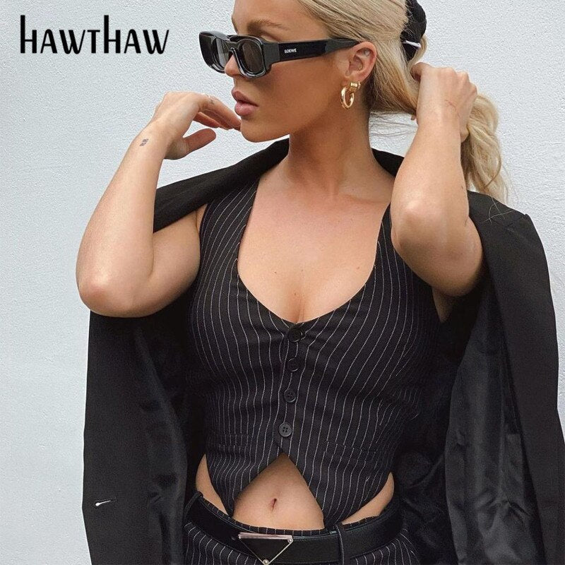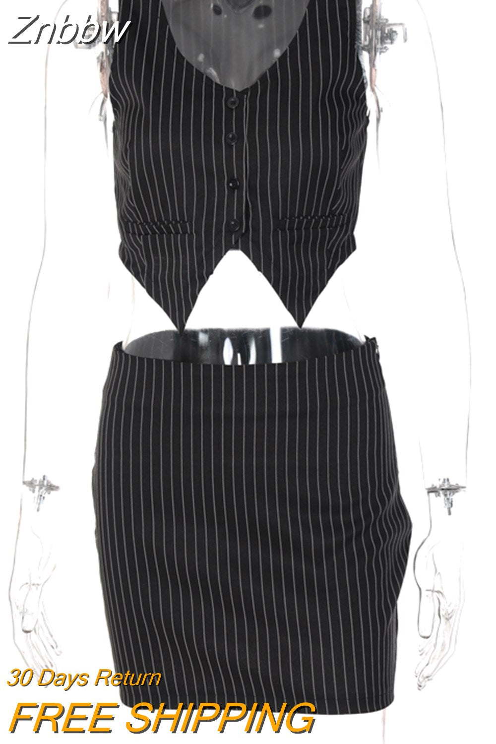 Znbbw Women Autumn Striped Crop Tank Tops Mini Skirt Bodycon Black Two Piece Set Suit Outfit Streetwear 2023 Fall Clothes