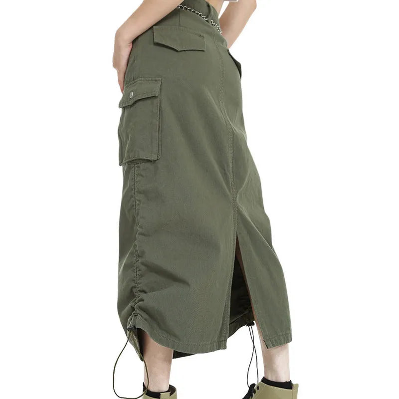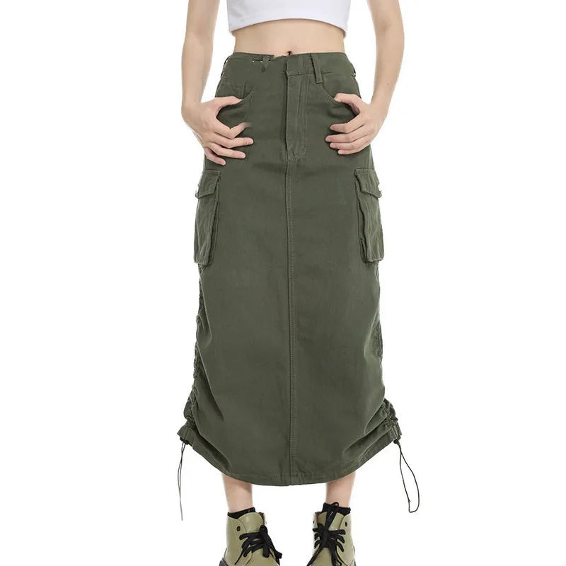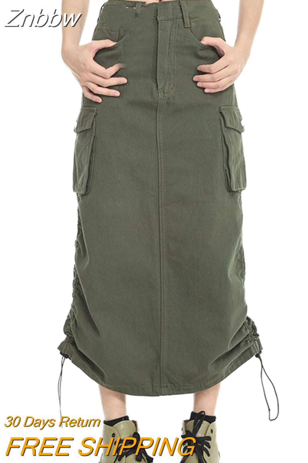 Znbbw Women Cargo Skirt Summer Clothes 2023 Retro Drawstring Half Dress Long Side Pockets Solid Color Skirt y2k Streetwear