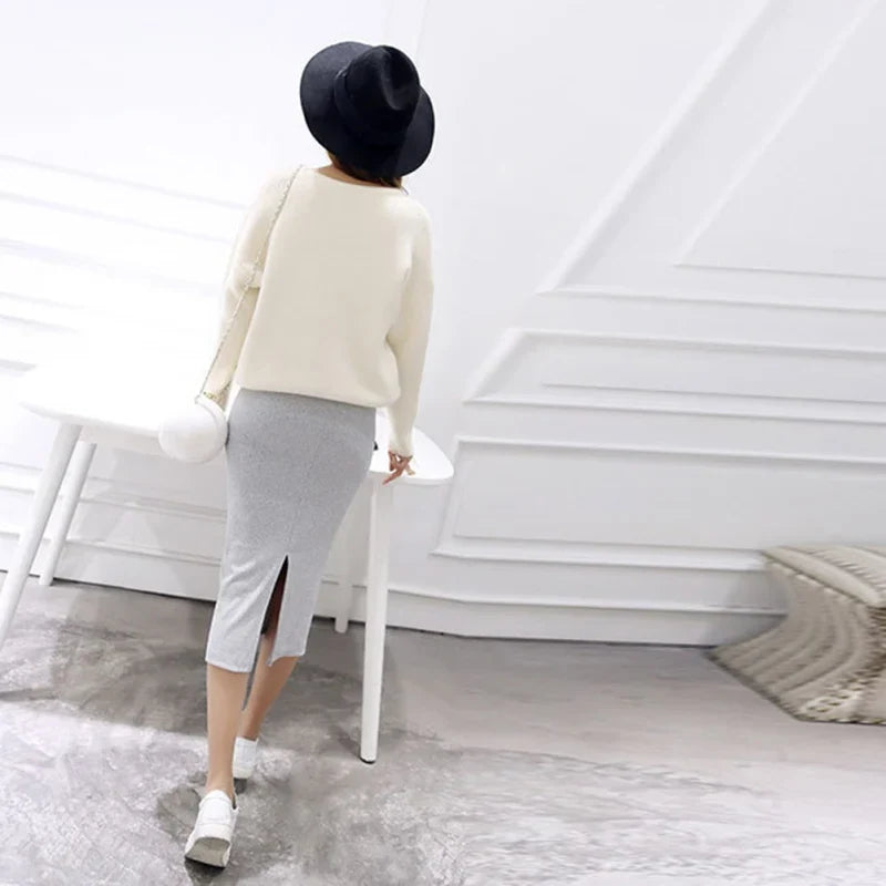 Znbbw Women Casual Split Pencil Skirt Calf-Length Ladies Cotton Solid Stretch Slim Skirts