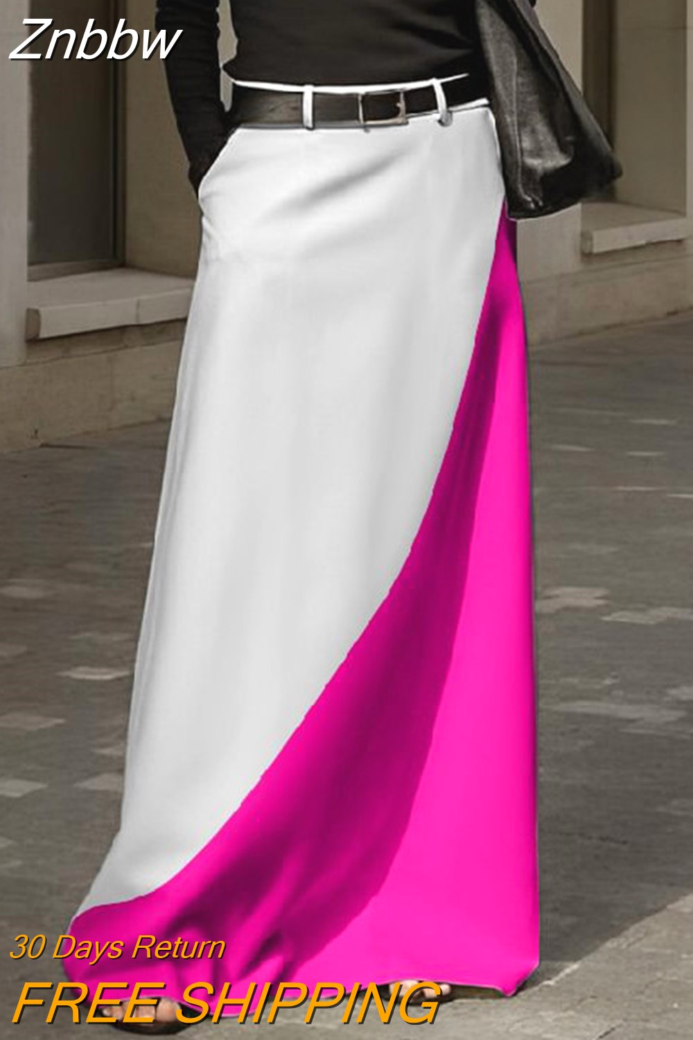 Znbbw Women Elegant Color Blocking Straight Skirt 2023 Spring Streetwear Fashion Office Long Skirt Retro Boho Pocket Club Skirts Mujer