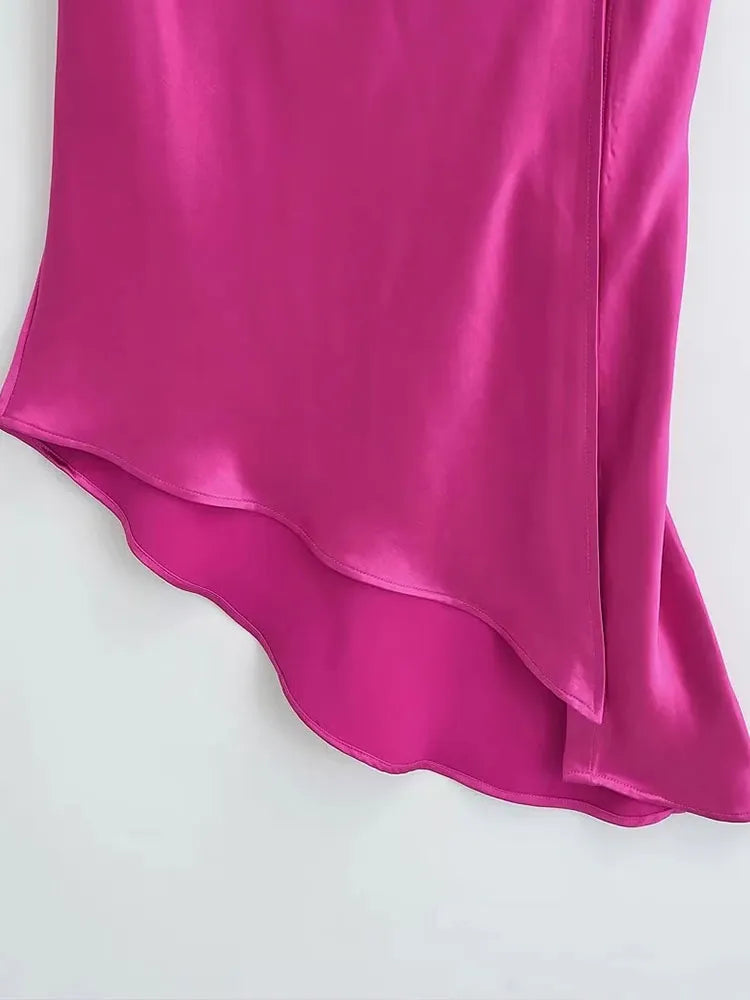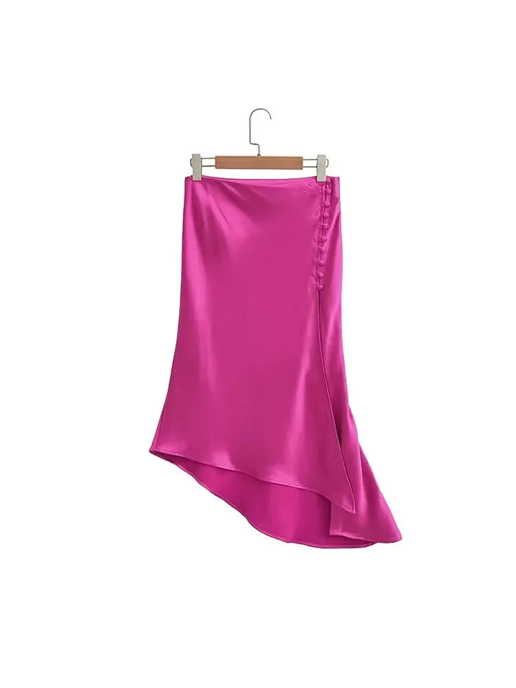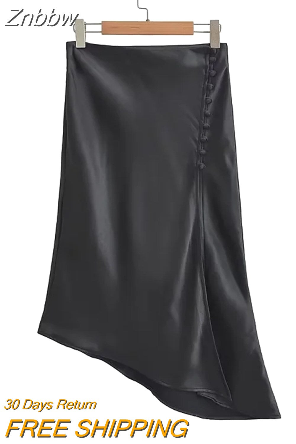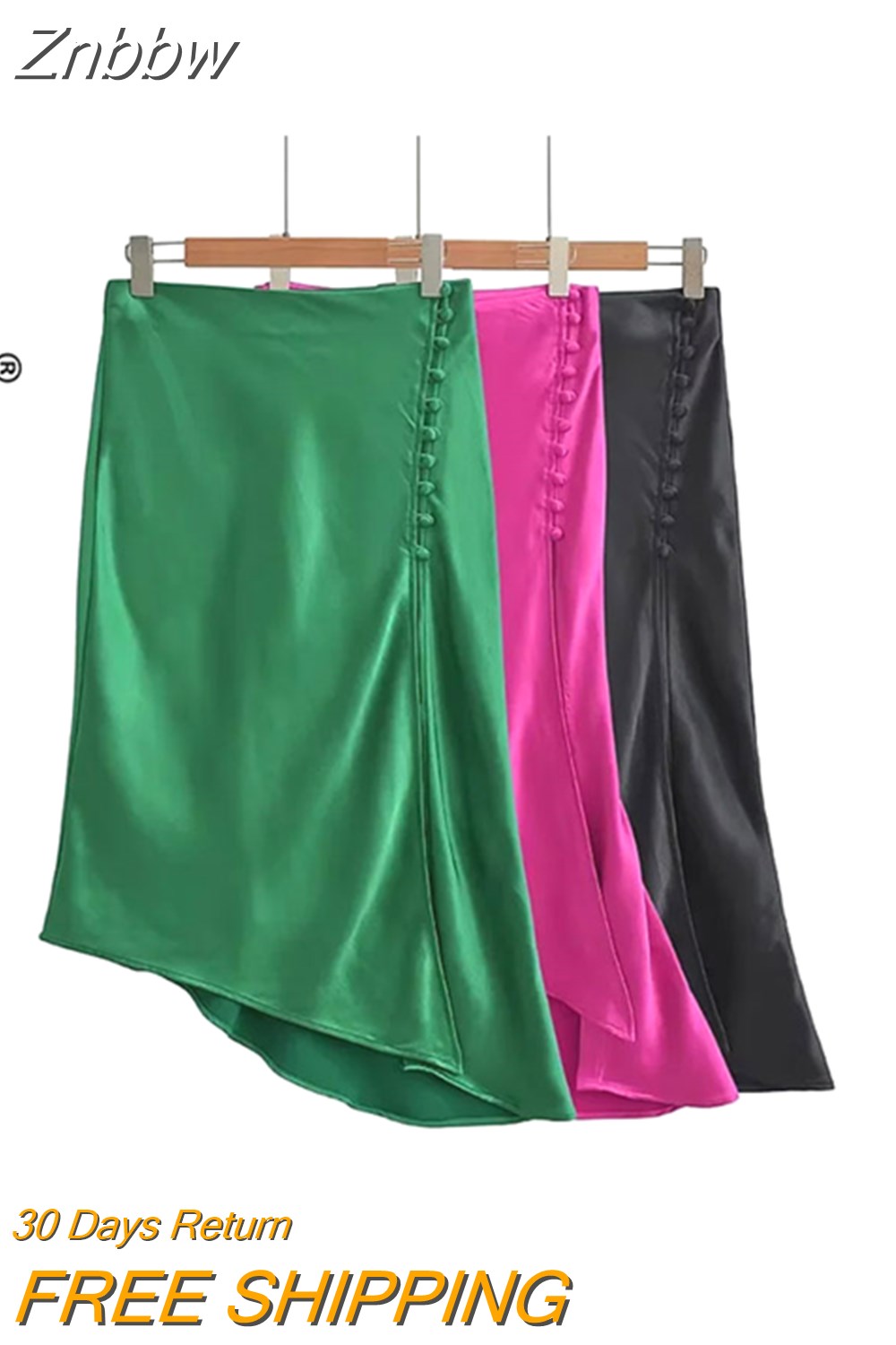 Znbbw Women Elegant Solid Side Irregular Midi Skirt Female Summer Vestidos