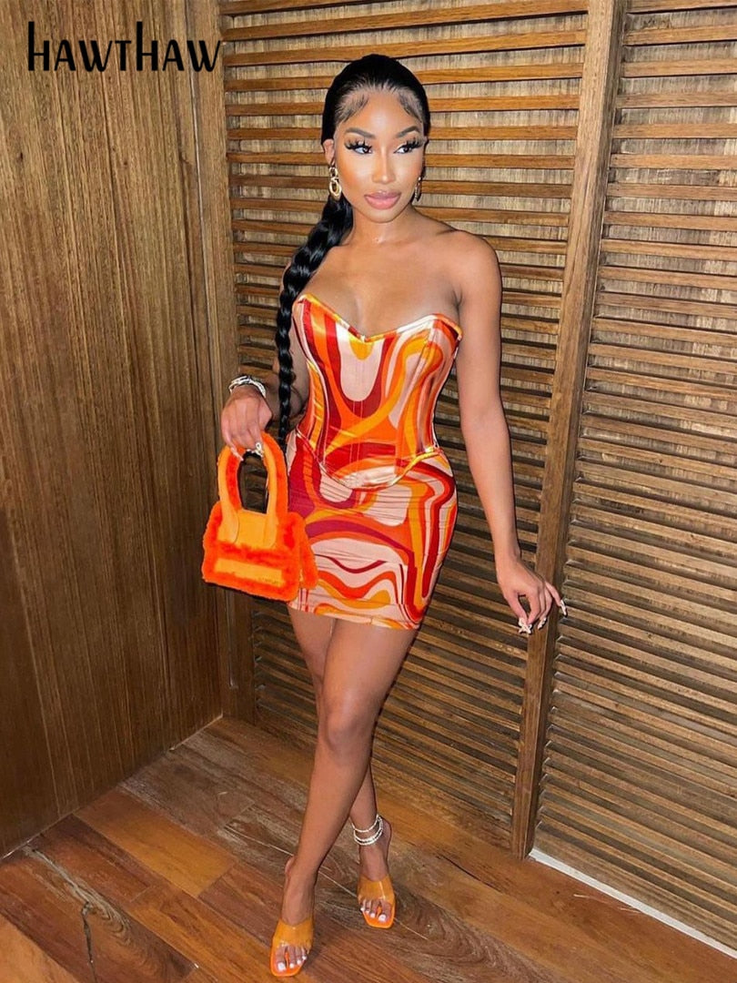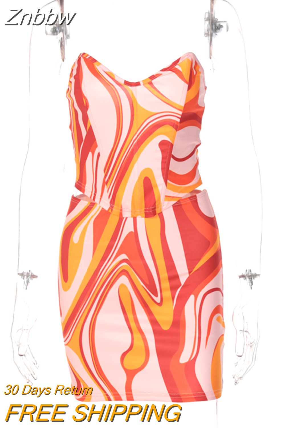 Znbbw Women Sexy Printed Strapless Tube Tops Mini Skirt Two Piece Set Suit 2023 Summer Clothes Wholesale Items For Business