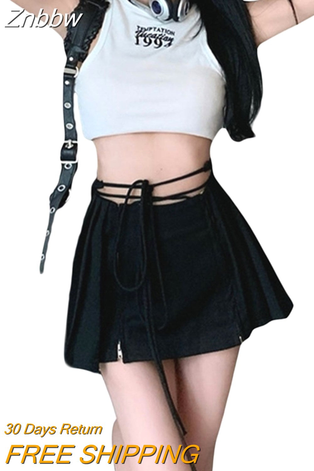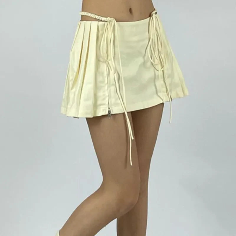 Znbbw Women Y2K Mini Skirt Drawstring Low Waist Side Pleated Mini Skirt Kawaii Sweet 90s E-Girl Aesthetic Clothes Korean Fashion