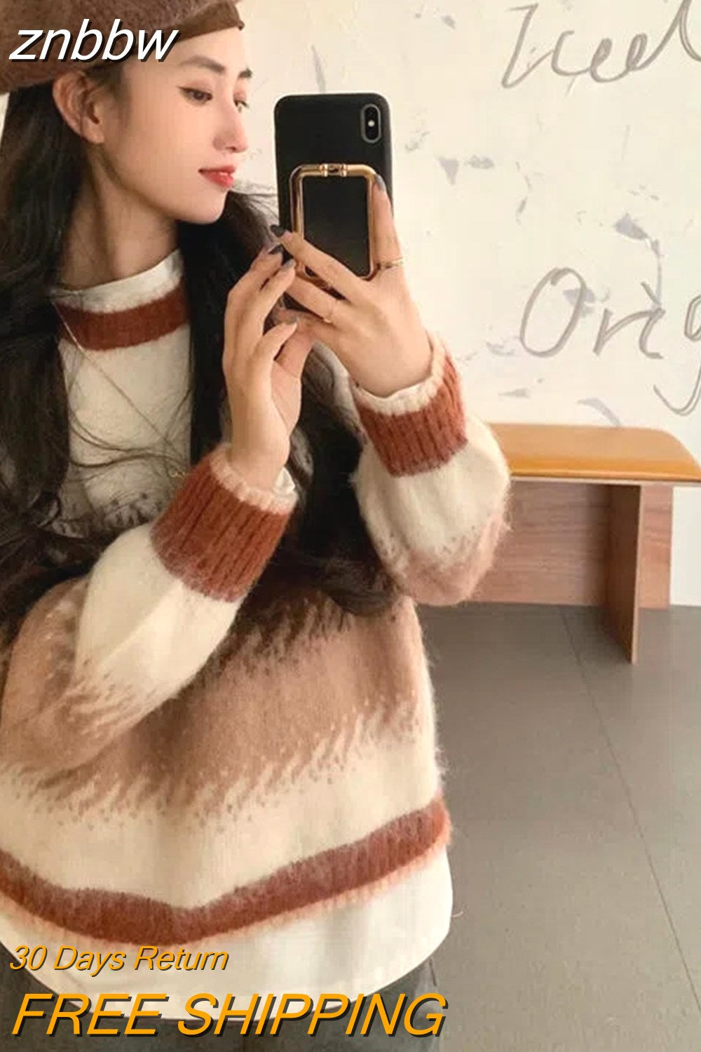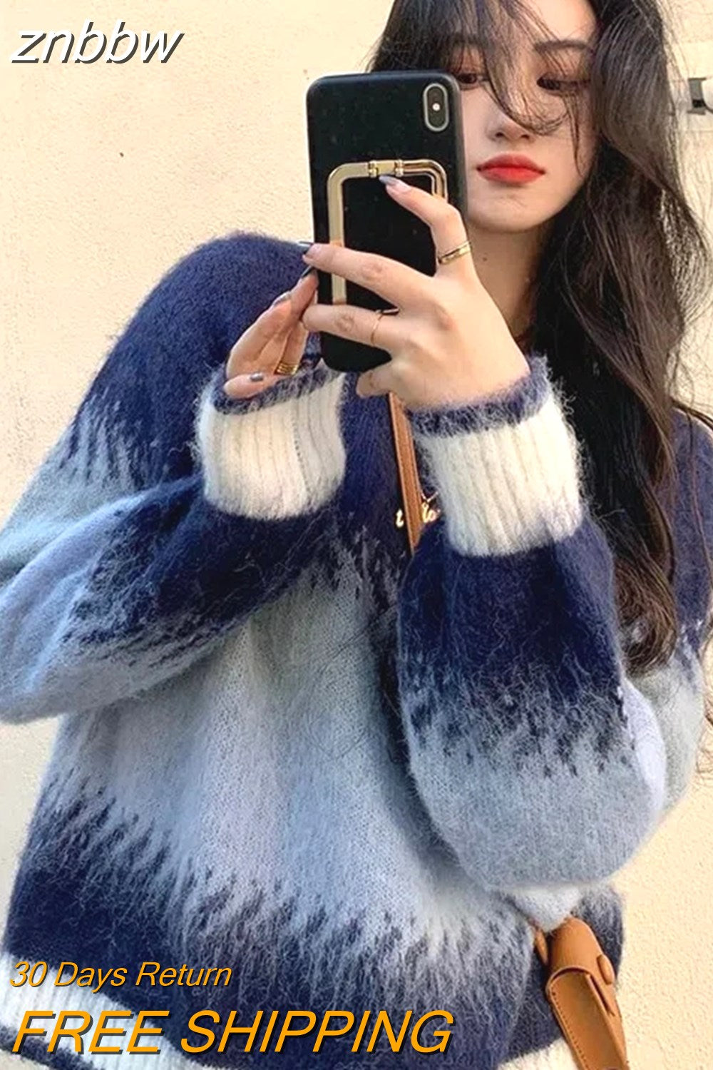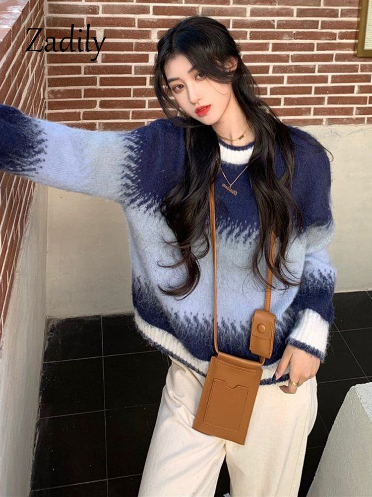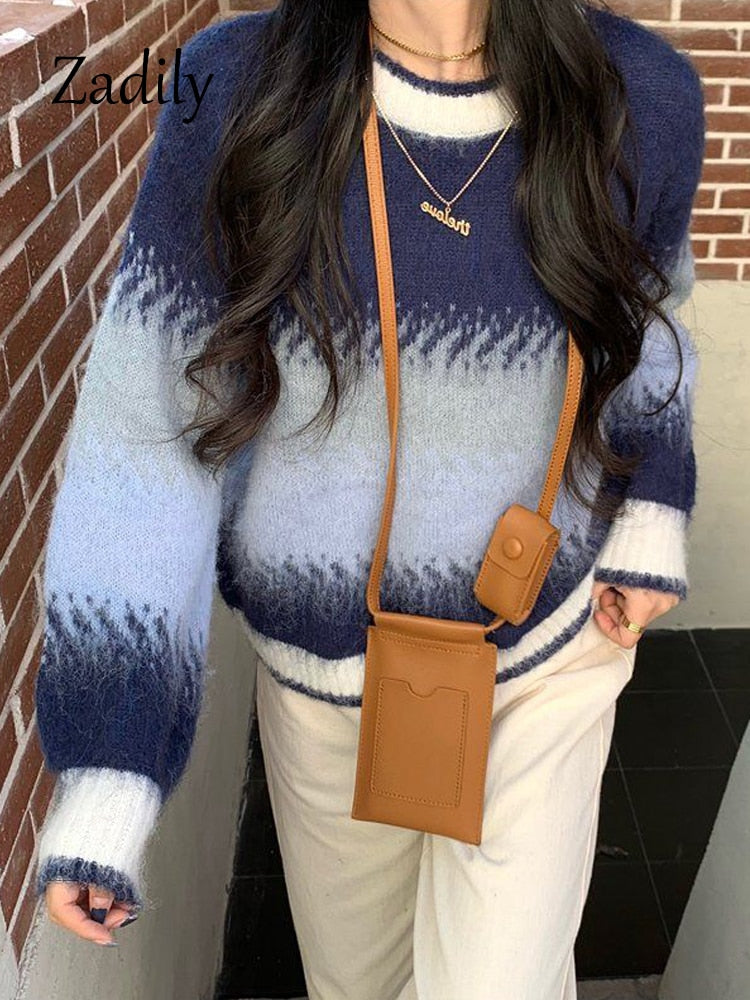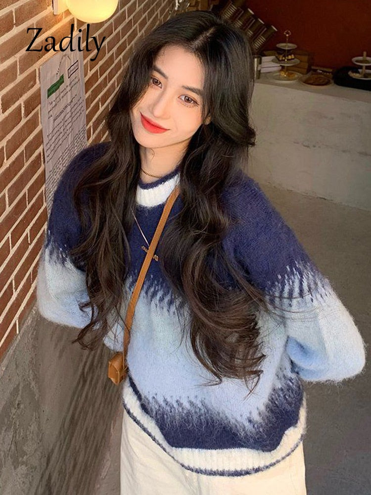znbbw 2023 Winter Korea Style Gradient O Neck Women Sweater Casual Loose Long Sleeve Warm Ladies Knit Pullover Female Clothing