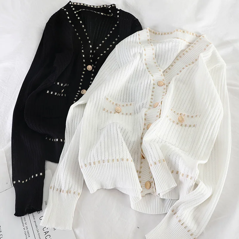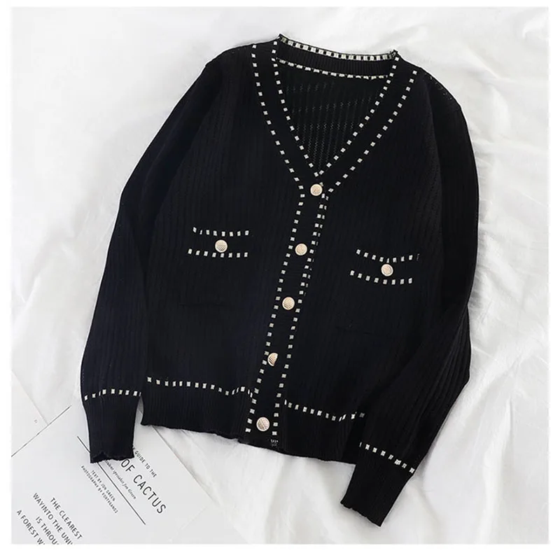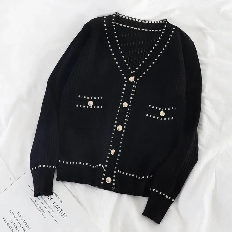 Znbbw Autumn Women's Cardigan New Single-breasted Stitching Cardigan Korean Style Loose and Thin Knit Female Sweater Coat LL295