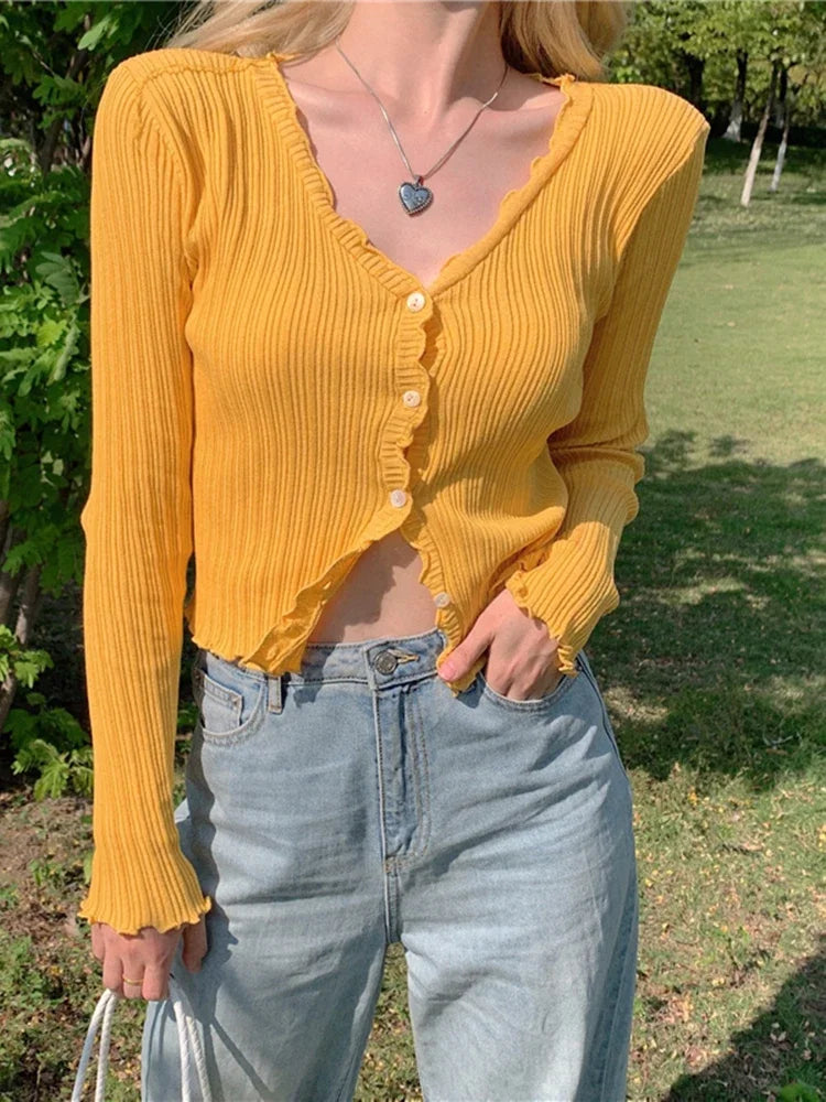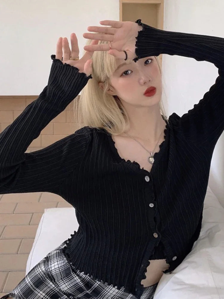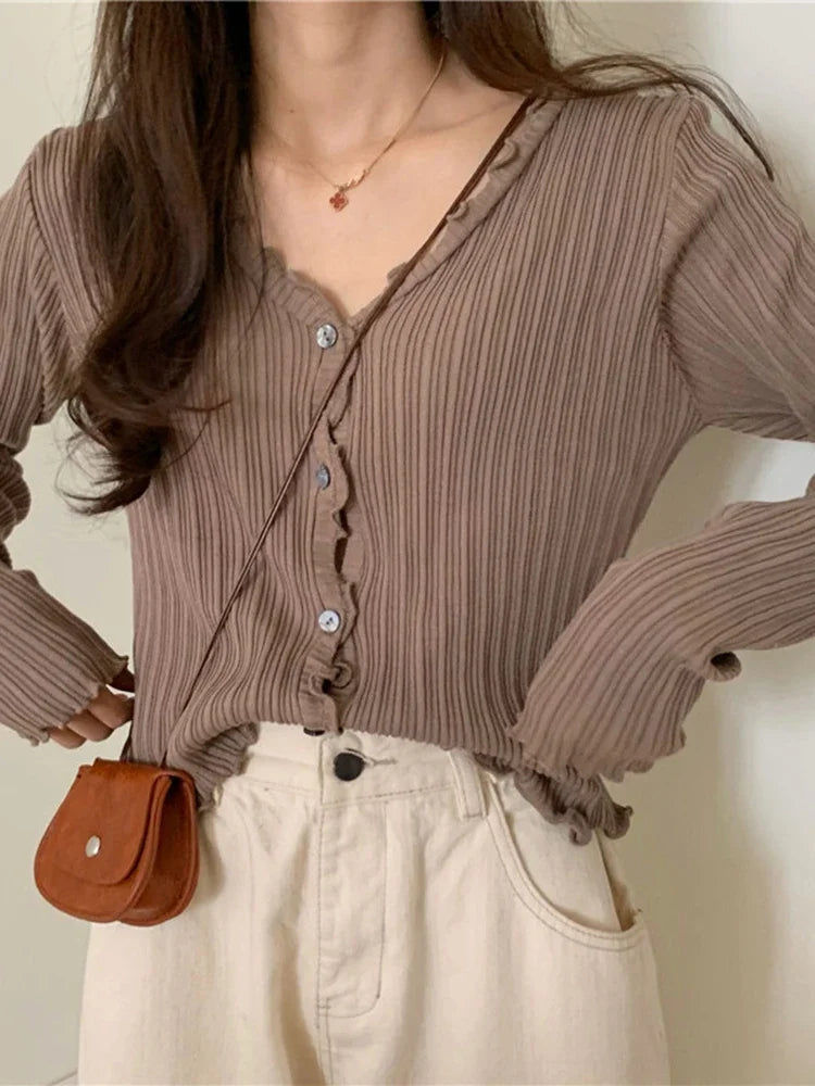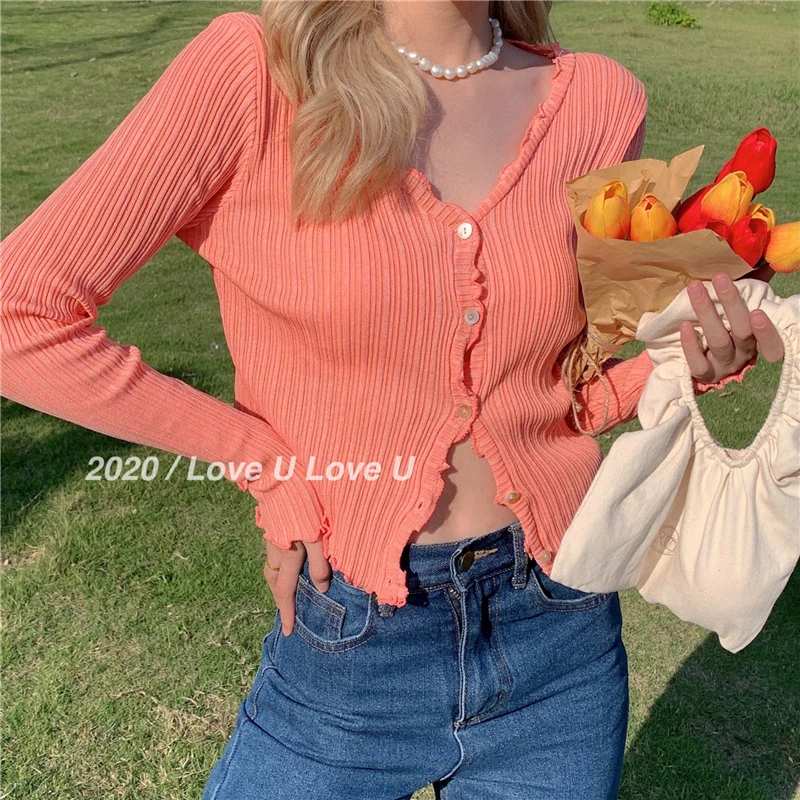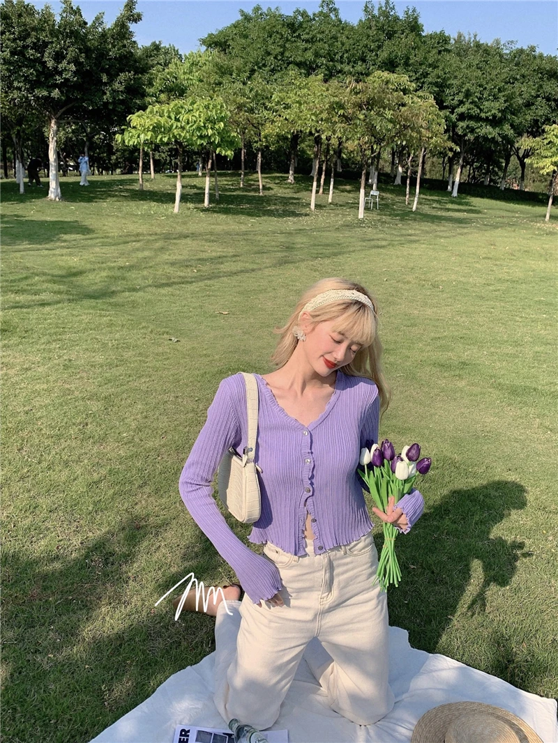 Znbbw Autumn Women's Long-Sleeved Knit Cardigan Purple Tops New Korean V-Neck Short Sunscreen Chic Sweaters GD375