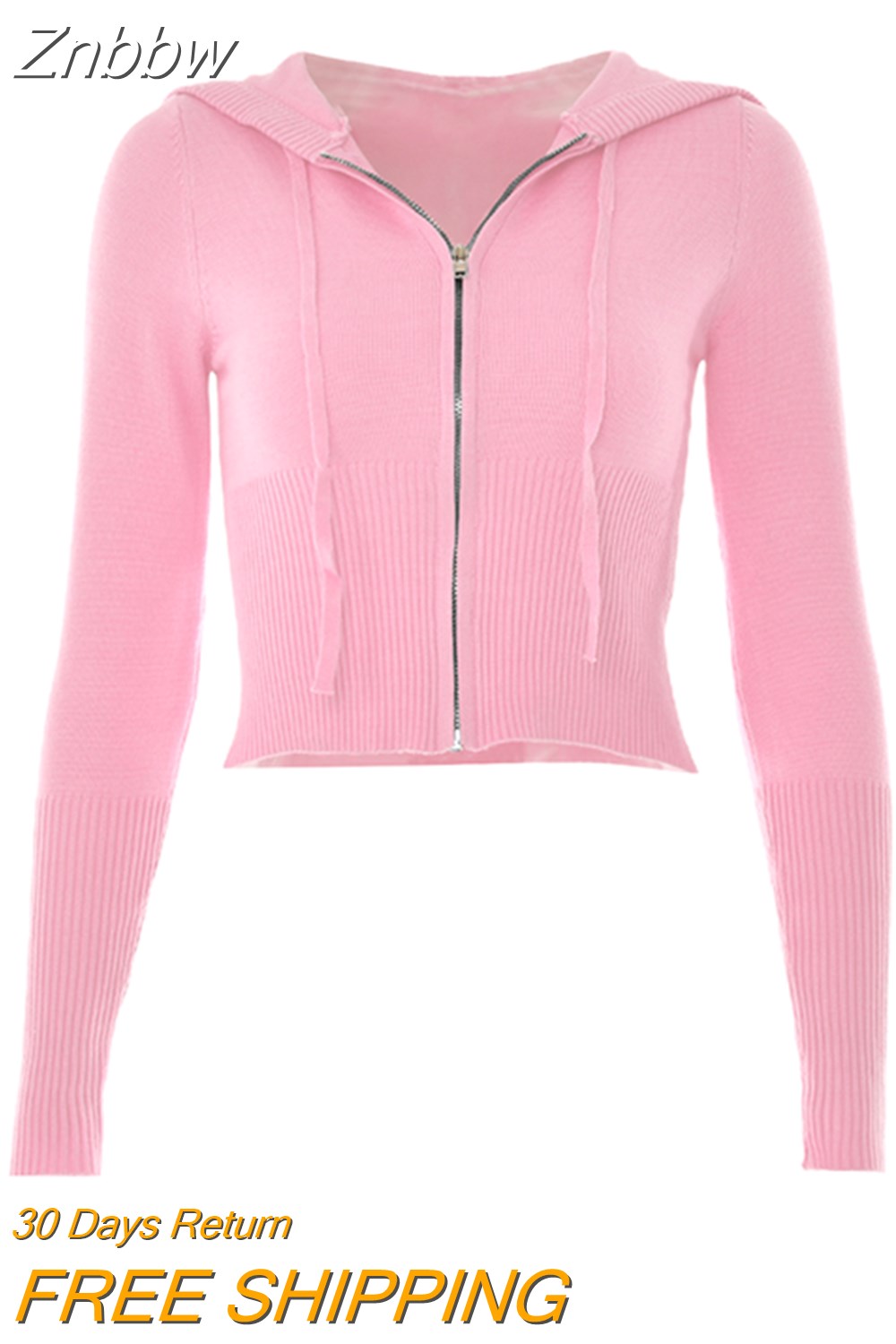 Znbbw Clothes y2k Aesthetic kintted Sweater Women Zip Up Long Sleeve Hooded Tops Preppy Style 90s Fashion Cropped Cardigan Tees 0410
