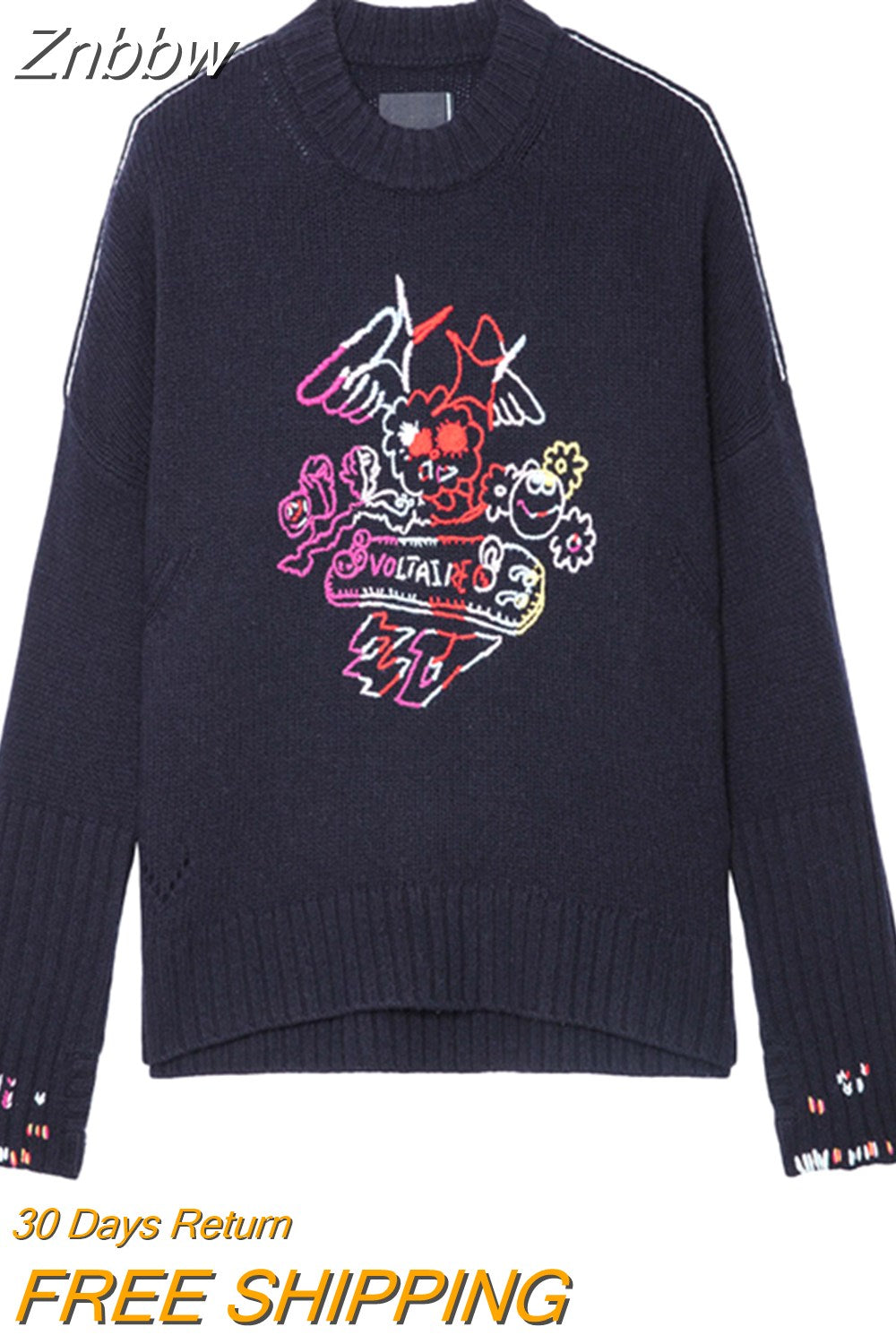 Znbbw Embroidery Sweater Women 2023 Autumn Winter Round Neck Wool Fashion Pullover Casual Streetwear Sweaters Jumpers Female