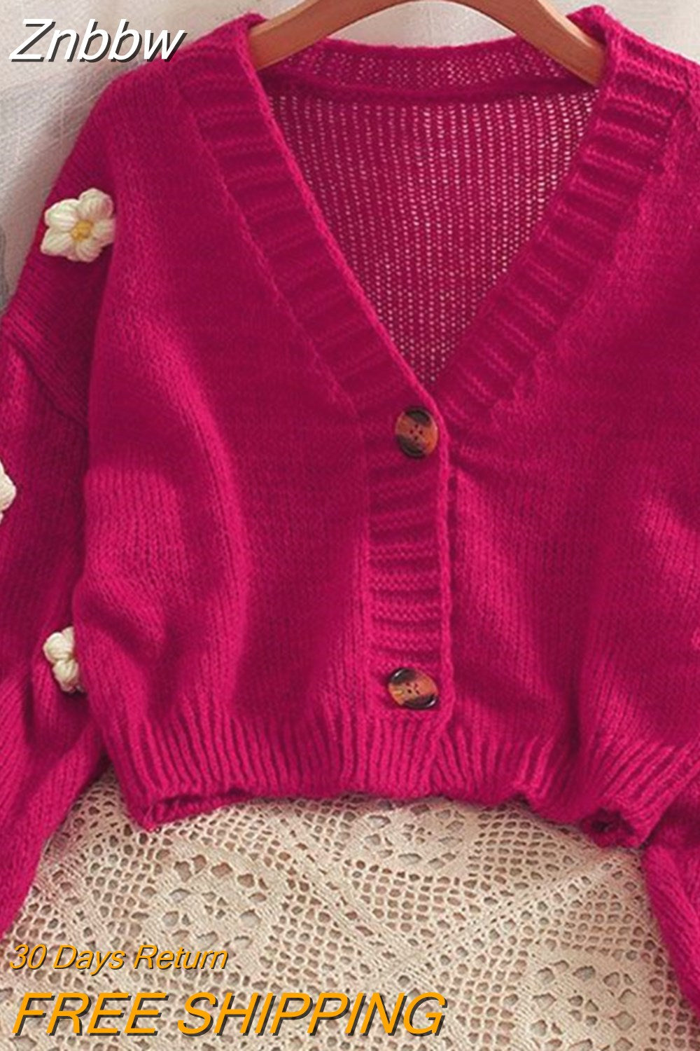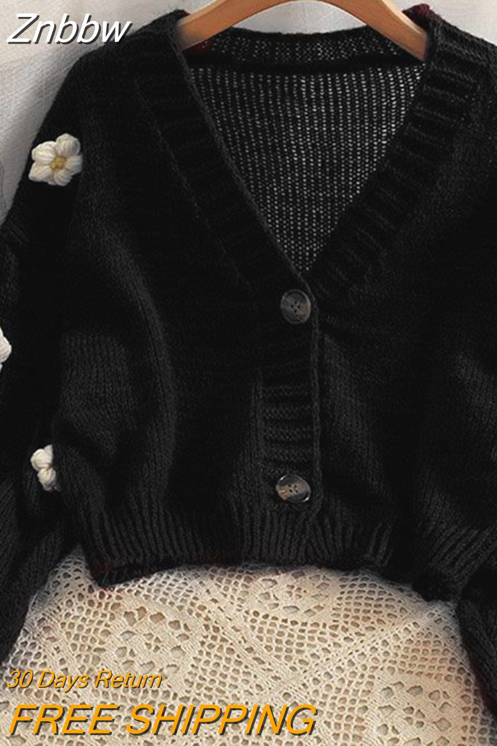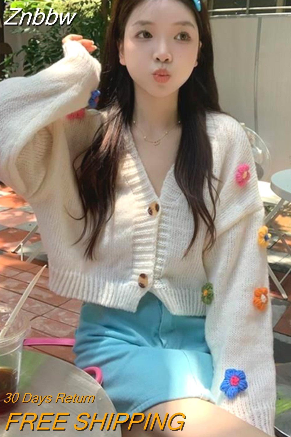 Znbbw Kawaii Y2K Cropped Cardigan Women Harajuku Sweet 3D Flower Knitted Sweater Korean V-neck All-match Tops Aesthetic 2000s