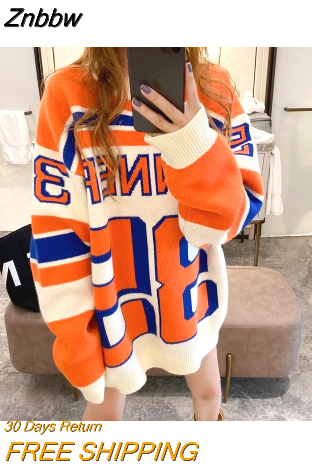Znbbw letter trend sweater women Korean autumn and winter casual lazy round neck sweater Japanese wild Harajuku loose pullover