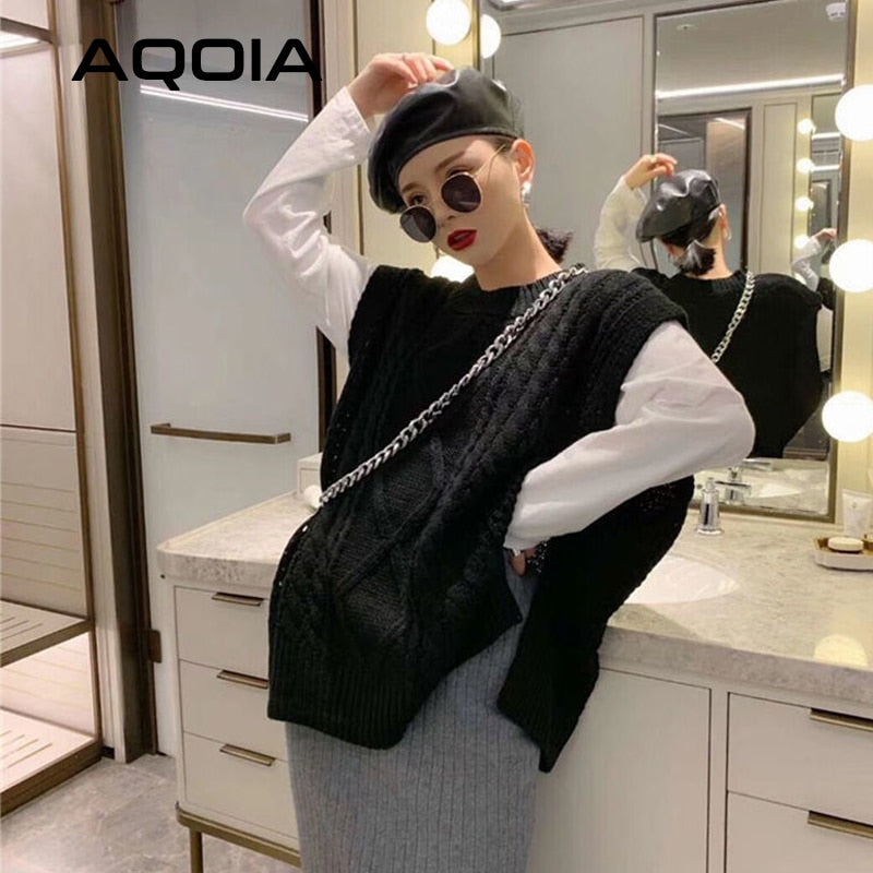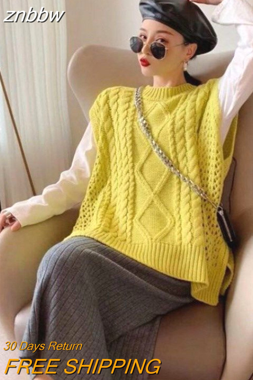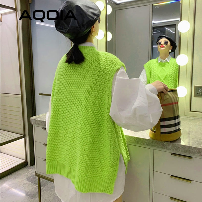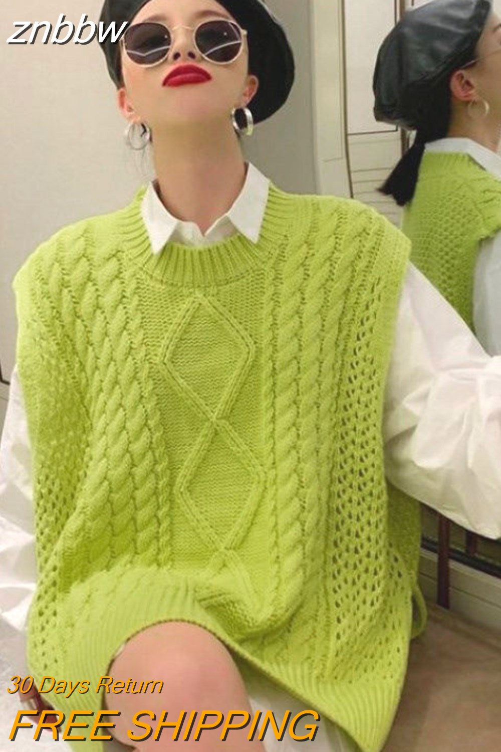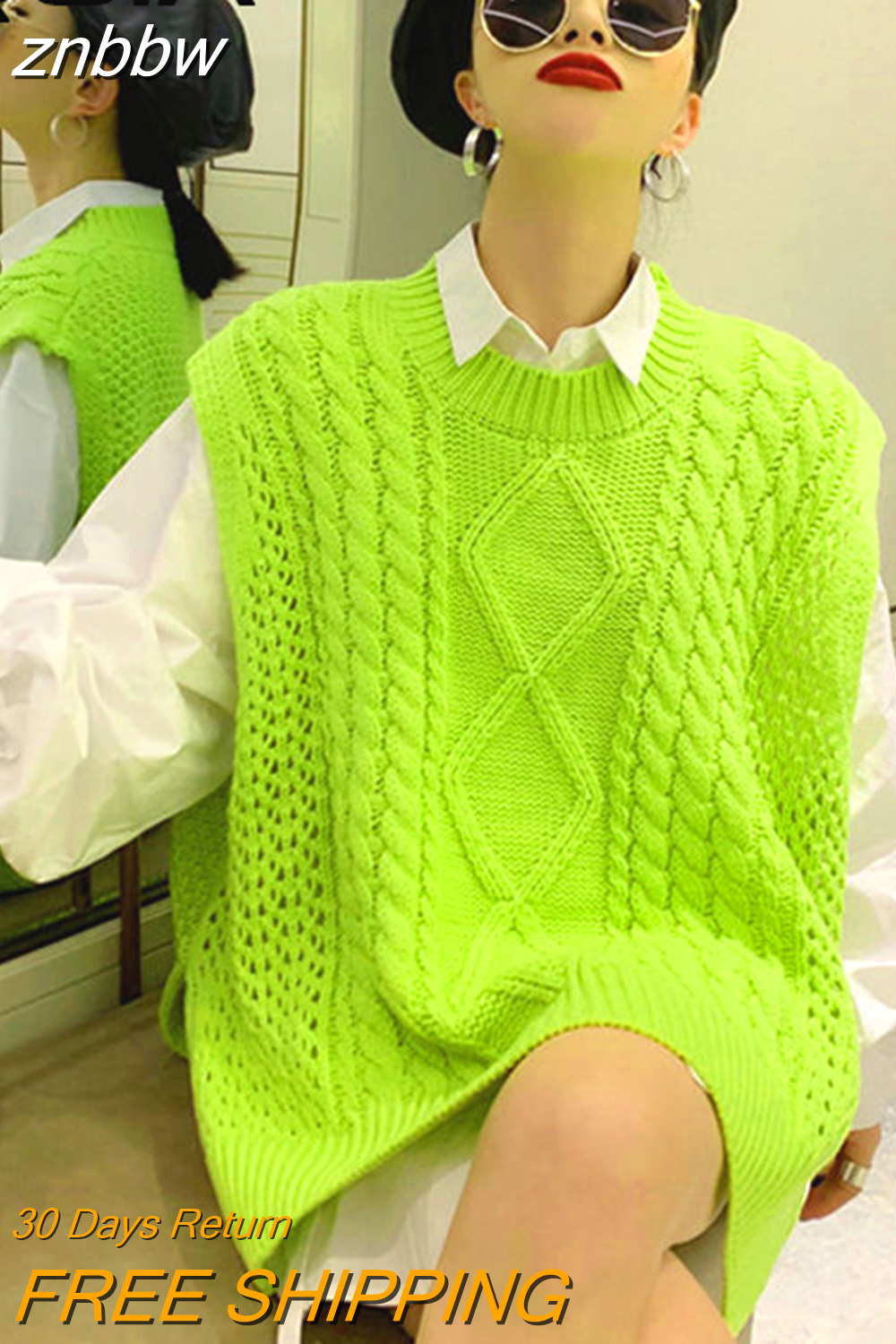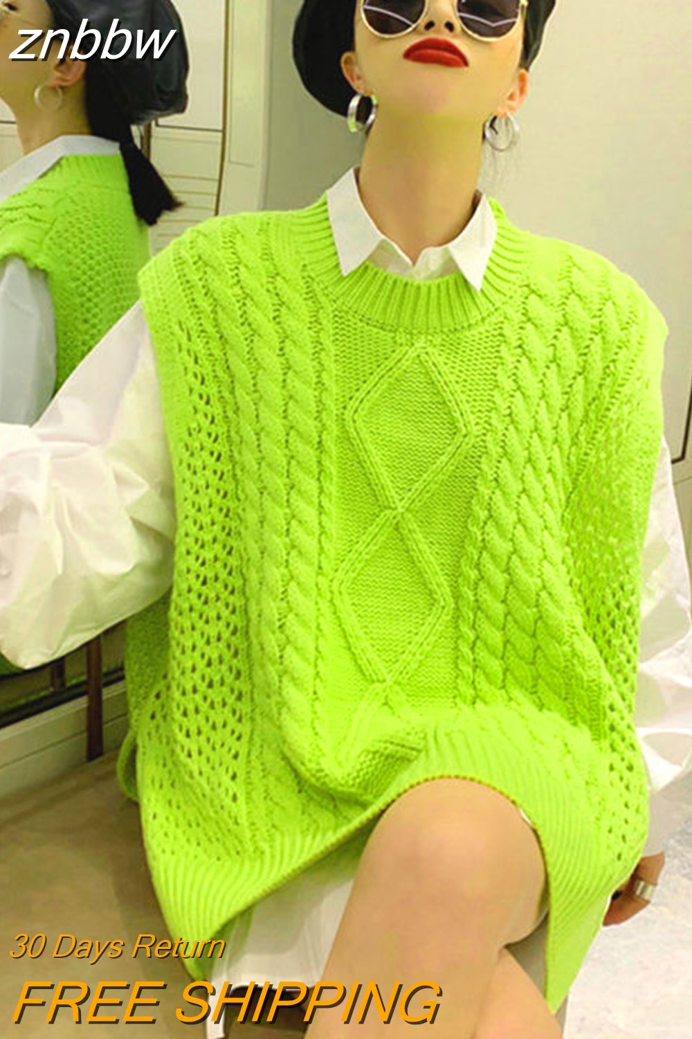 znbbw Loose Fluorescent Green Women Sweaters Korea Oversize Knit Woman Sweater Vest 2023 Winter Plus Size Pullover Clothing
